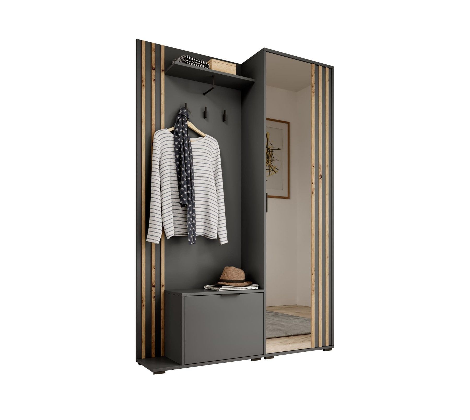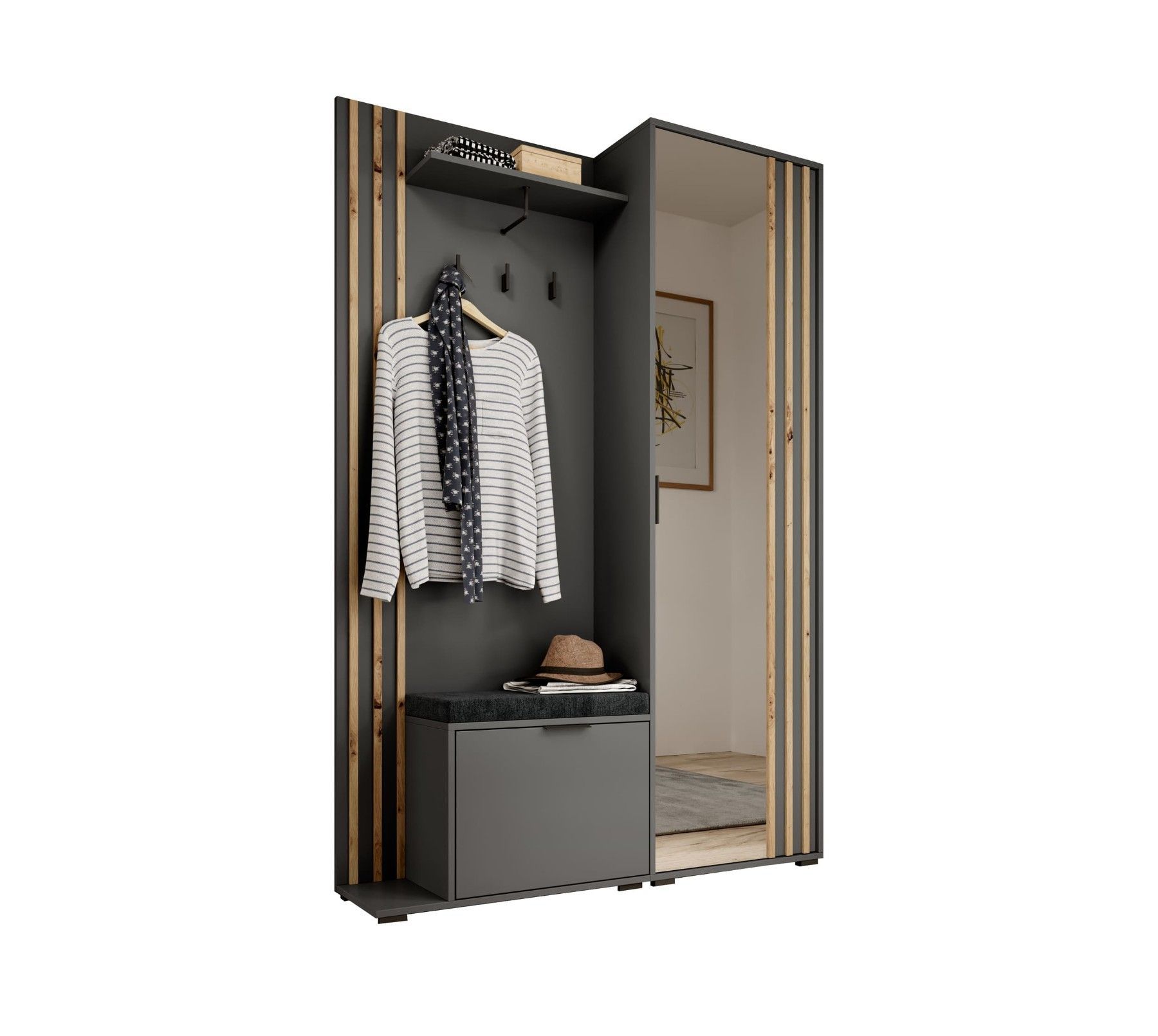 Garderobe mit Spiegel Flurgarderobe Schrank Kompaktgarderobe Schuhschrank - JOHN