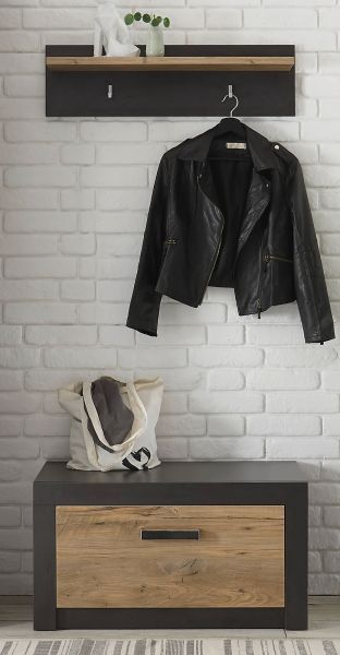 Garderobe Paneel Wandpaneel Hutablage Flurgarderobe Kastanie grau 80 cm Beveren