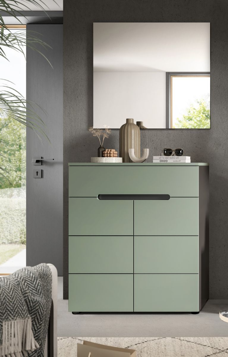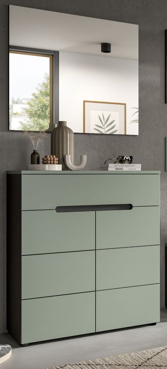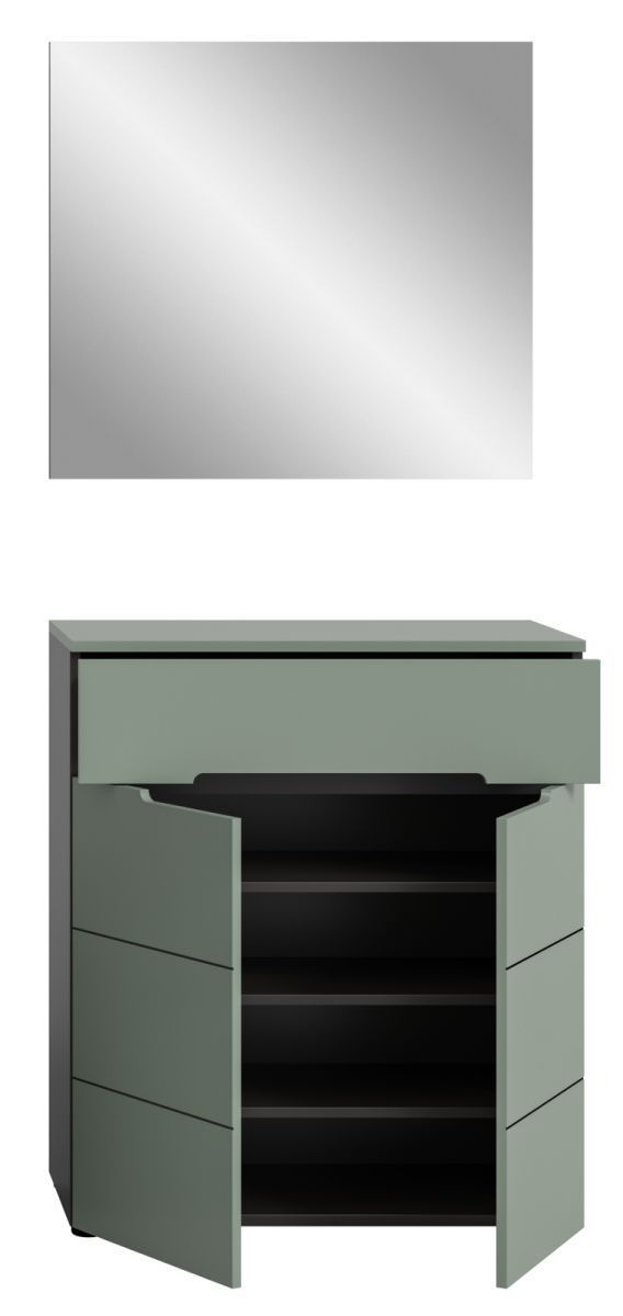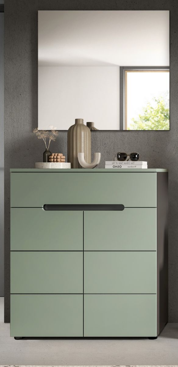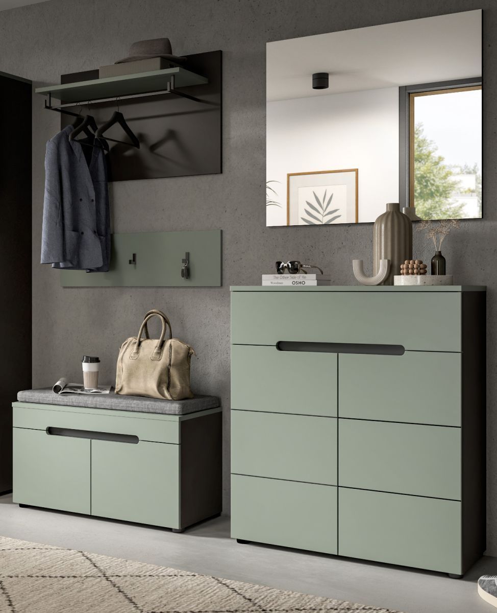 Garderobe Set 2-teilig "Cooper" Salbei Basalt Grau Kommode und Spiegel, Soft-Close