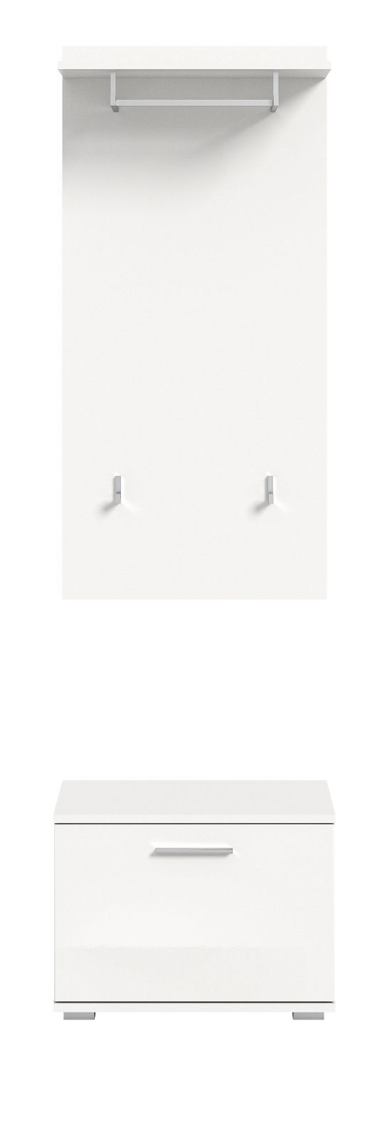 Garderobe Set 2-tlg. weiß Hochglanz Garderobenpaneel Garderoben Bank 55 x 191 Grazie
