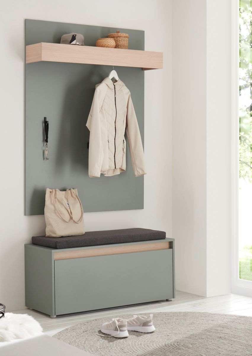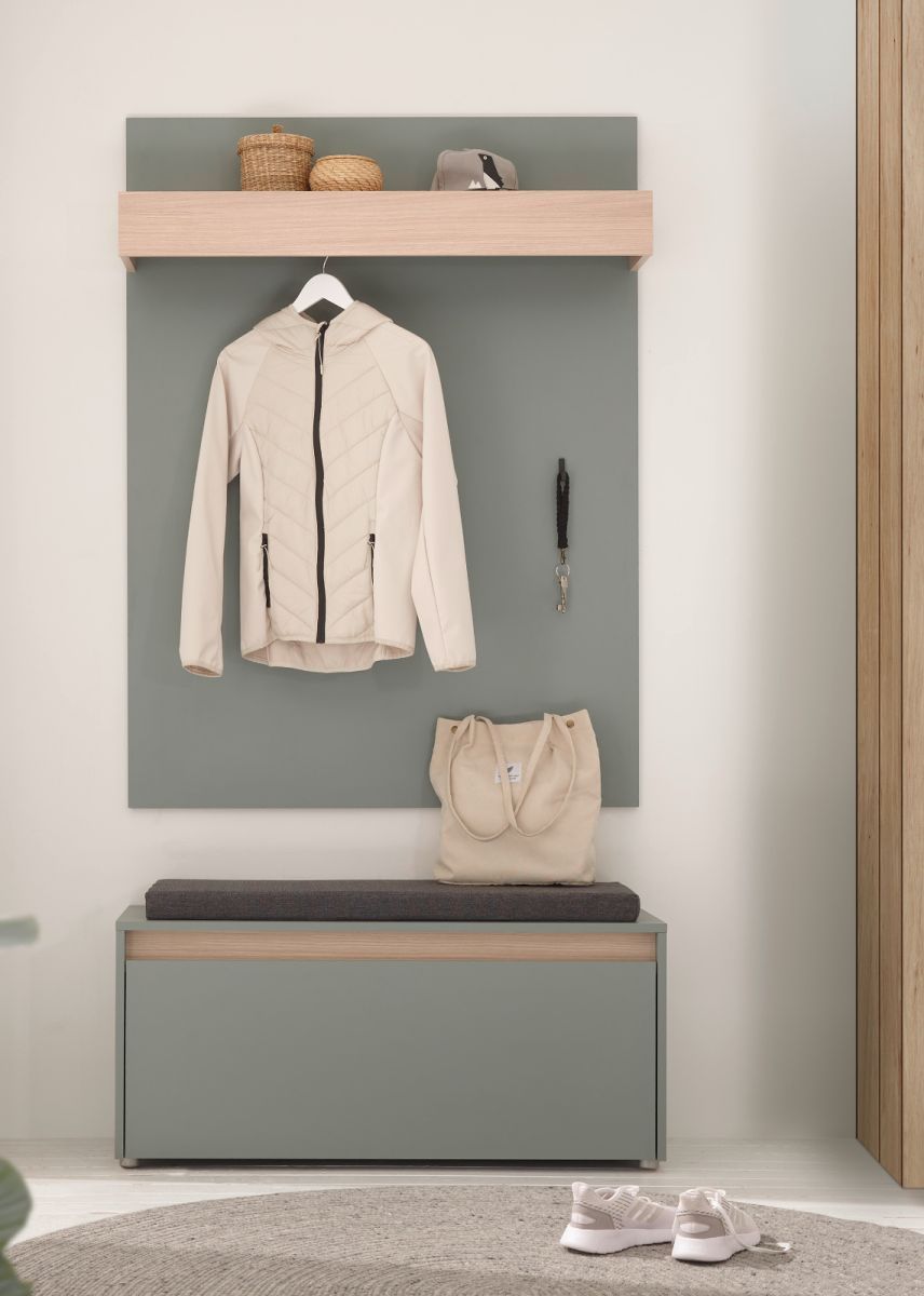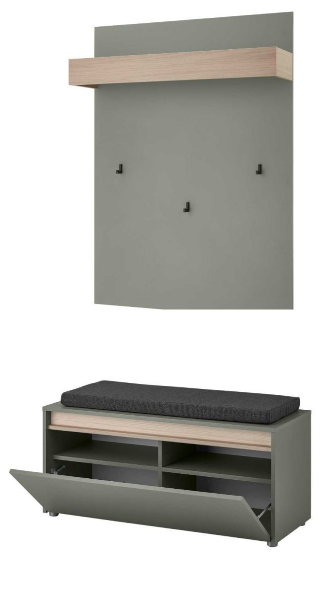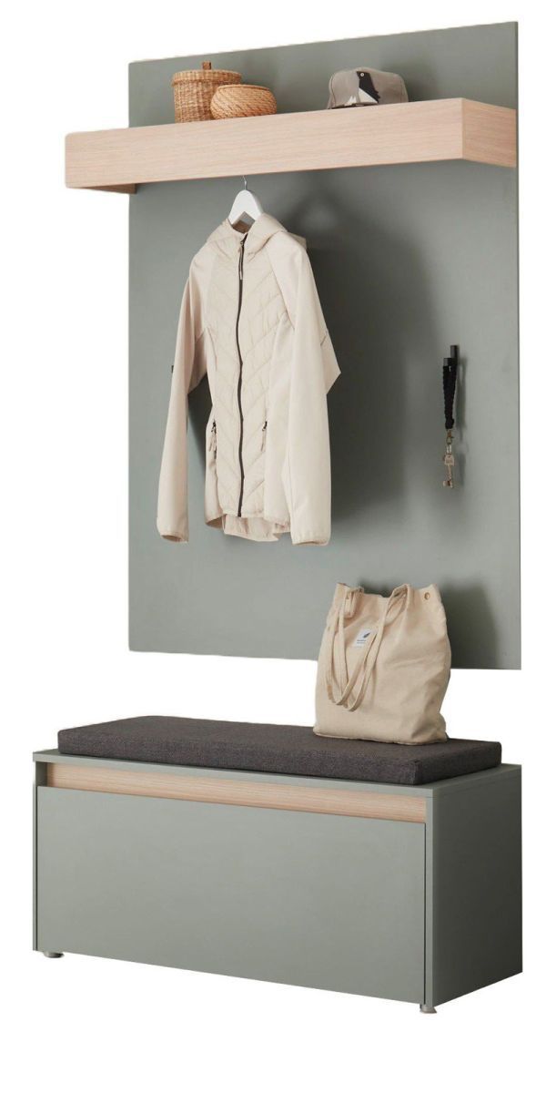 Garderobe Set 3-teilig "Center" in Salbei und Barista Eiche Garderobenkombination 100