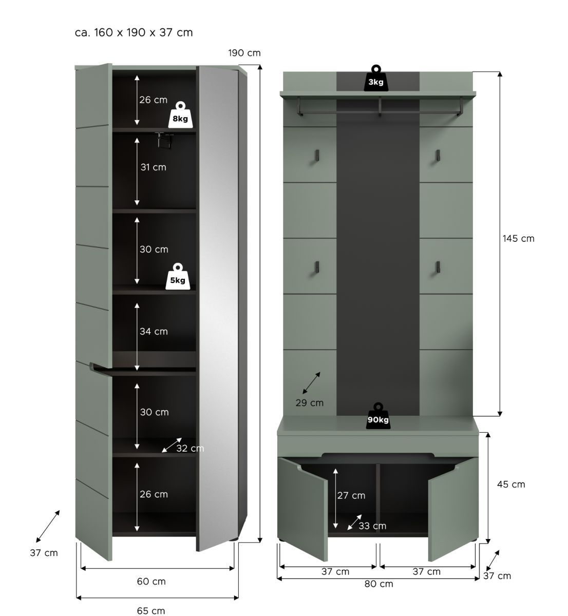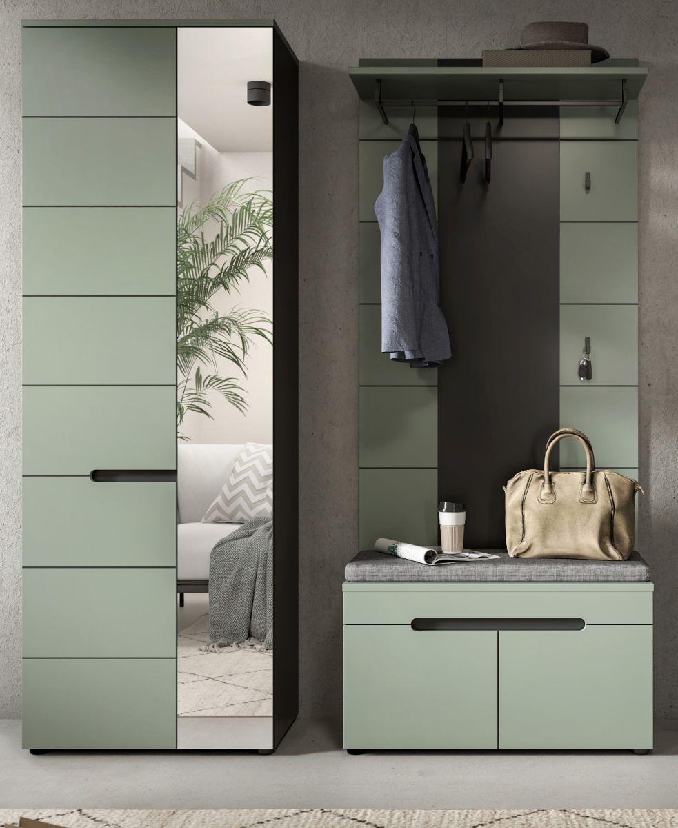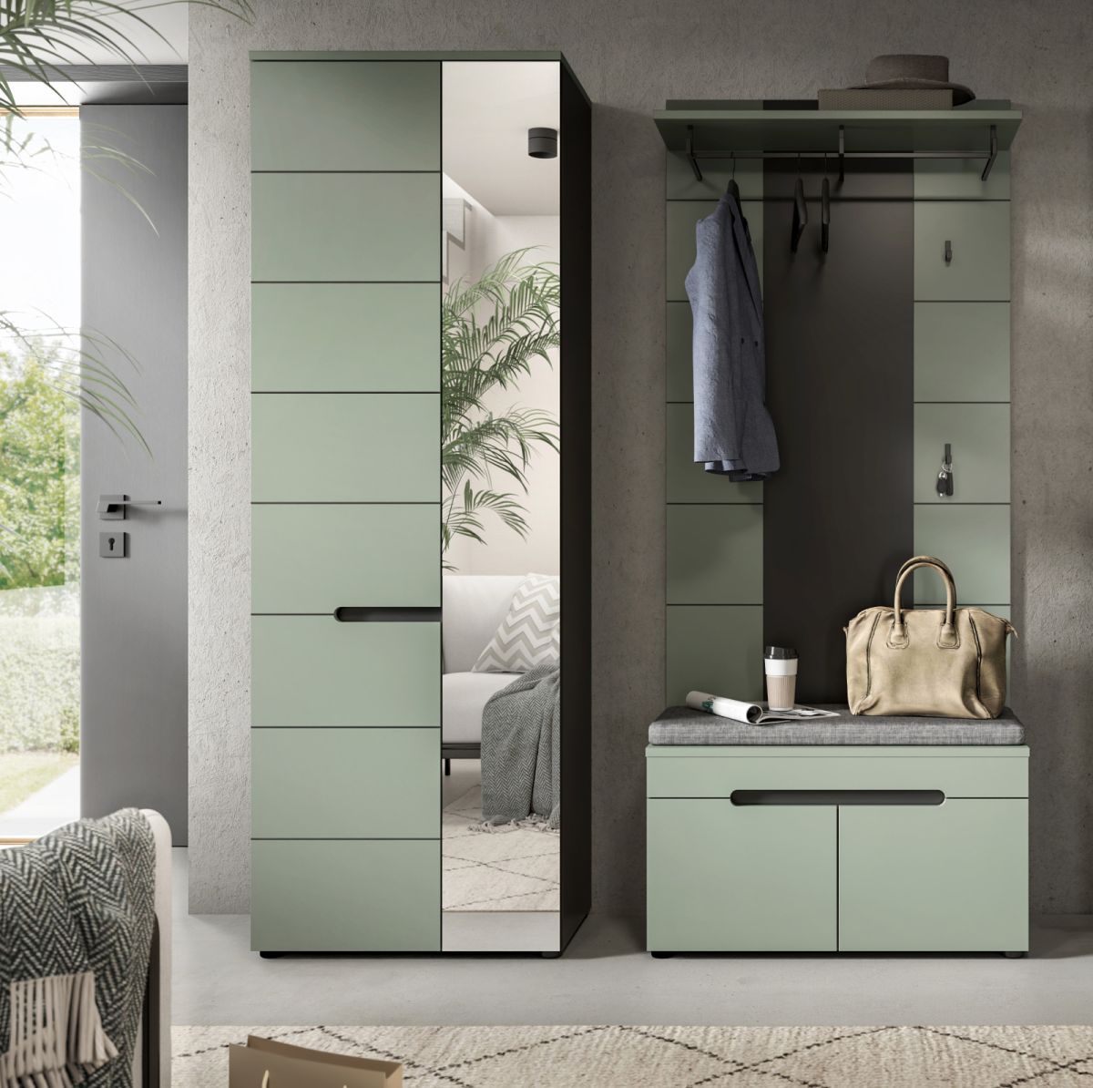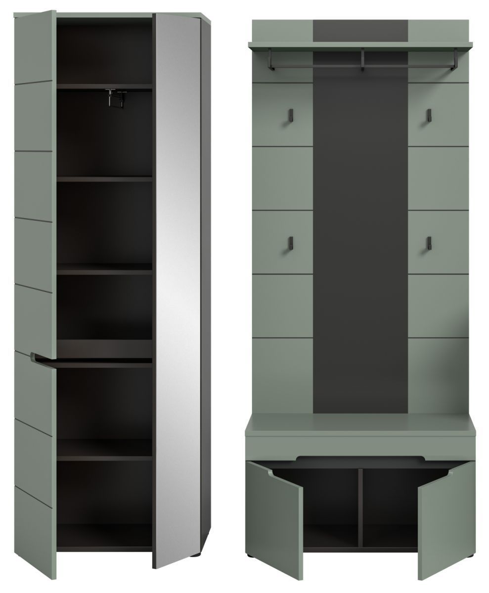 Garderobe Set 3-teilig "Cooper" in Salbei und Grau 160 cm, Soft-Close