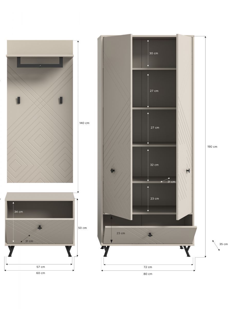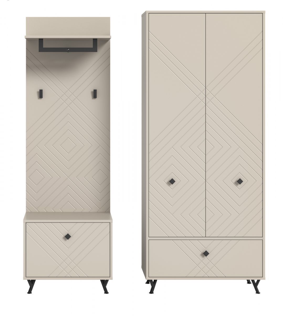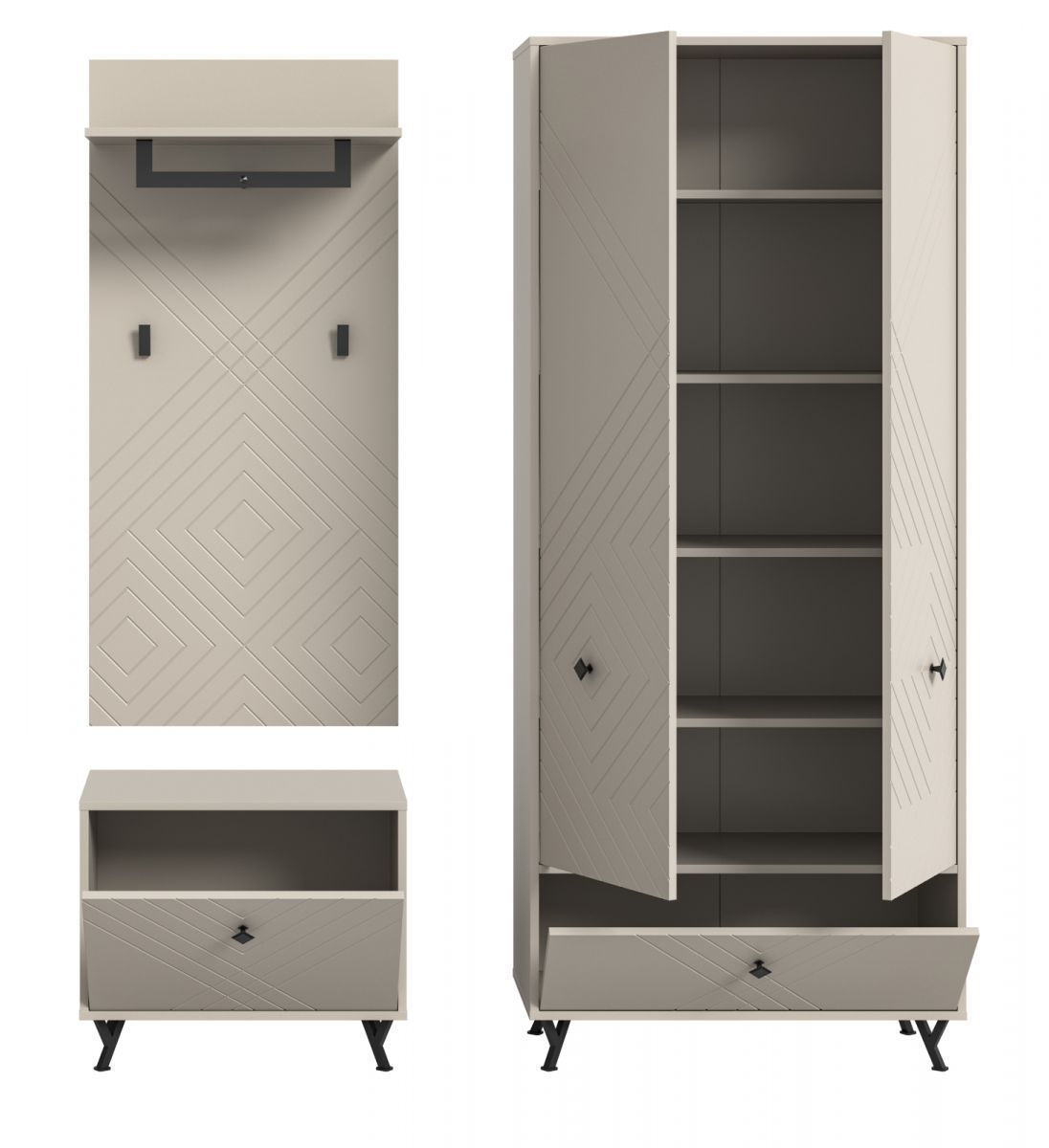 Garderobe Set 3-tlg. Garderobenkombination sand Flur Garderobenset Apunti 195x190 cm
