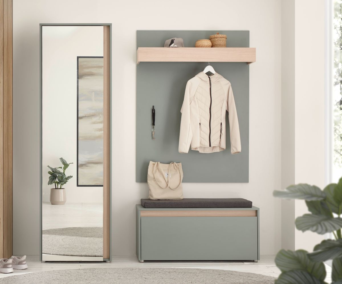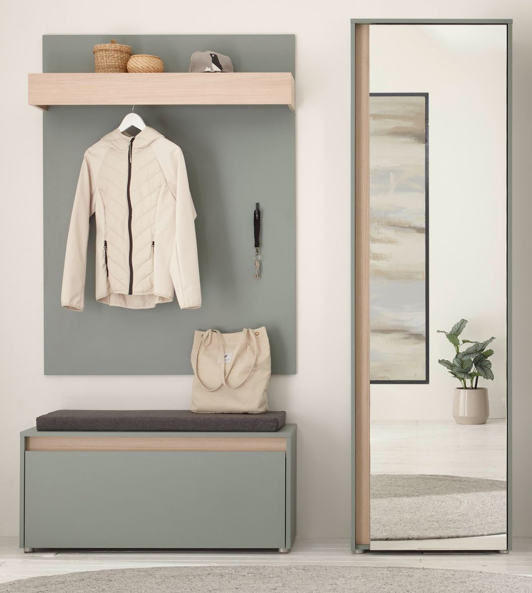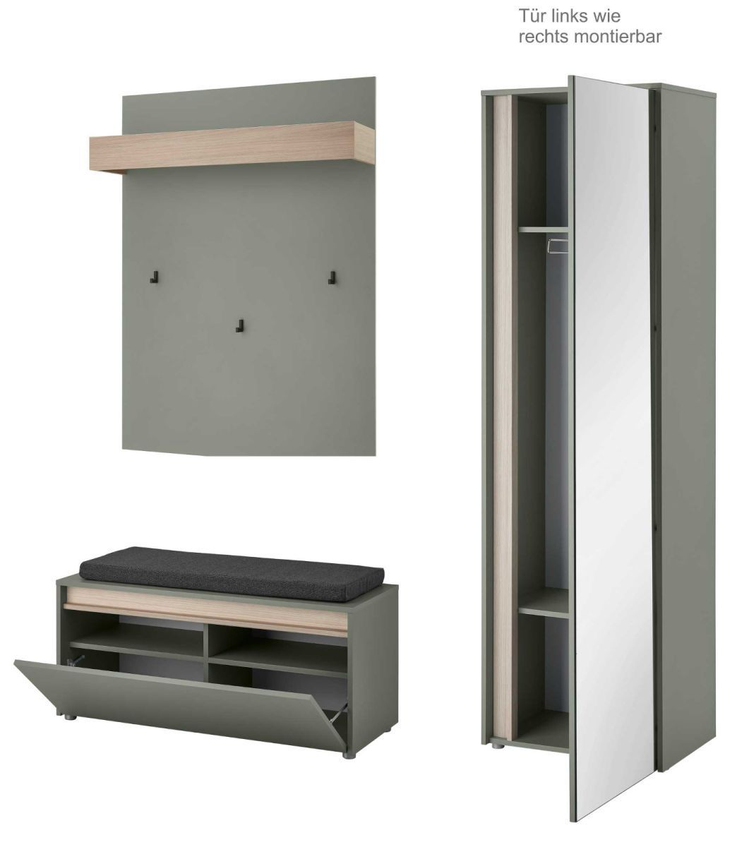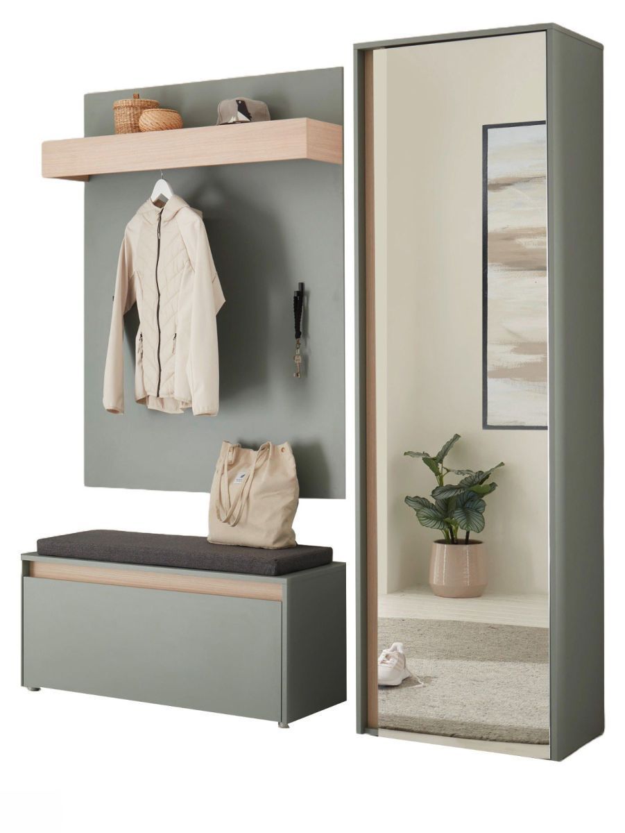 Garderobe Set 4-teilig "Center" in Salbei und Barista Eiche Garderobenkombination 170