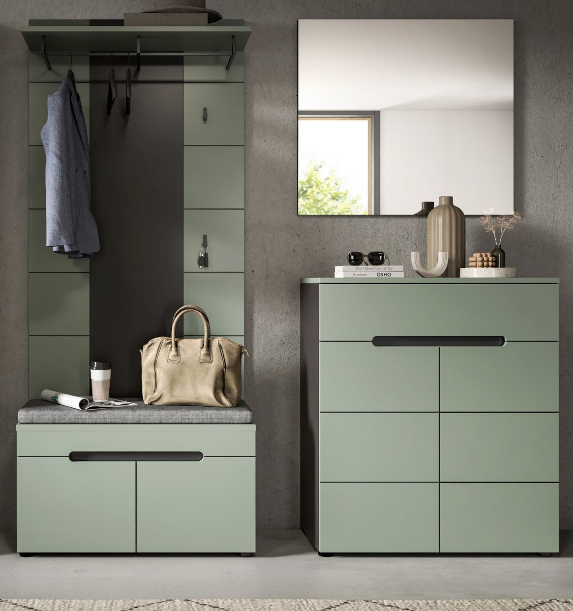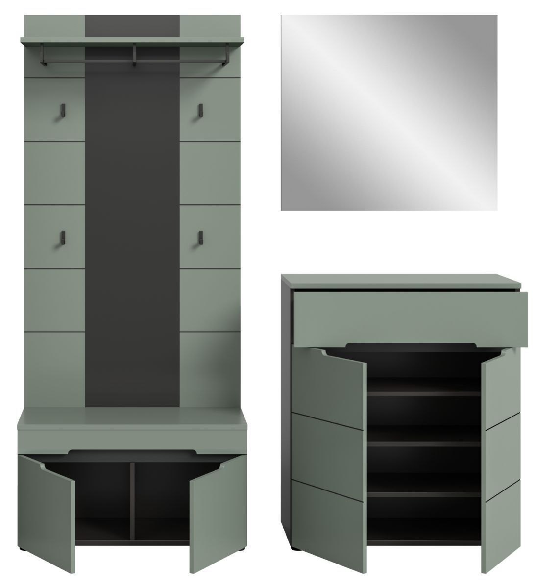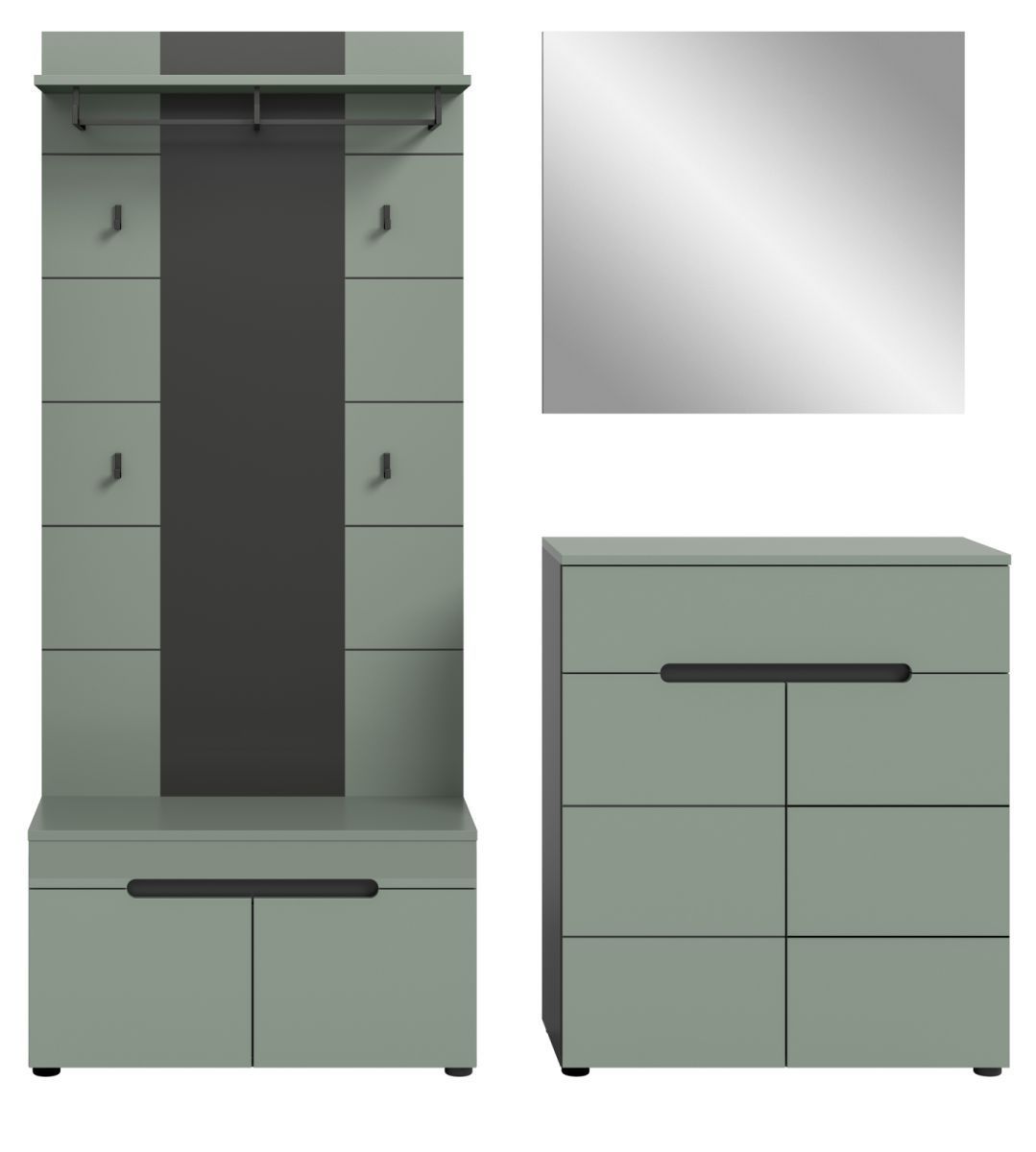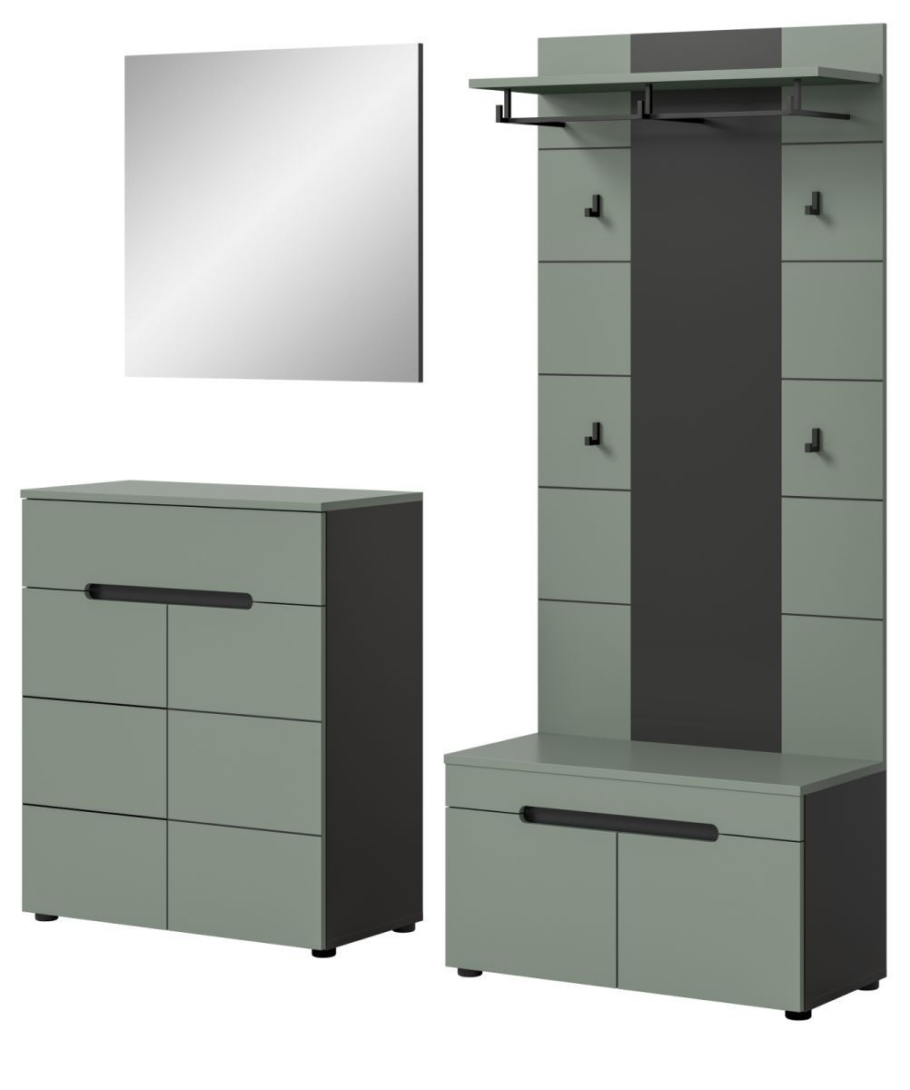 Garderobe Set 4-teilig "Cooper" in Salbei und Grau 175 cm, Soft-Close