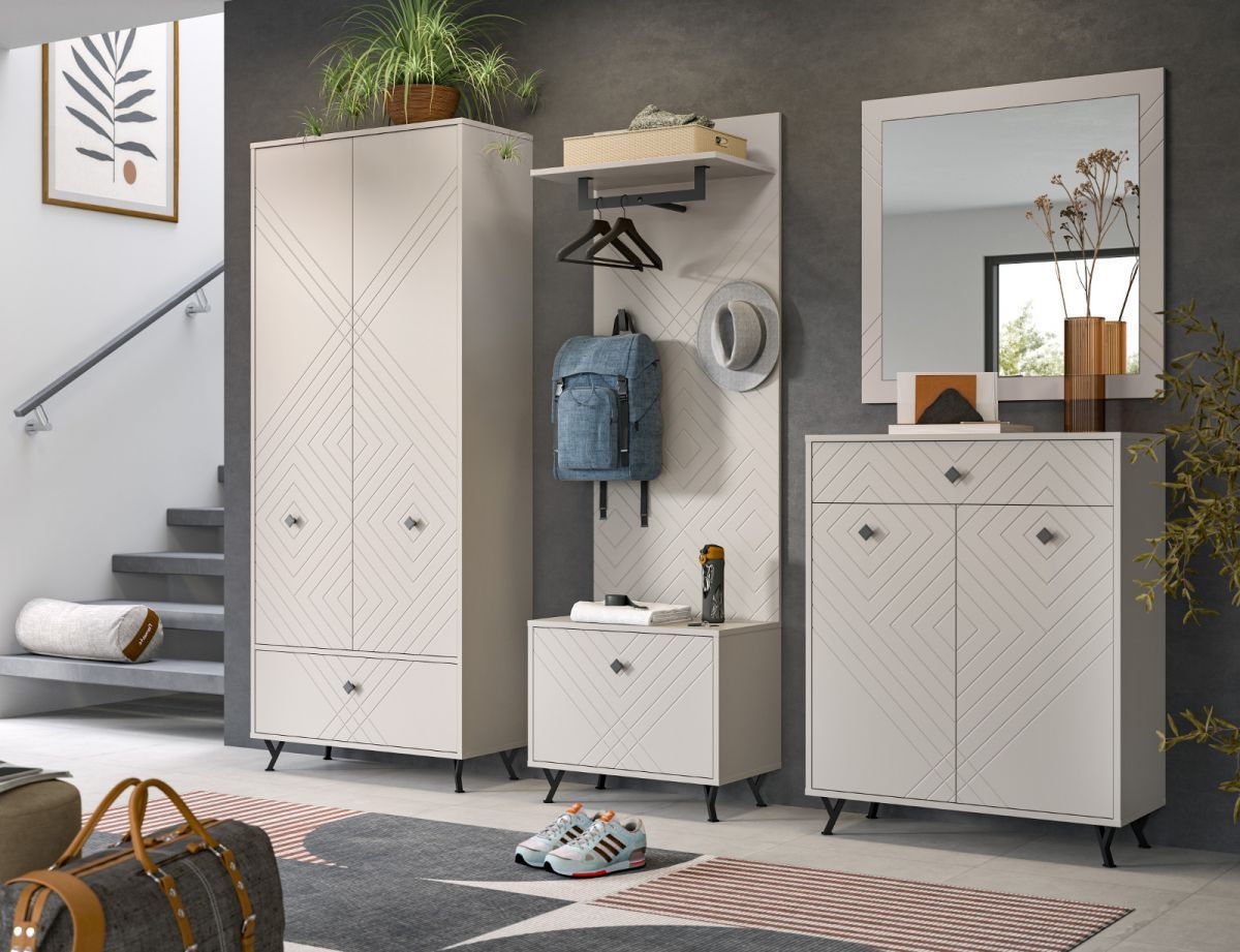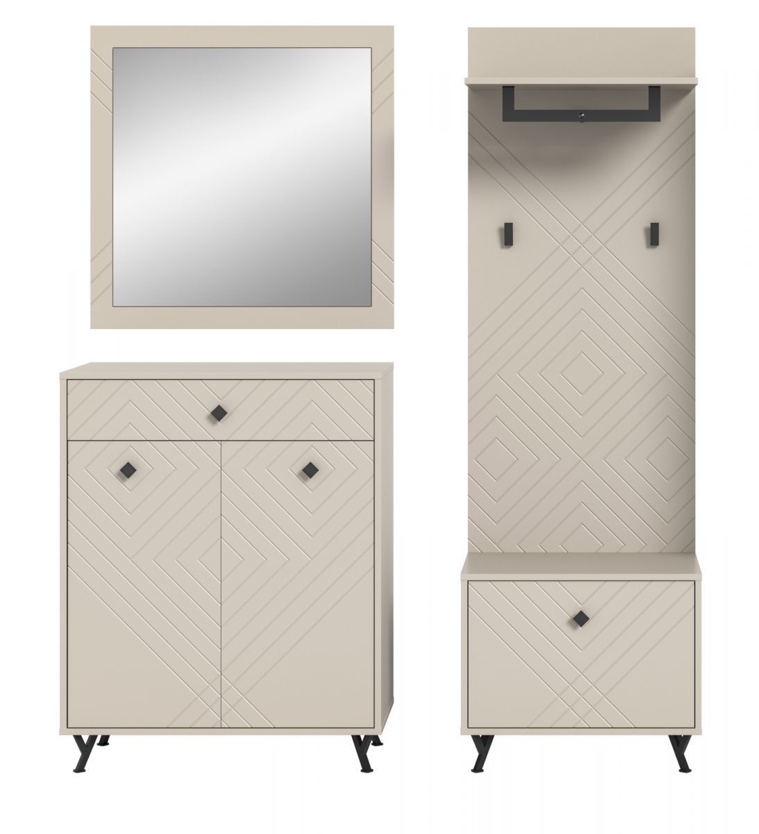 Garderobe Set 4-tlg. Garderobenkombination sand Flur Garderobenset Diele Apunti 155cm