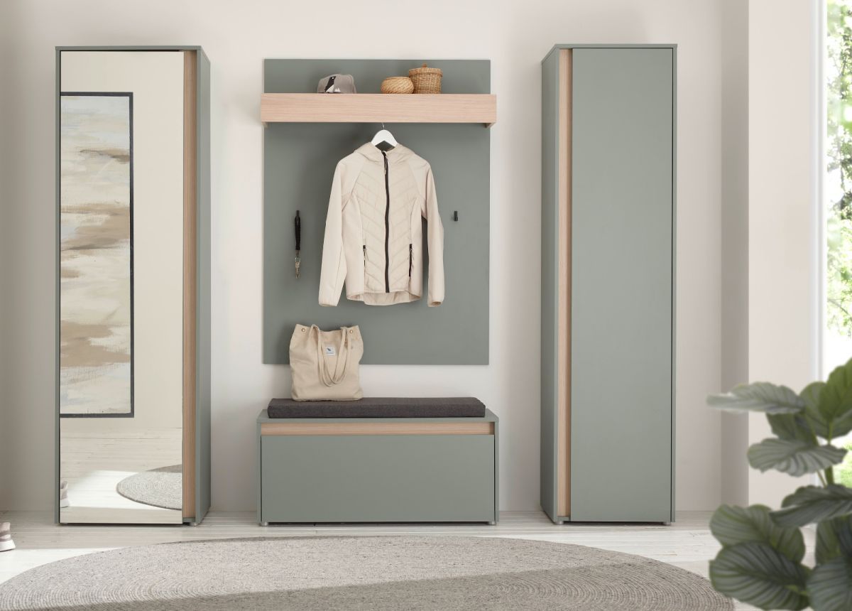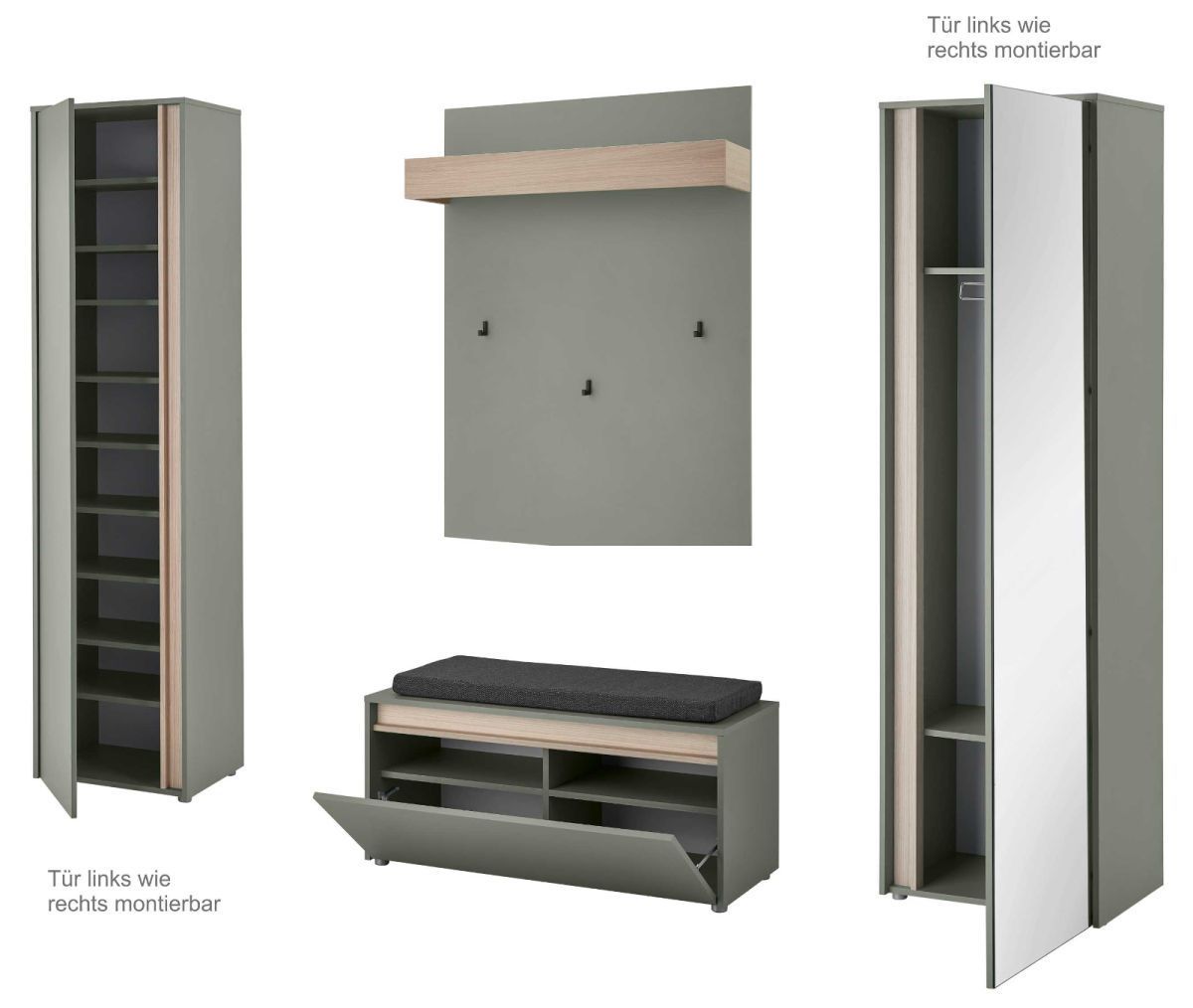 Garderobe Set 5-teilig "Center" in Salbei und Barista Eiche Garderobenkombination 230