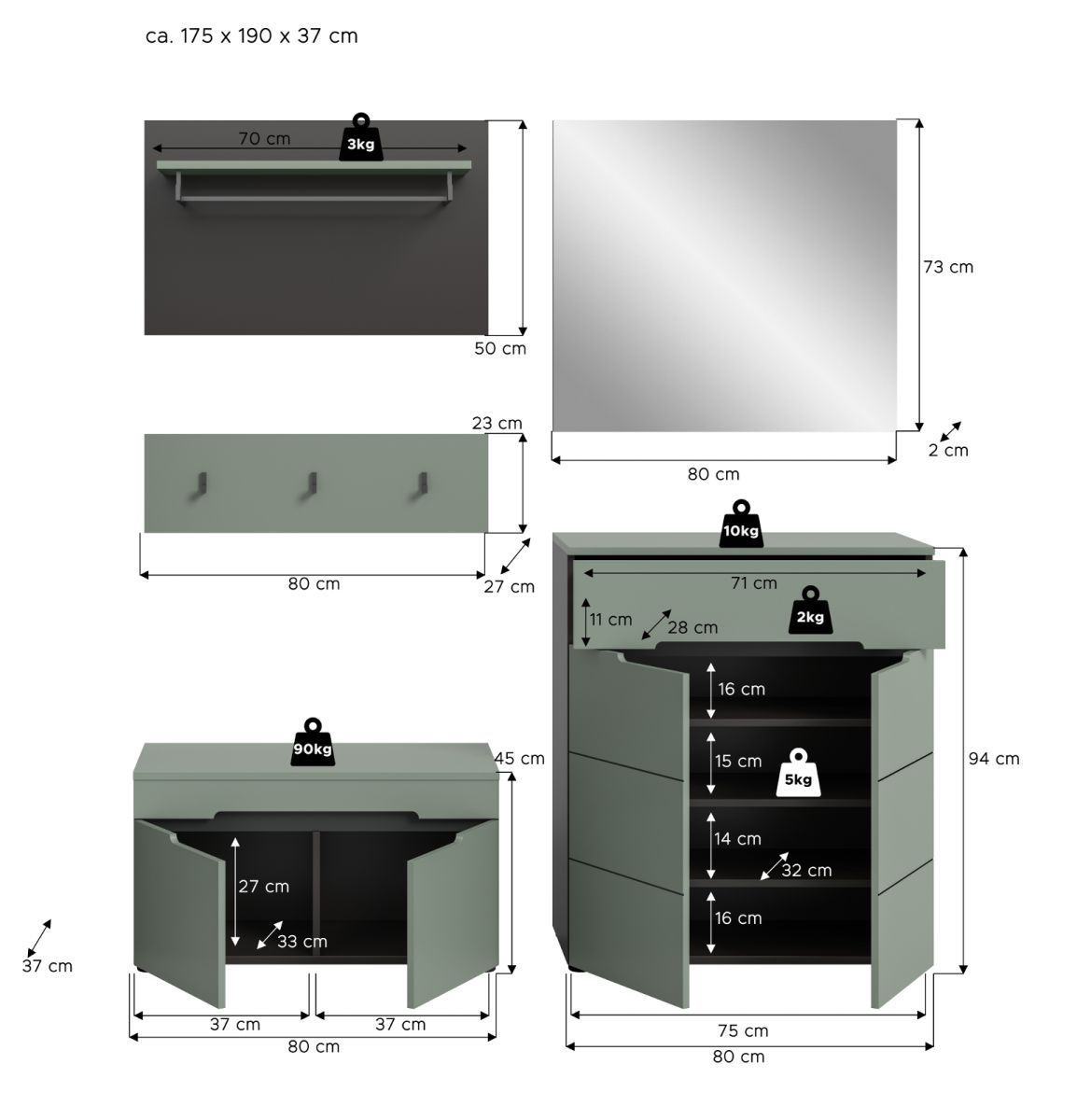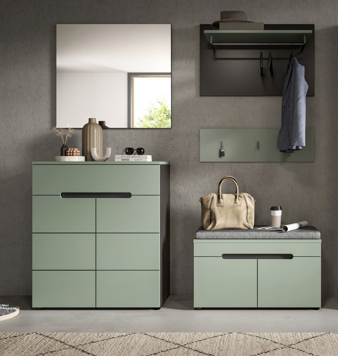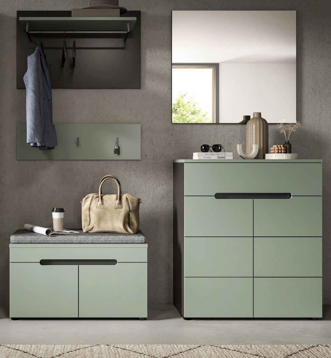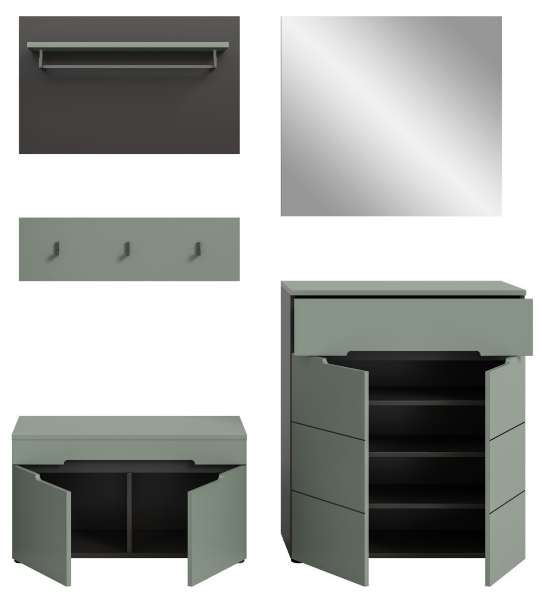 Garderobe Set 5-teilig "Cooper" in Salbei Grün und Basalt Grau 175 cm, Soft-Close