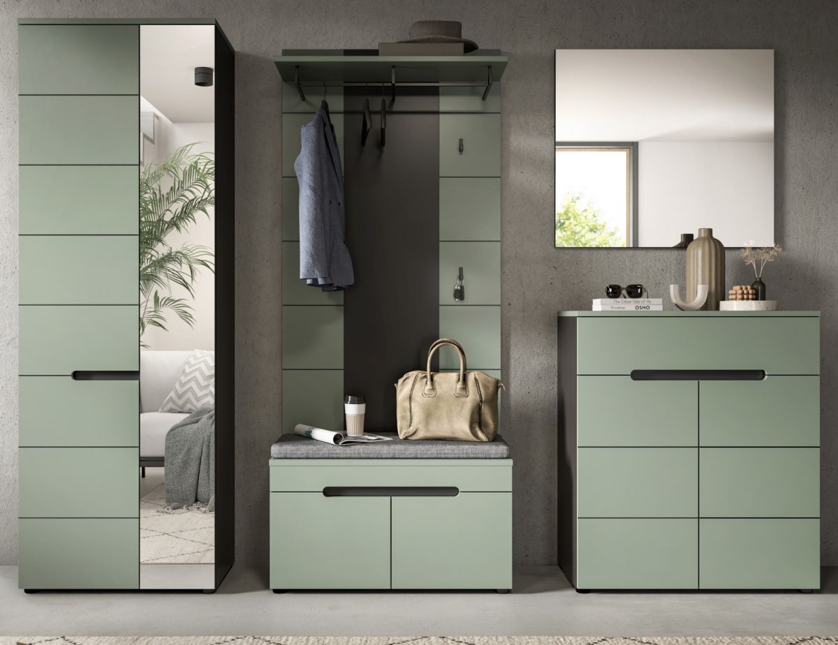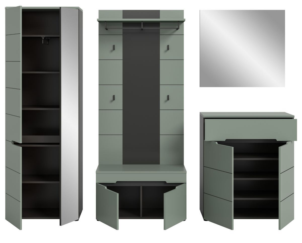 Garderobe Set 5-teilig "Cooper" in Salbei und Grau 255 cm, Soft-Close