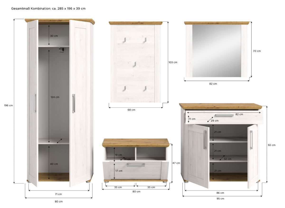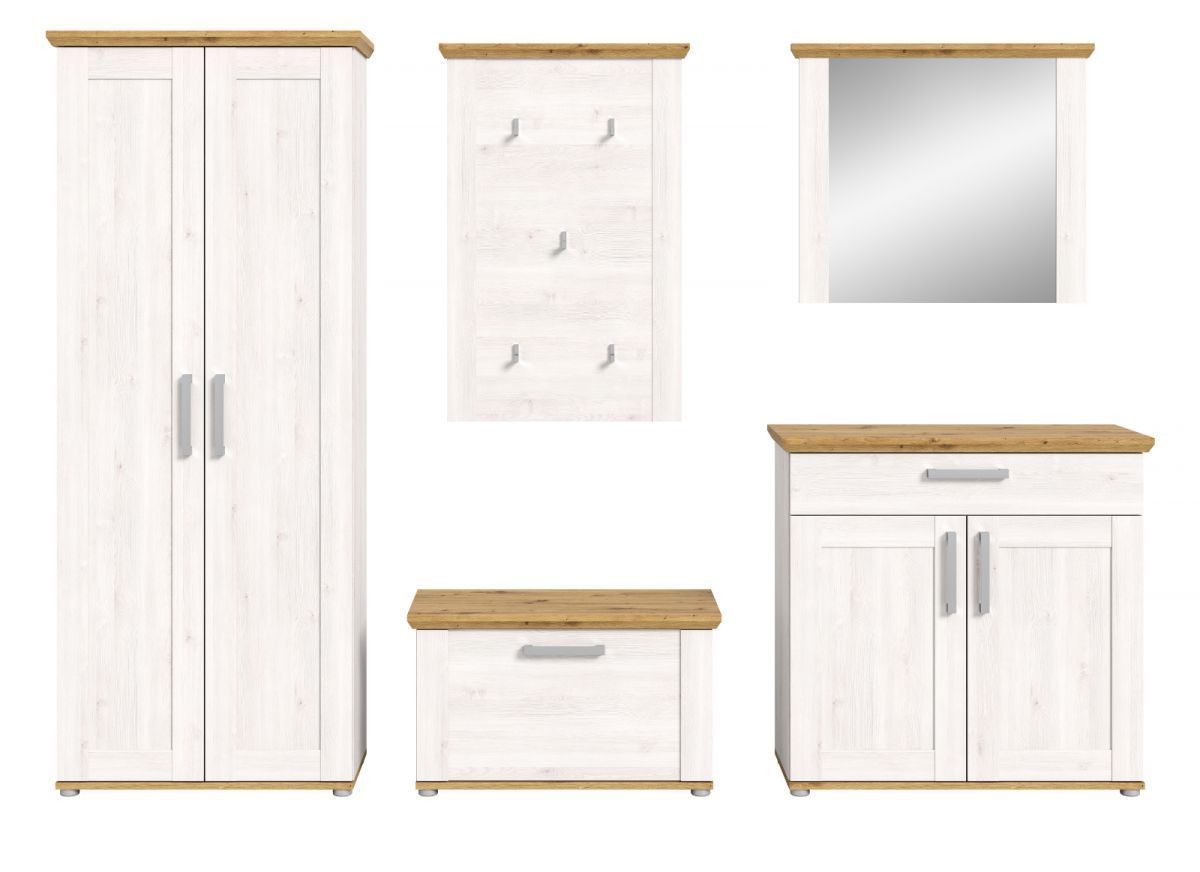 Garderobe Set 5-teilig "Mirano" in weiß Lärche und Eiche Artisan Landhaus Garderobe