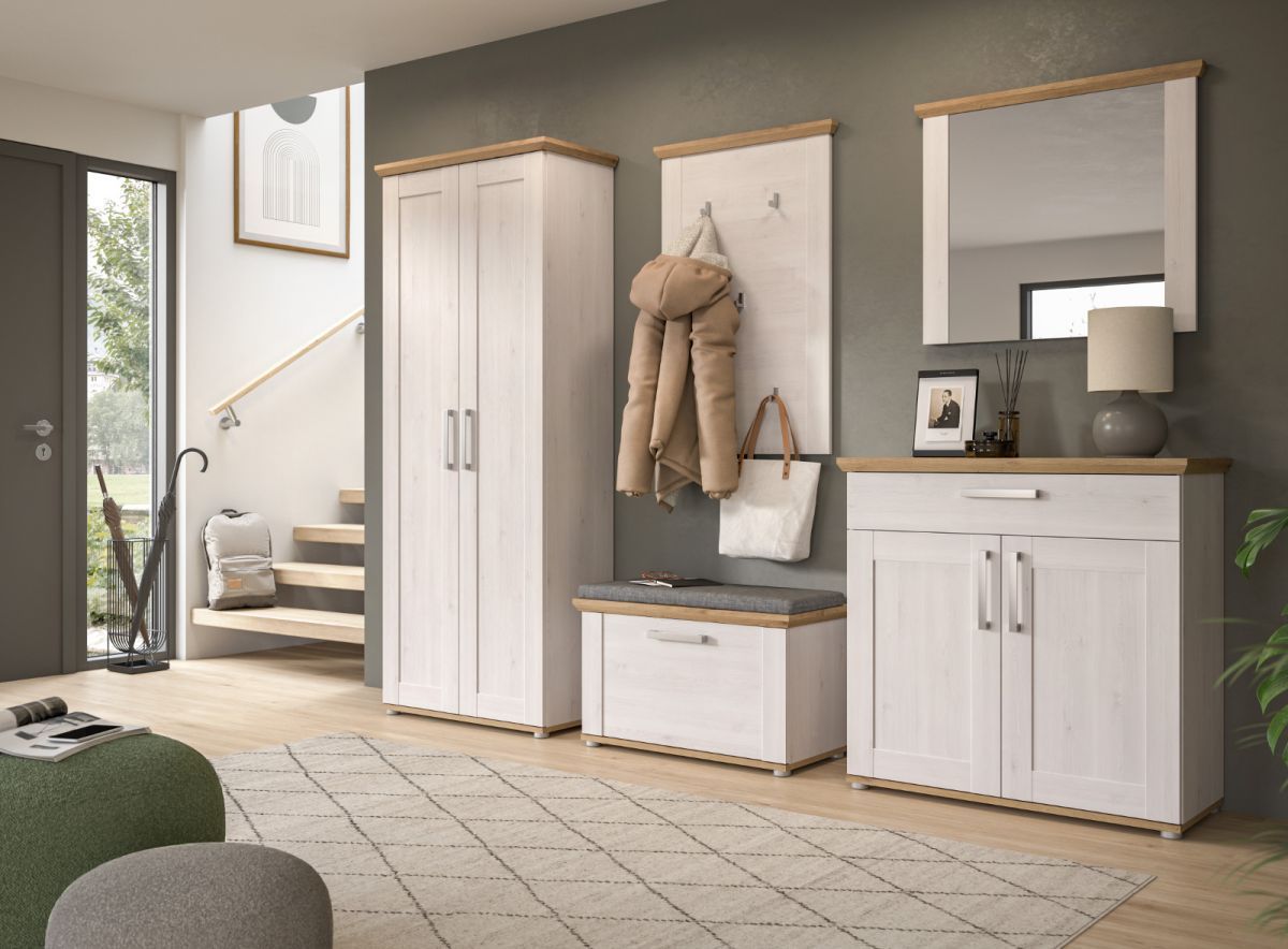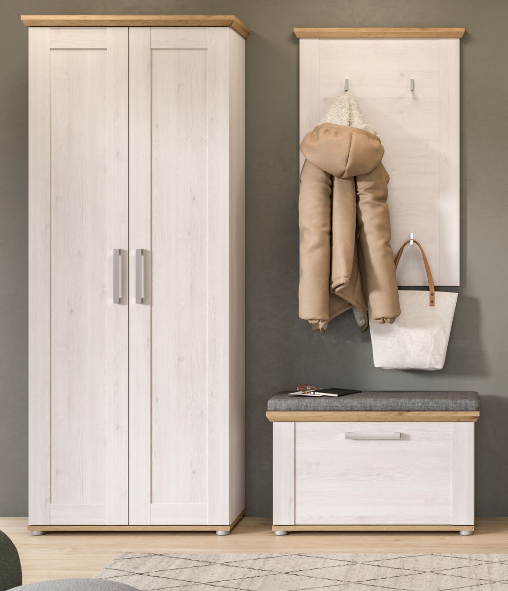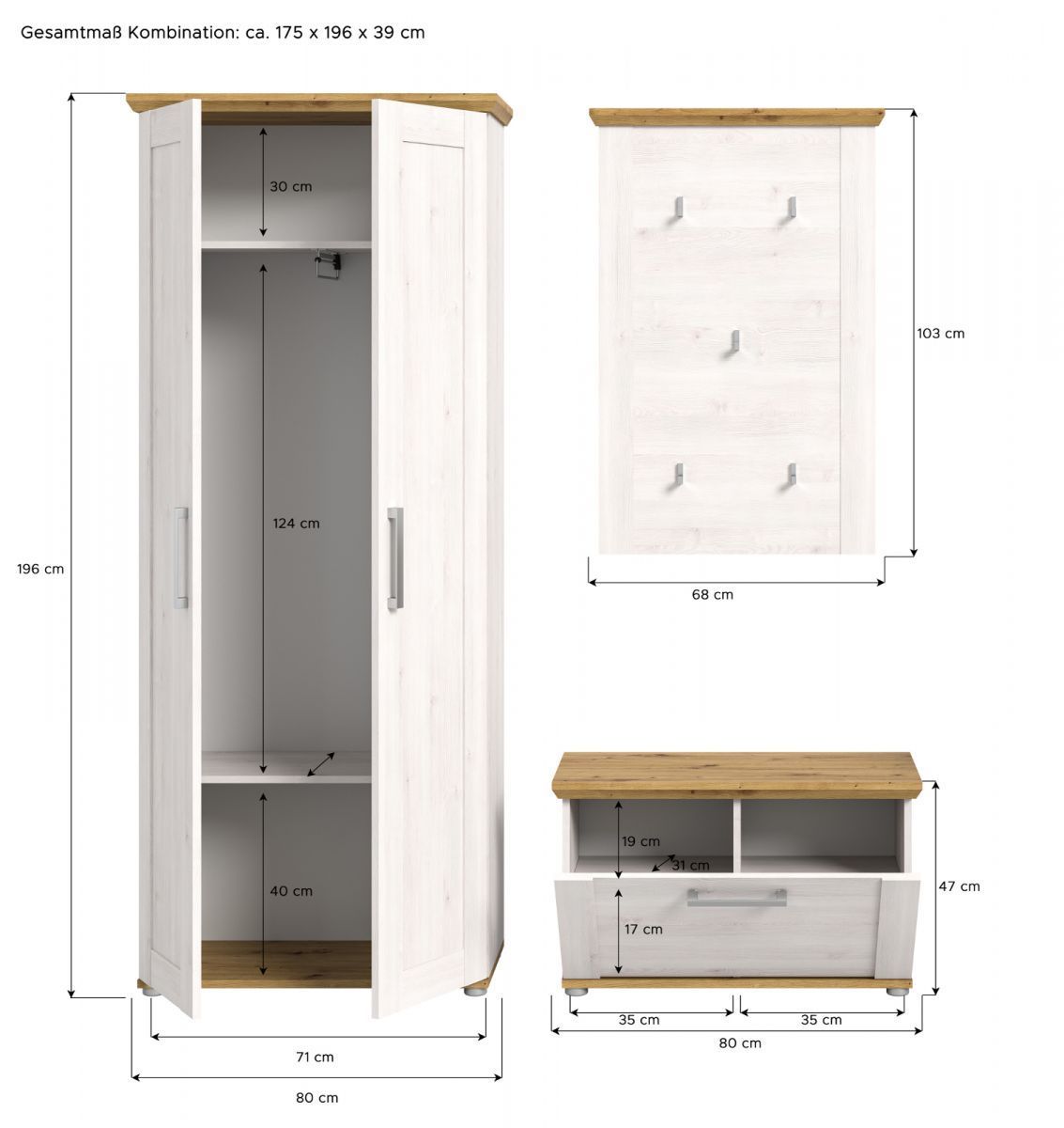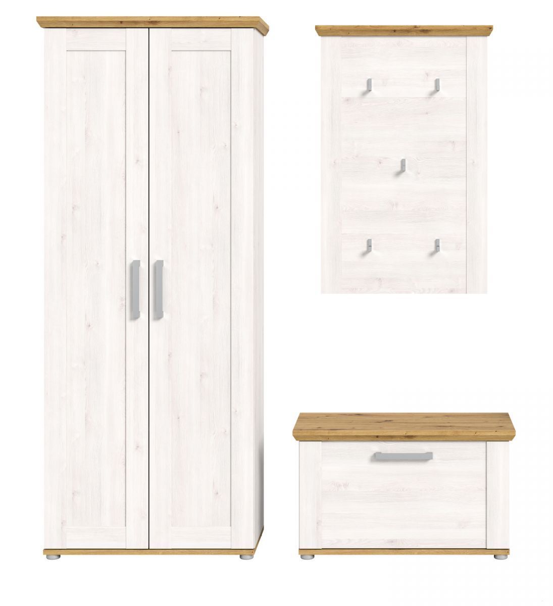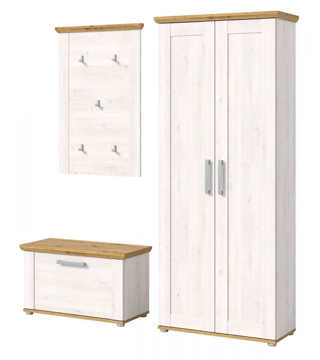 Garderobe Set Flurgarderobe 3-teilig weiß Lärche Eiche Landhaus Flurmöbel Mirano