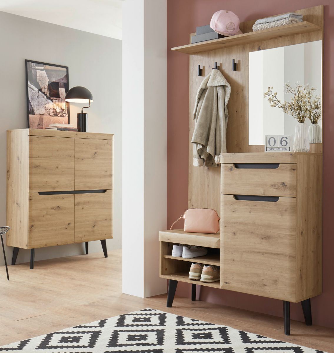 Garderobe Set Flurgarderobe Eiche Artisan schwarz Flur Möbel Set mit Highboard Ronson