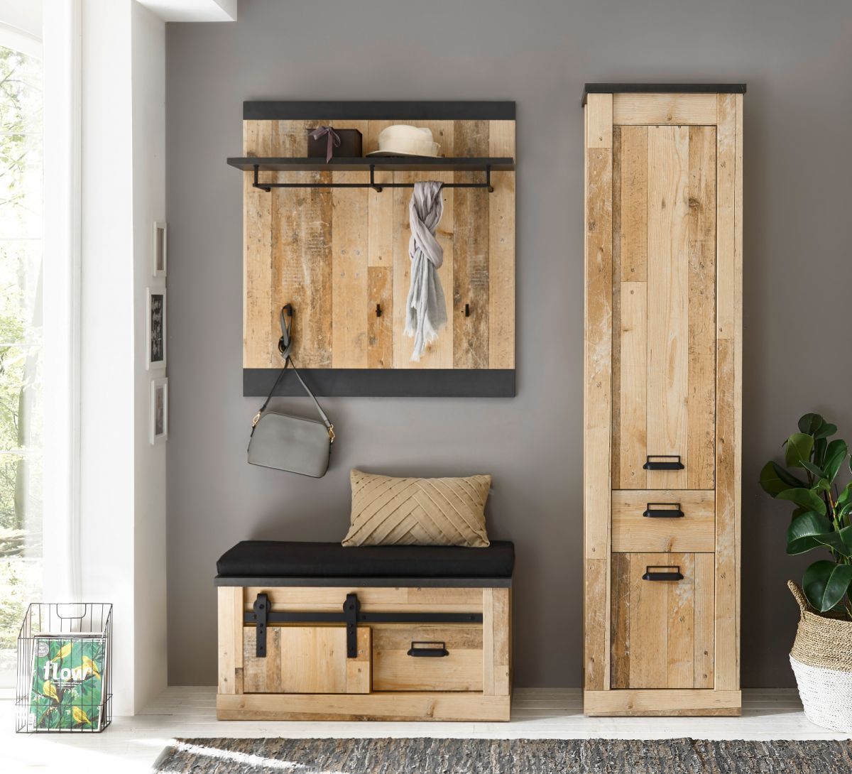 Garderobe Set Flurgarderobe Used Wood Vintage Flur Möbel Set mit Schrank Stove