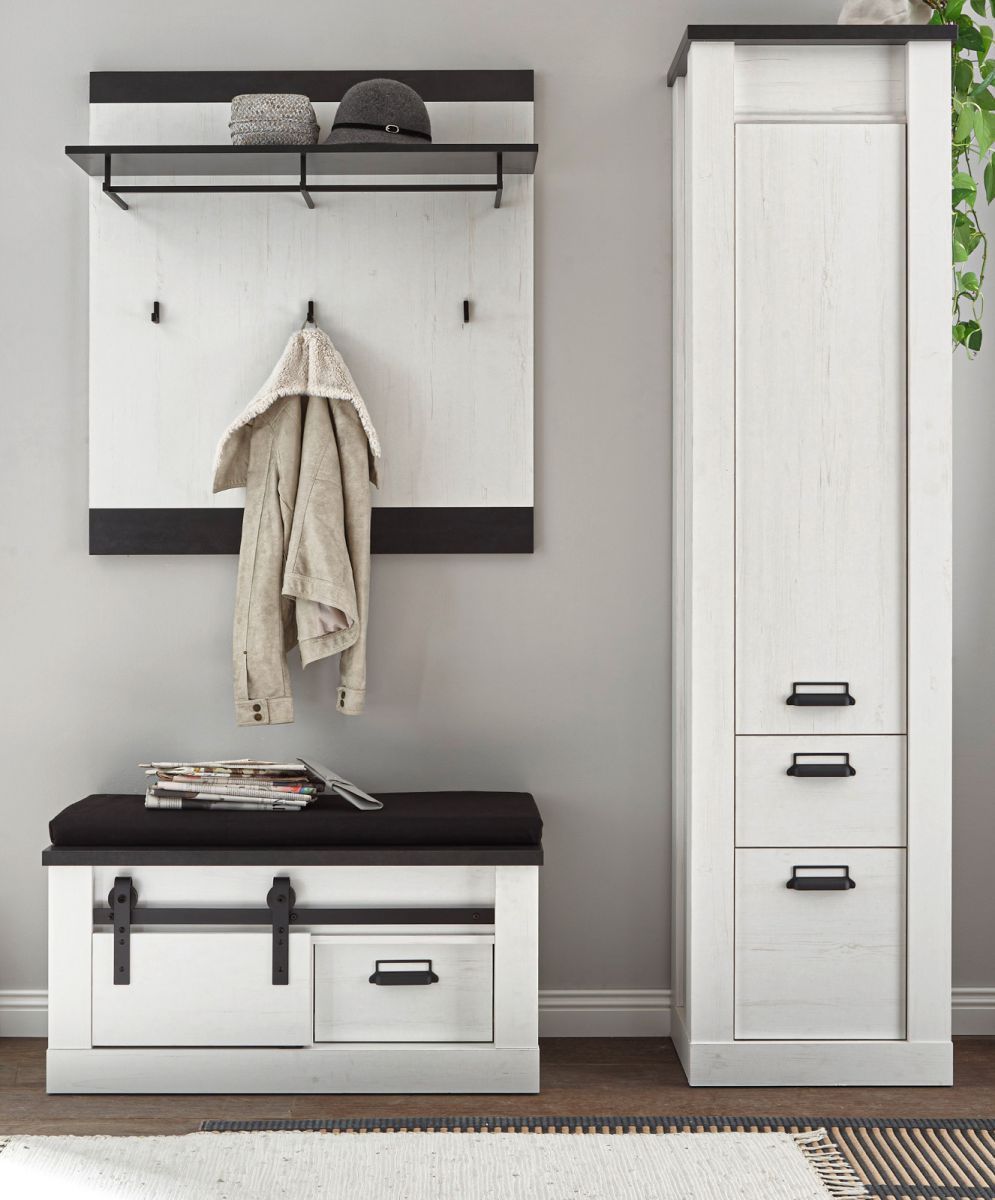 Garderobe Set Flurgarderobe weiß Pinie Landhaus Flur Möbel Set mit Schrank Stove