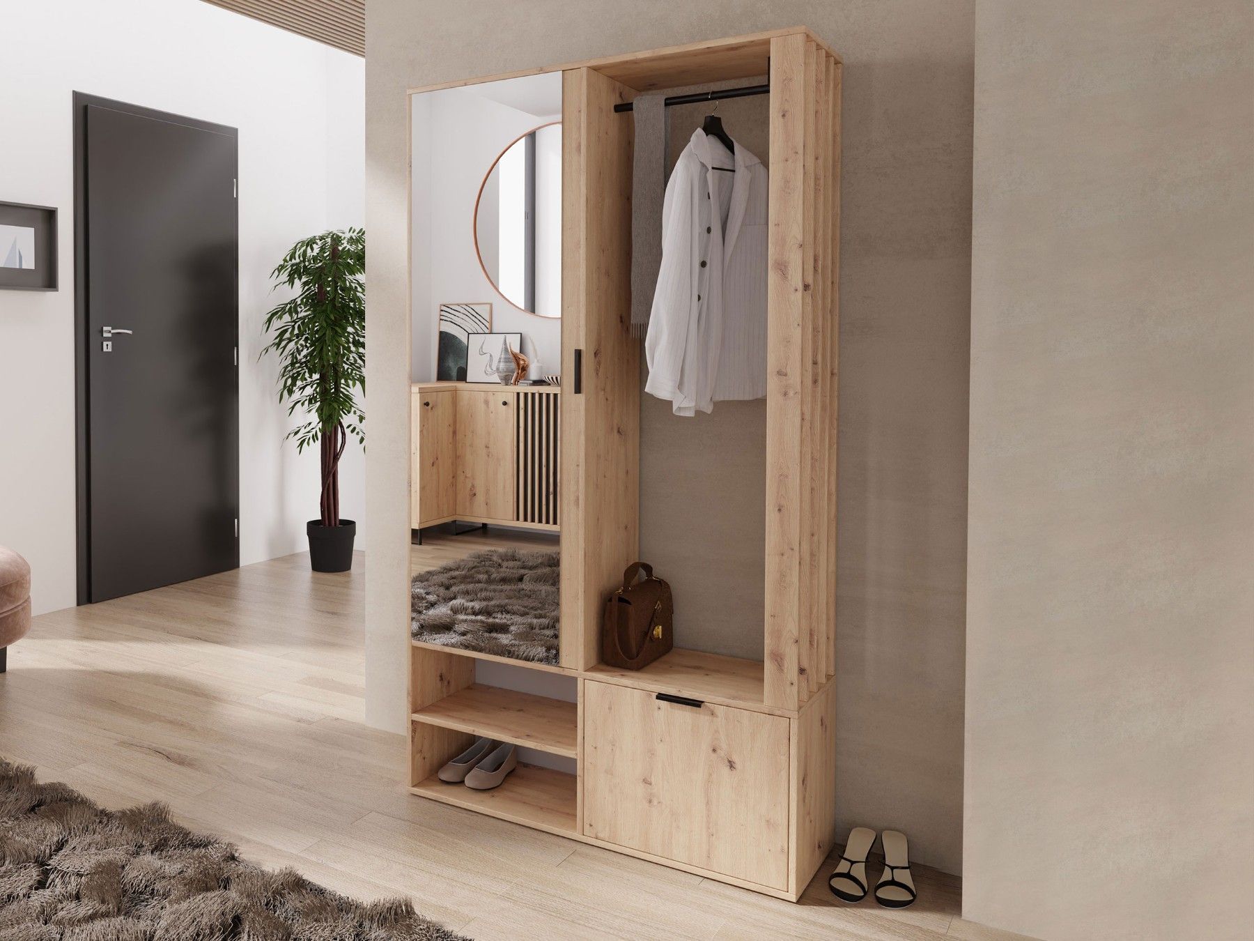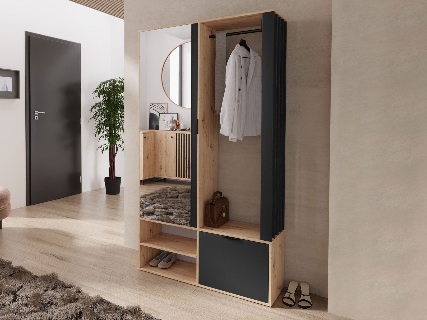 Garderobe-Set Milo Garderobe Kleiderständer Schuhschrank Spiegel Schrank M24