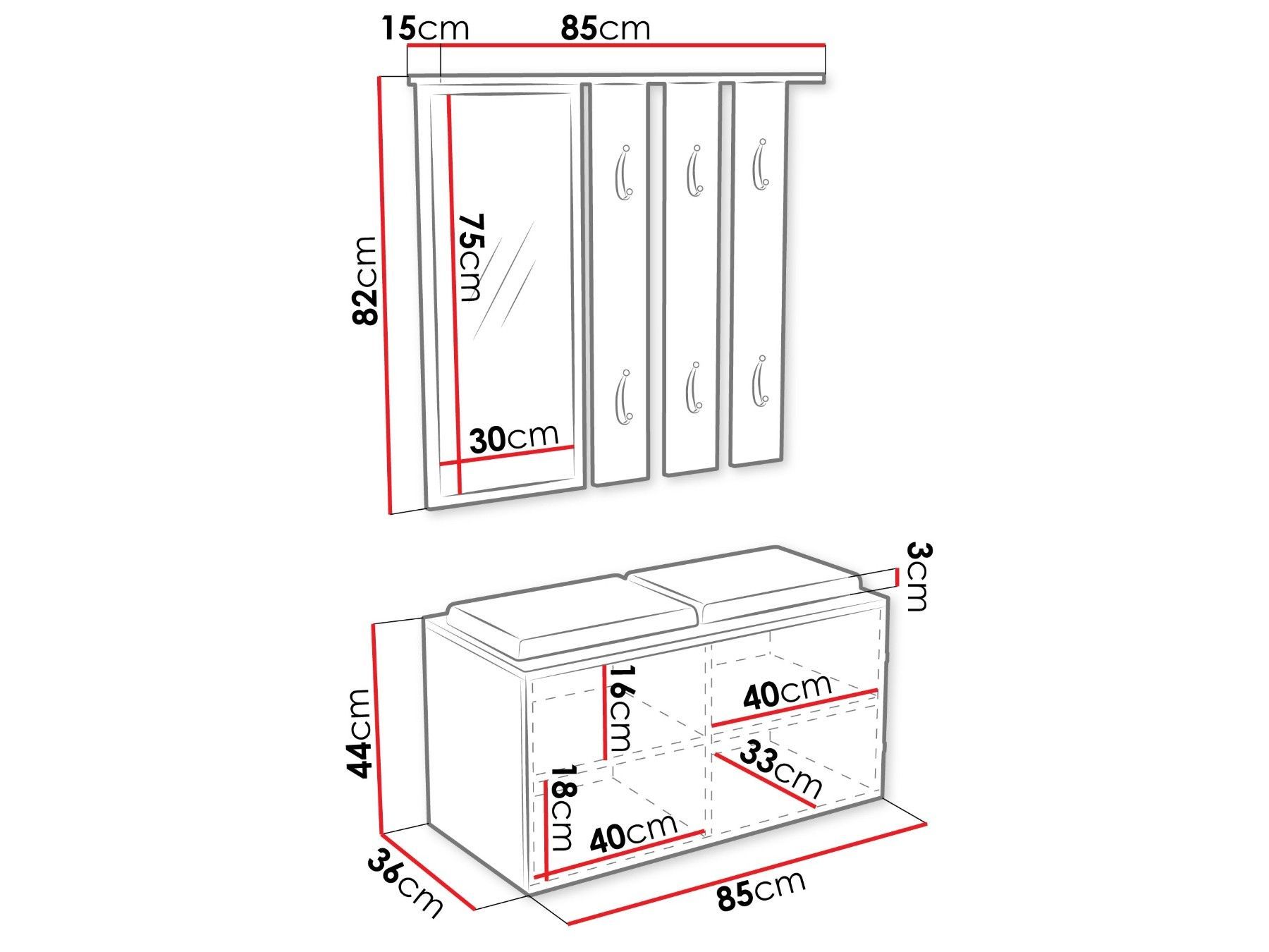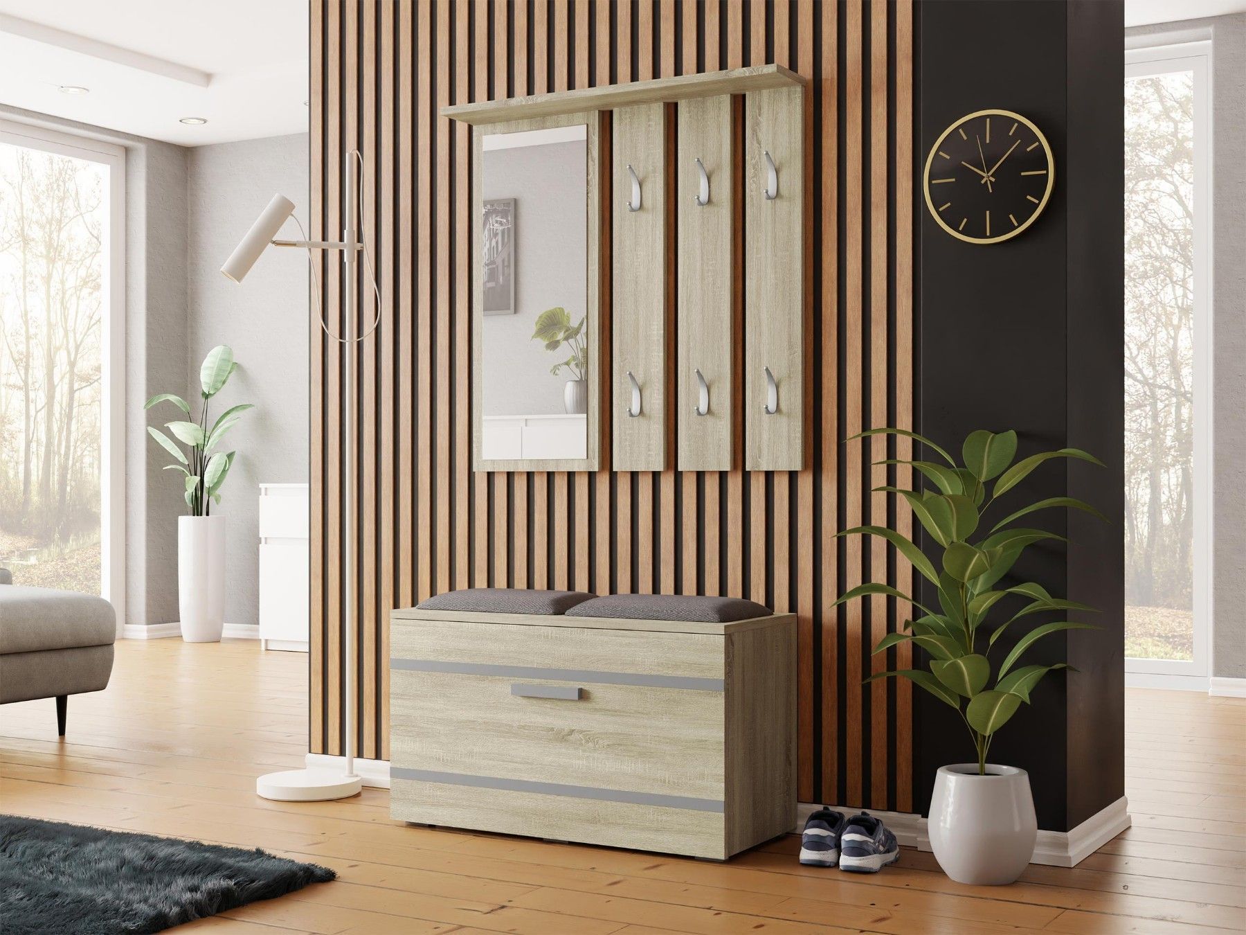 Garderobe-Set Opal Garderobe Kleiderständer Schuhschrank Spiegel Sitzbank M24