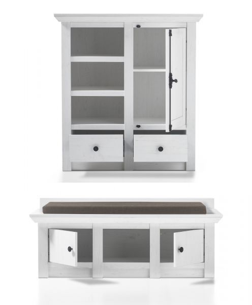 Garderobe Set weiß Pinie Landhaus Flurgarderobe 3-tlg mit Bank Diele Flur Hooge