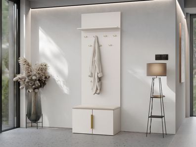 • Garderoben-Set Medi I Polsterpaneel 84x42 Haken Schrank mit Sitzbank Stilvoll M24