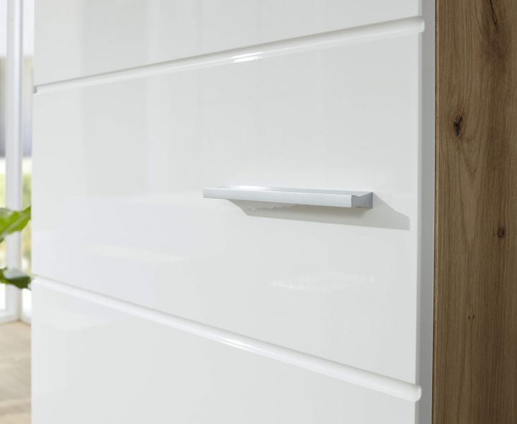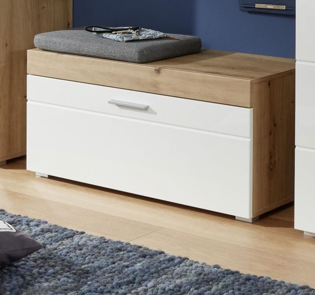 Trendteam Garderobe Sitzbank Hochglanz weiß / Eiche Garderobenbank 91 cm Schuhbank Amanda