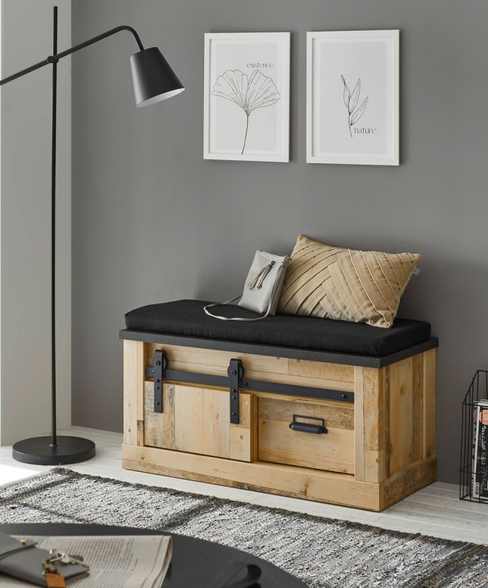 Garderobe Sitzbank in Used Wood Vintage Garderobenbank Schuhbank 93 cm Stove