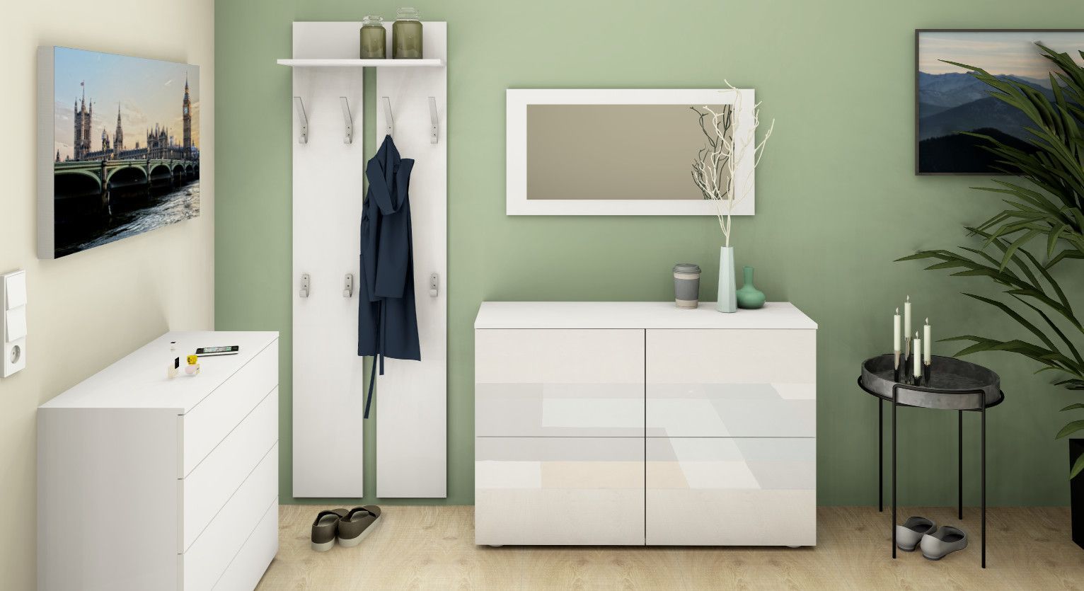 Garderoben Garderobe Garderobenständer Kommode Spiegel Wandpaneel Set Rova 1.0