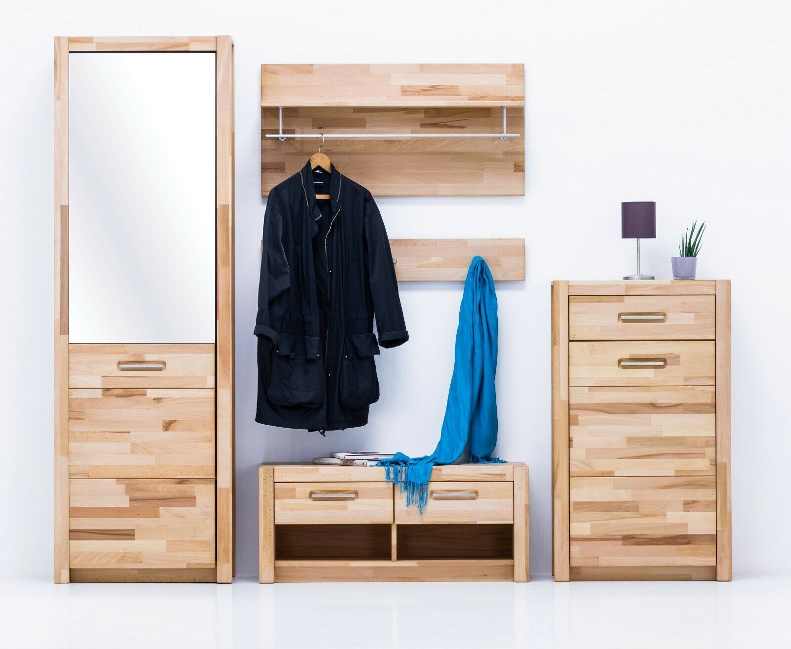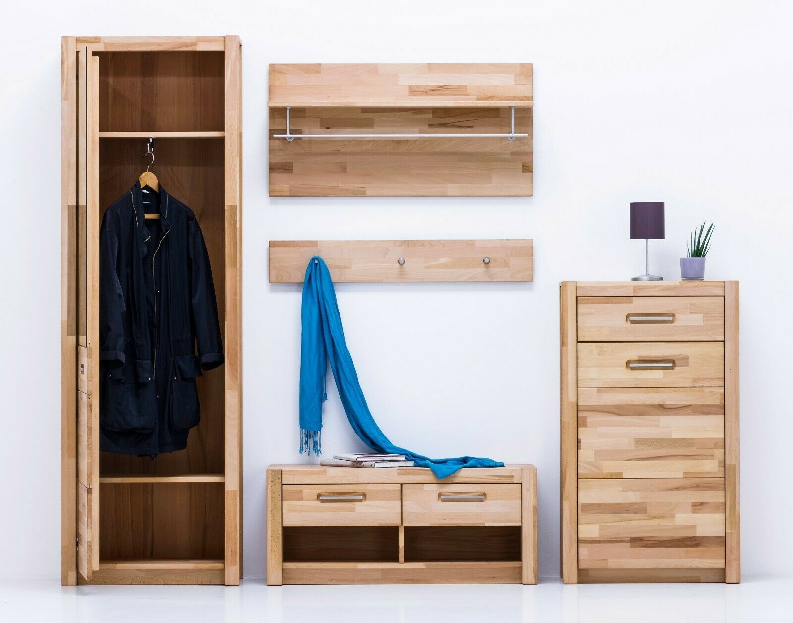 Garderoben Komplettset Kernbuche massiv 4 teilig Garderobenschrank Bank Kommode
