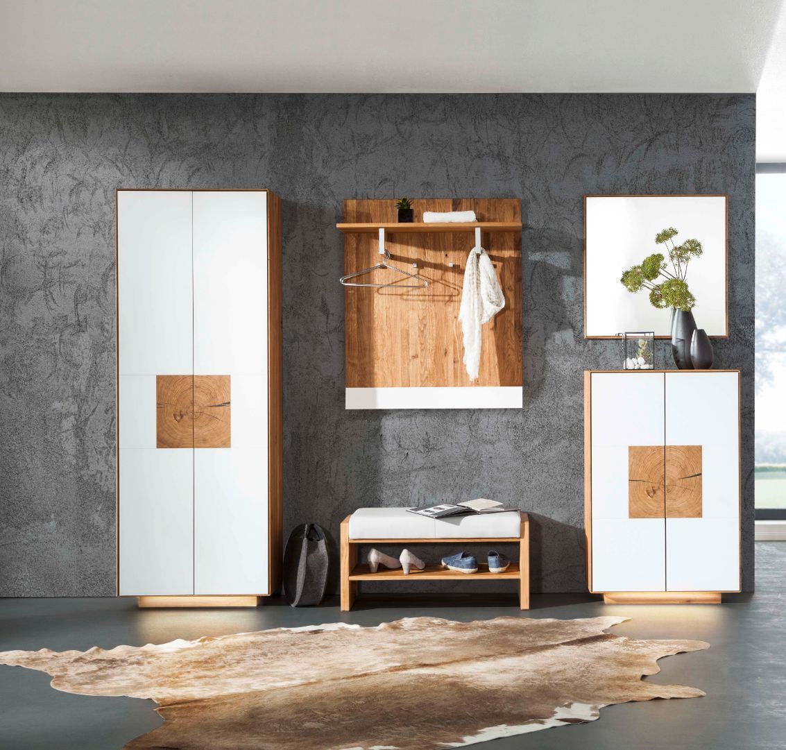 Garderoben Set 5-tlg. Dielenschrank Schuhschrank Spiegel Garderobe Bank Asteiche