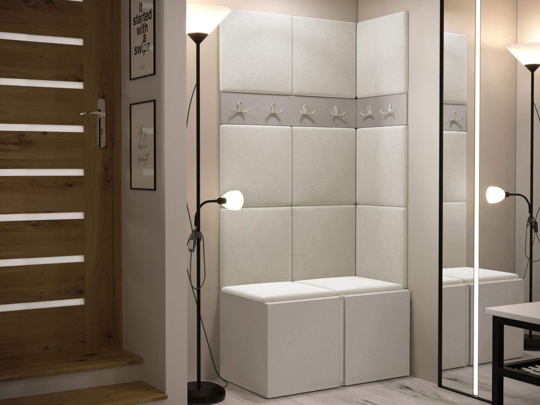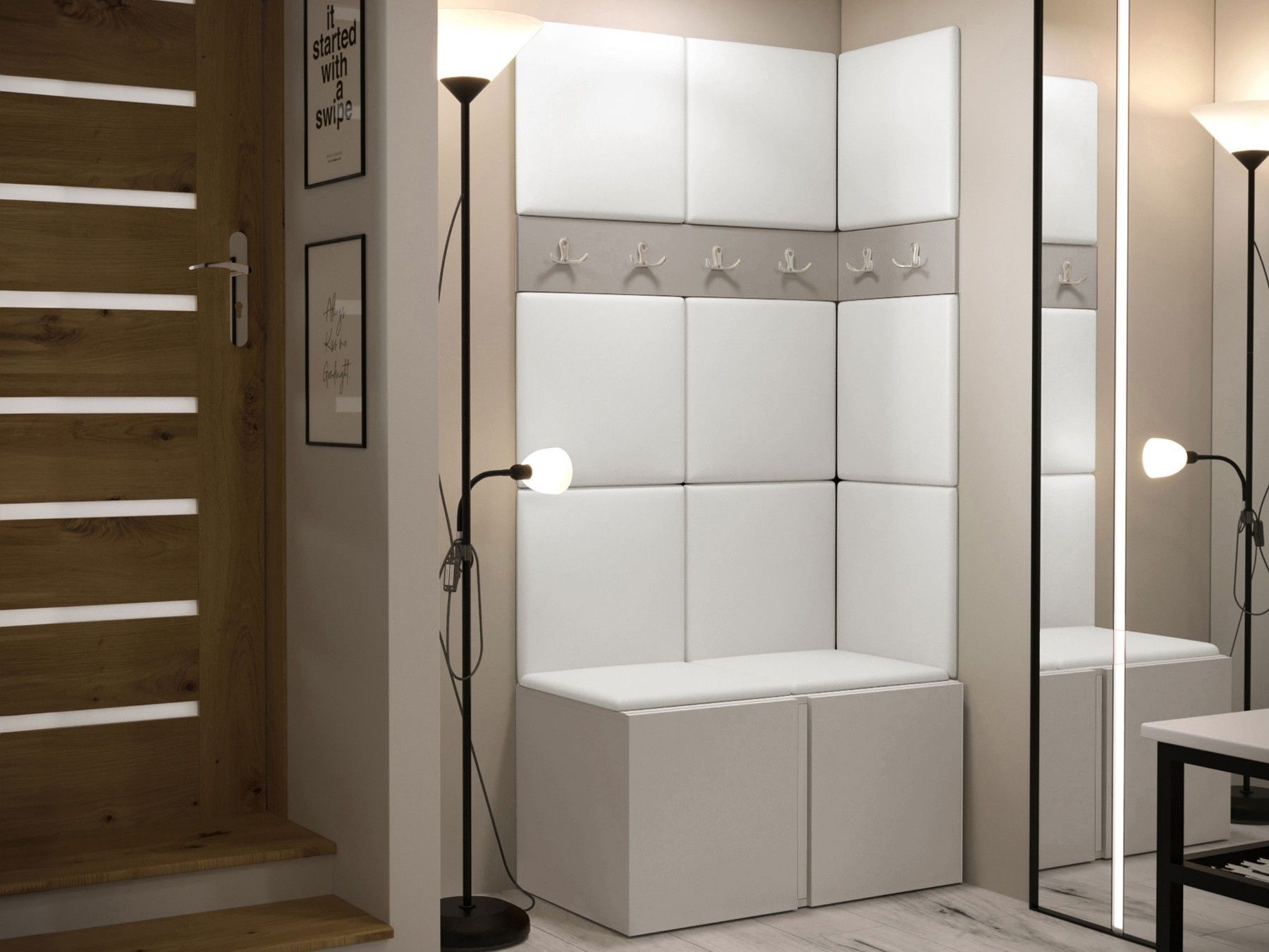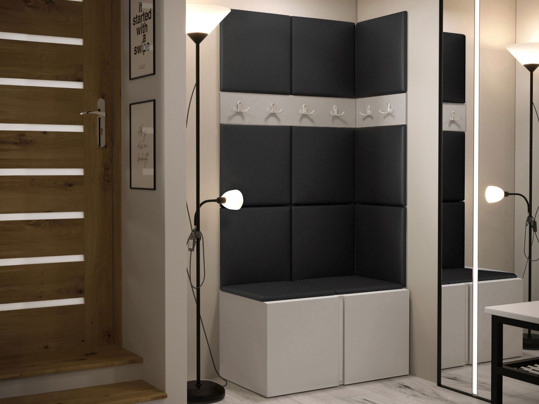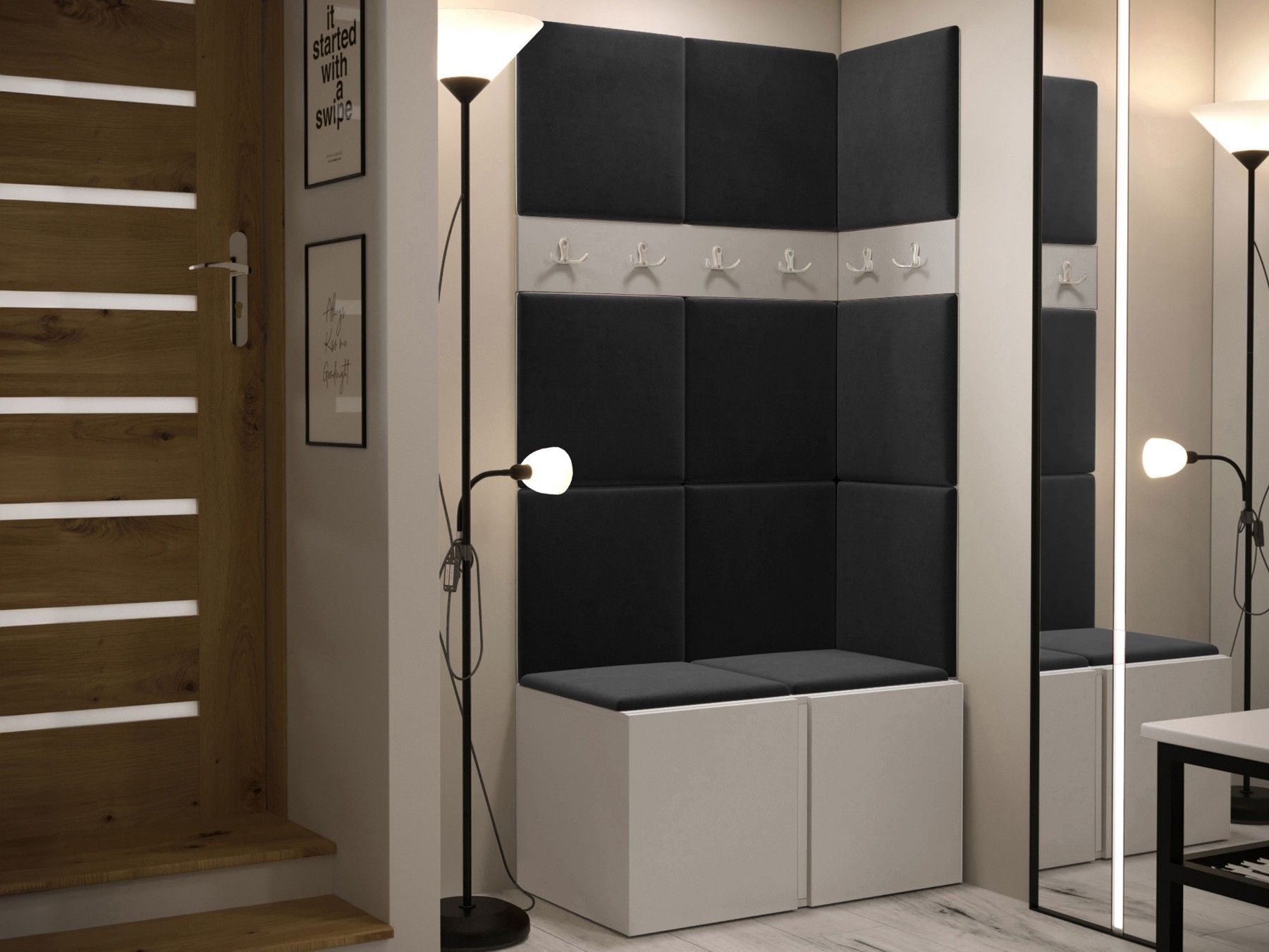 Garderoben-Set Easton I Sitzbank Garderobe mit 11x Wandpanel 42x42 Sitzbank M24