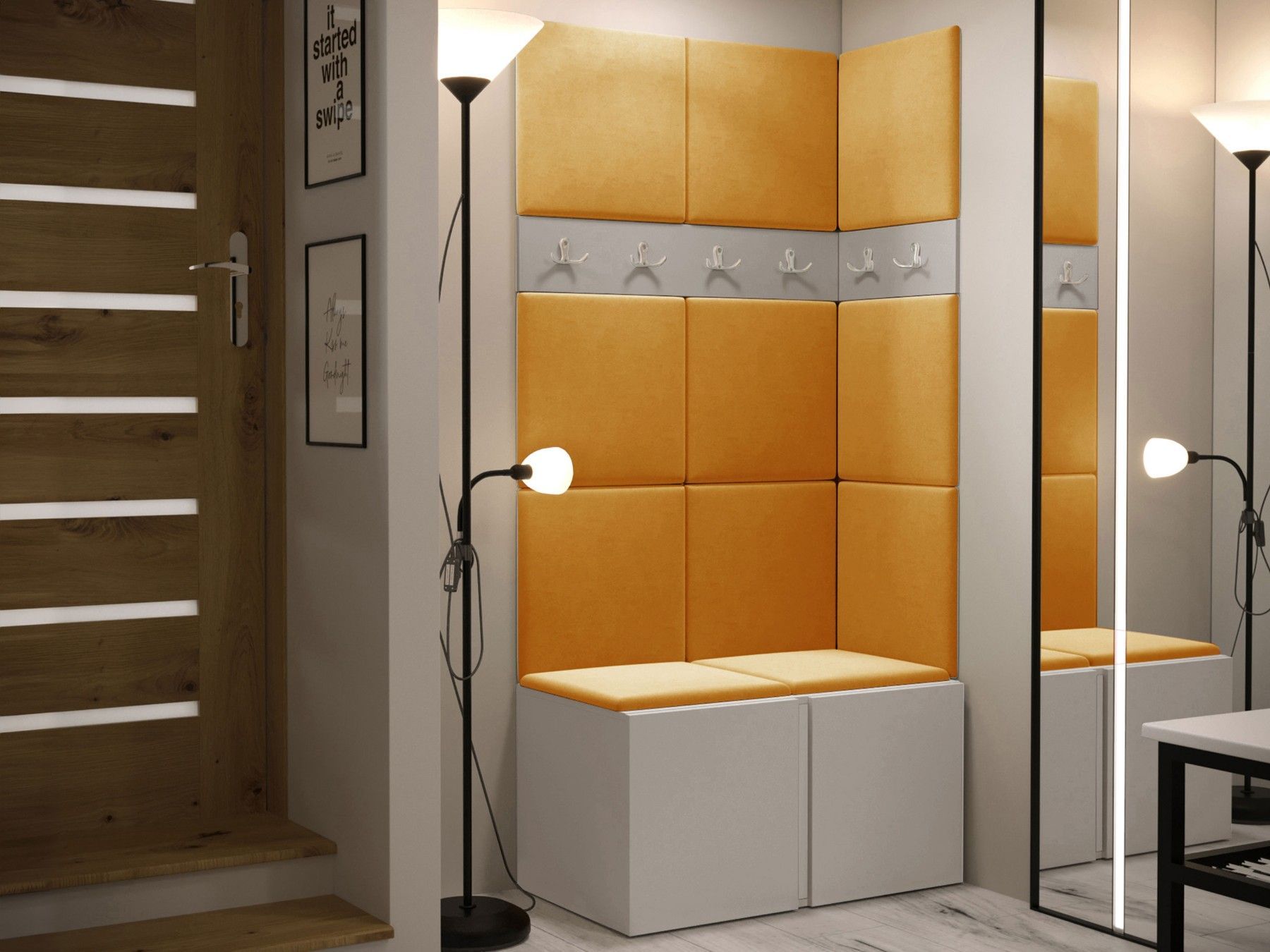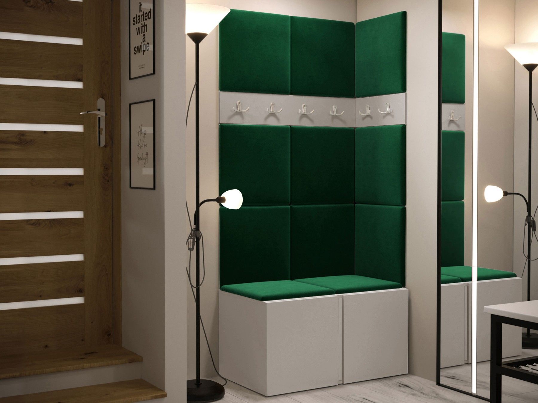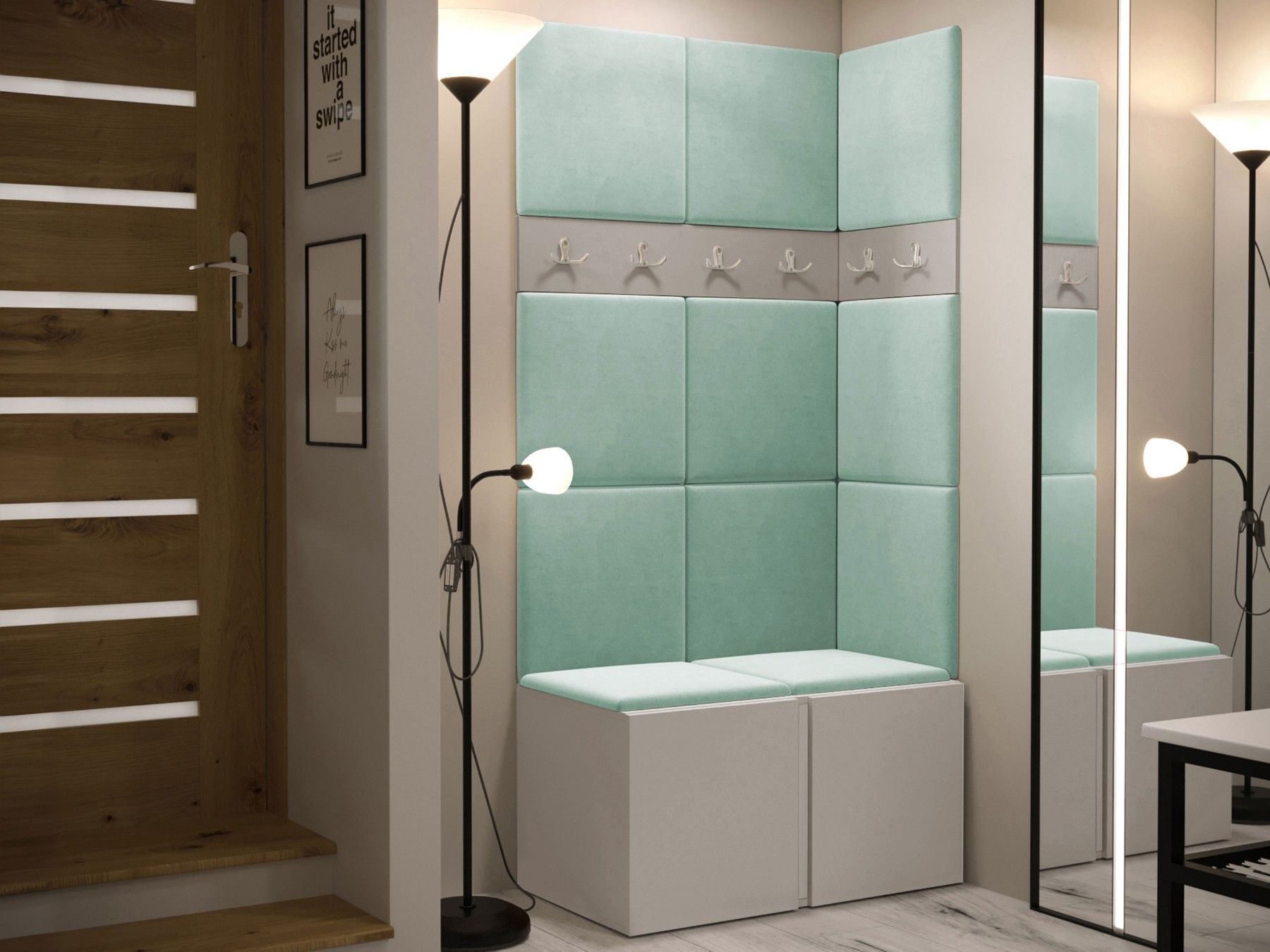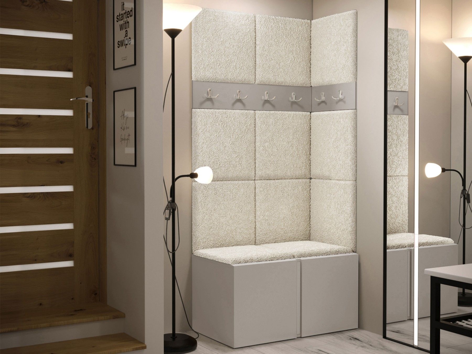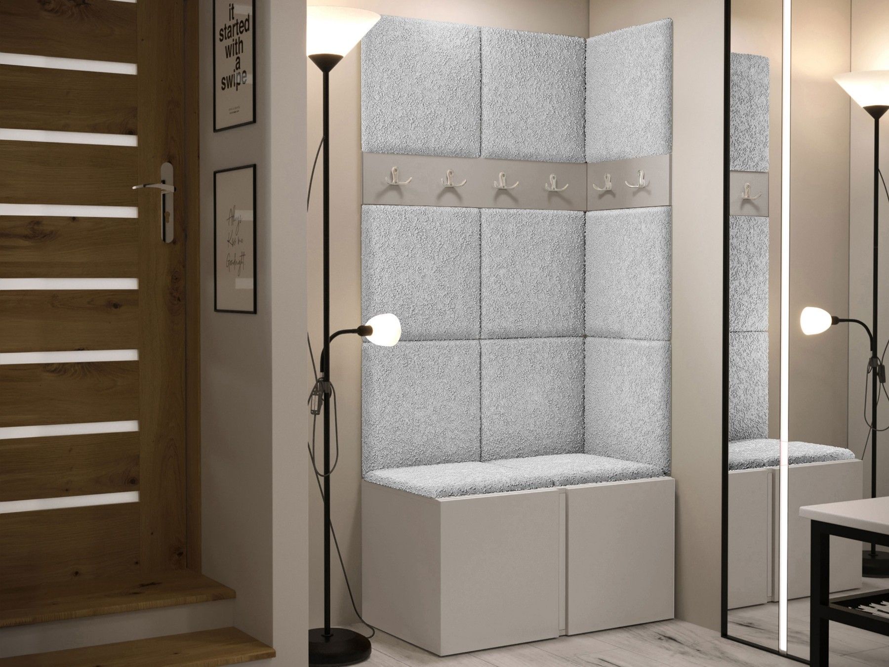 Garderoben-Set Easton I Sitzbank Garderobe mit 11x Wandpanel 42x42 Sitzbank M24