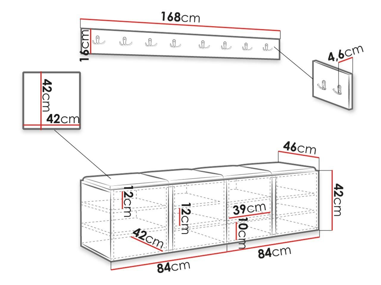 Garderoben-Set Easton VII Garderobe mit 4x Wandpanel 42x42 Stilvoll Sitzbank M24