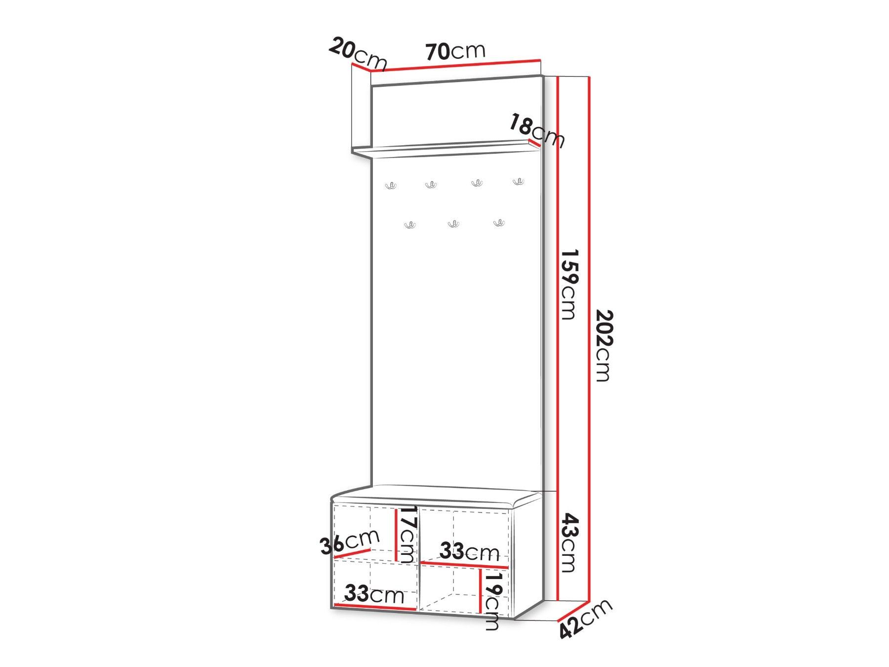 Garderoben-Set Kerkin Garderobe mit zwei Drehtüren mit Sitzbank M24