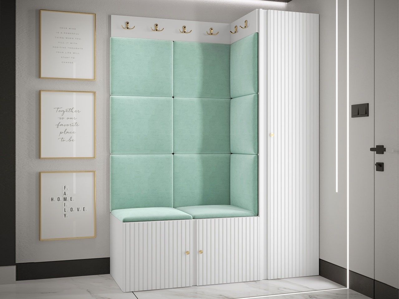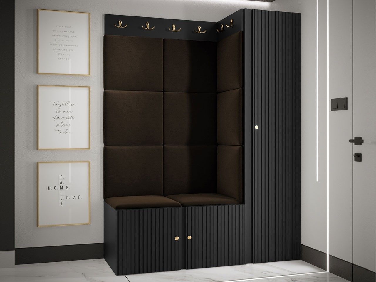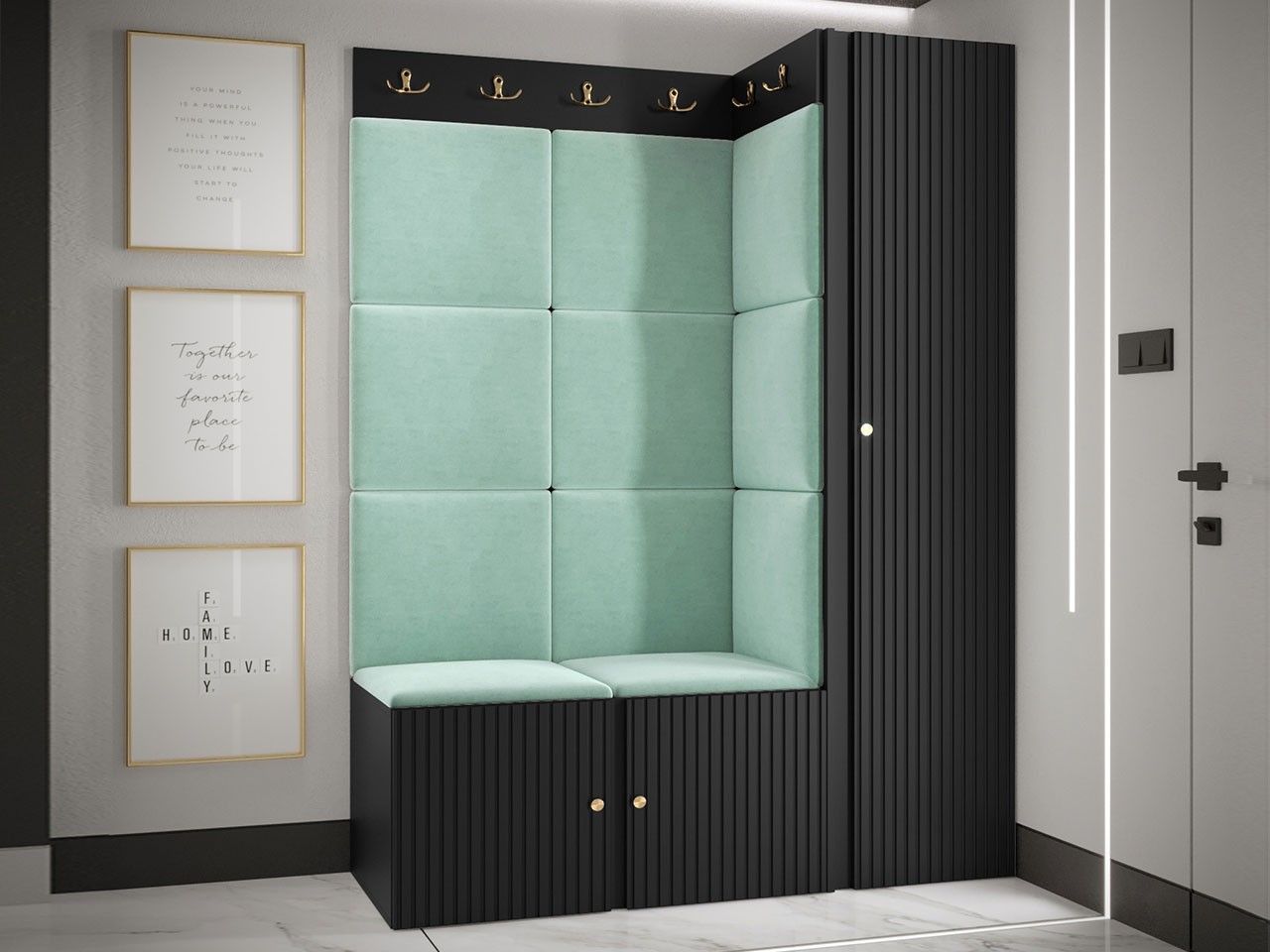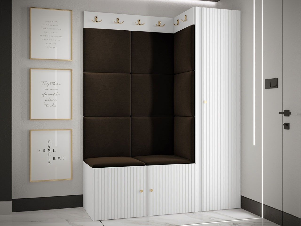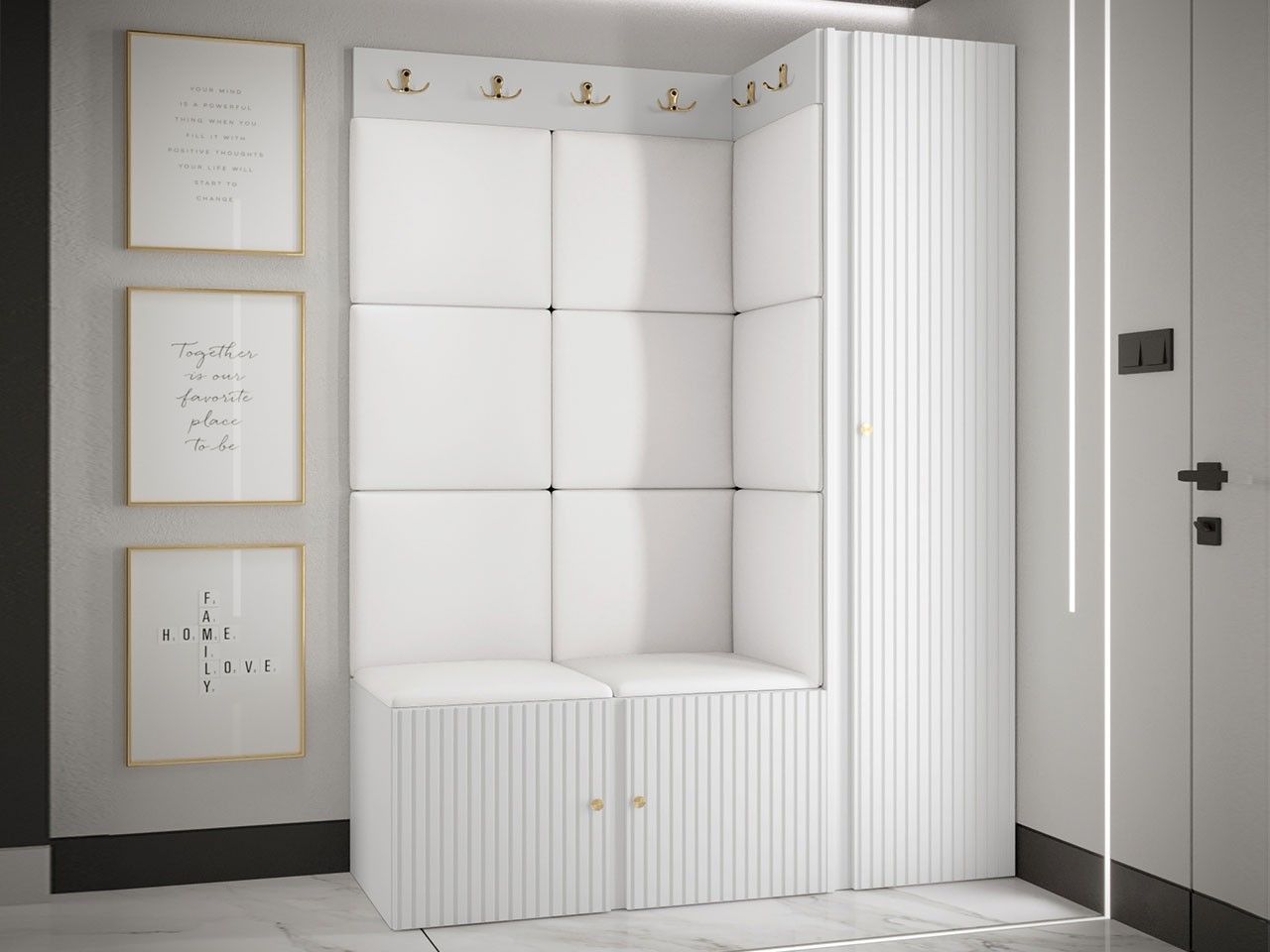 Garderoben-Set Lezuma IX Polsterpaneel 42x42 Haken Schrank mit Sitzbank Stilvoll M24