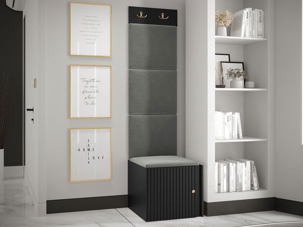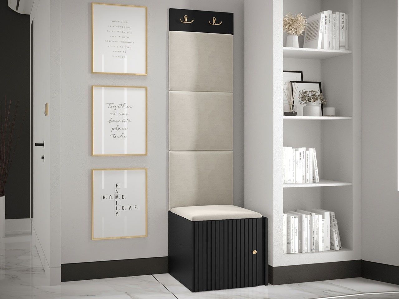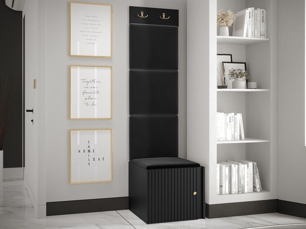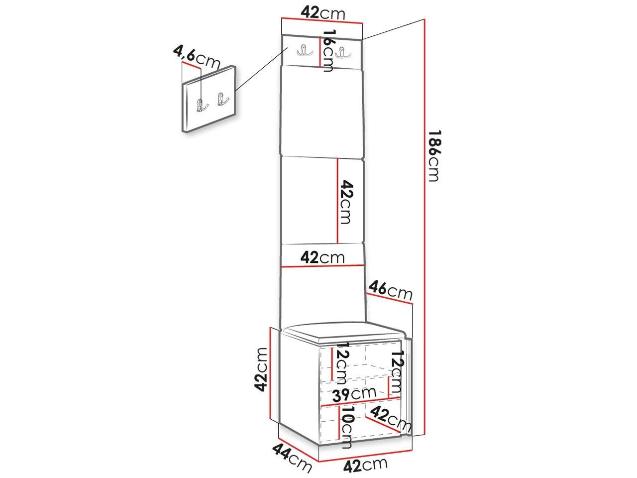 Garderoben-Set Lezuma XXII Polsterpaneel 42x42 Haken Schrank Sitzbank Stilvoll M24