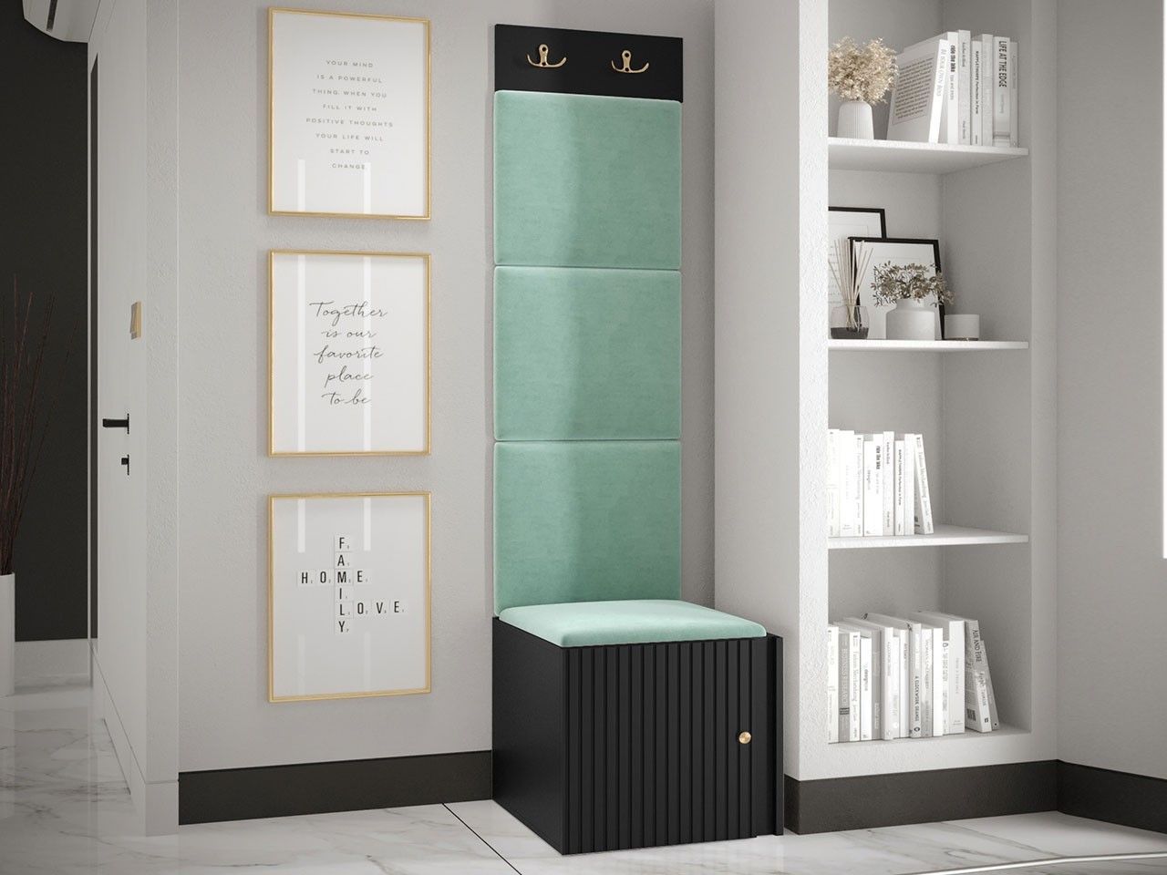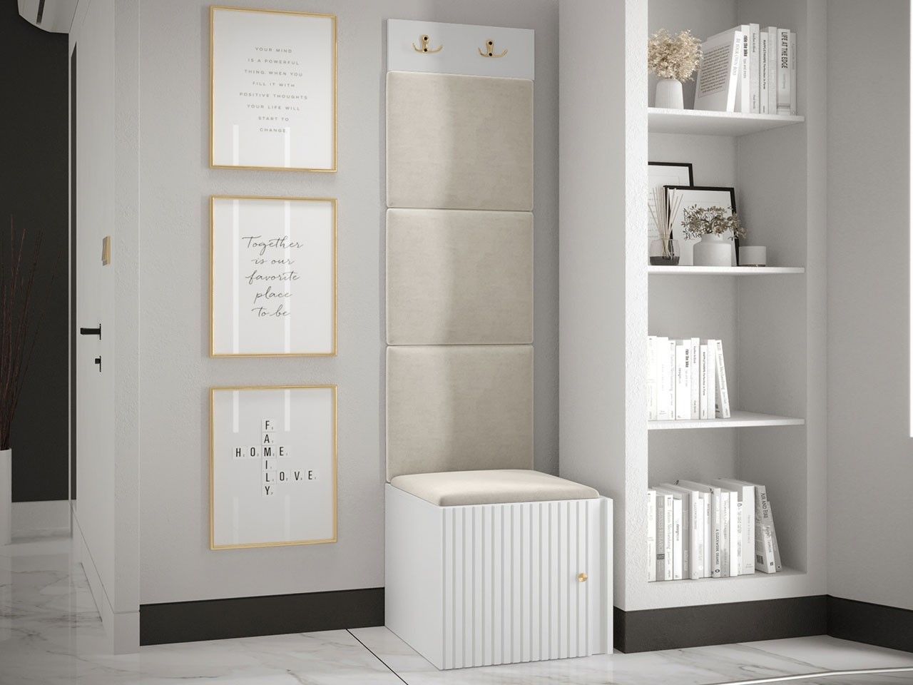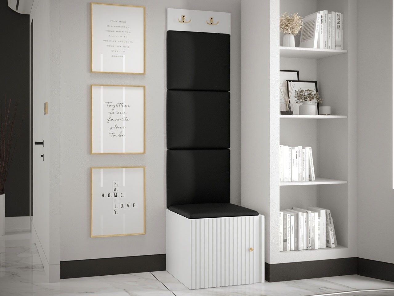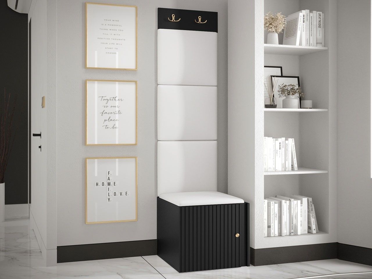 Garderoben-Set Lezuma XXII Polsterpaneel 42x42 Haken Schrank Sitzbank Stilvoll M24