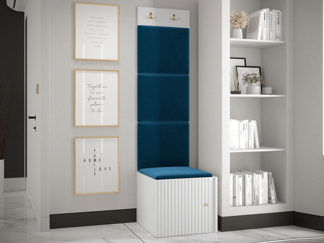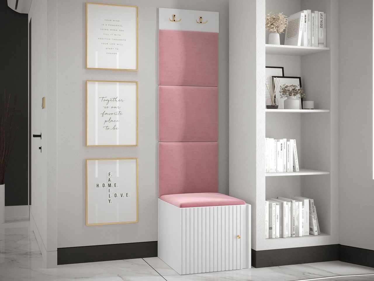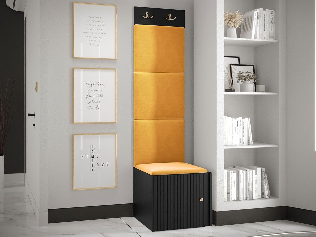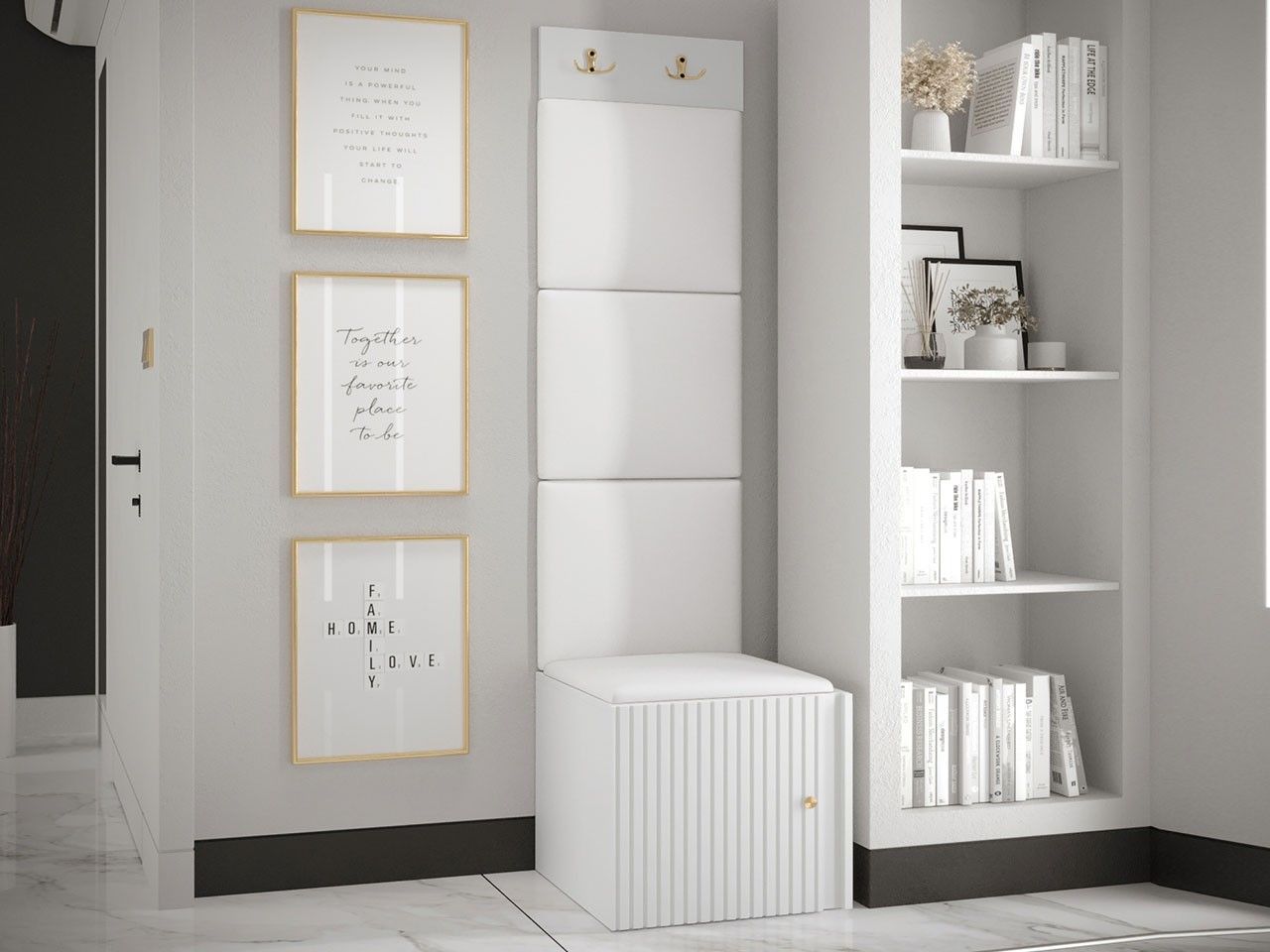 Garderoben-Set Lezuma XXII Polsterpaneel 42x42 Haken Schrank Sitzbank Stilvoll M24