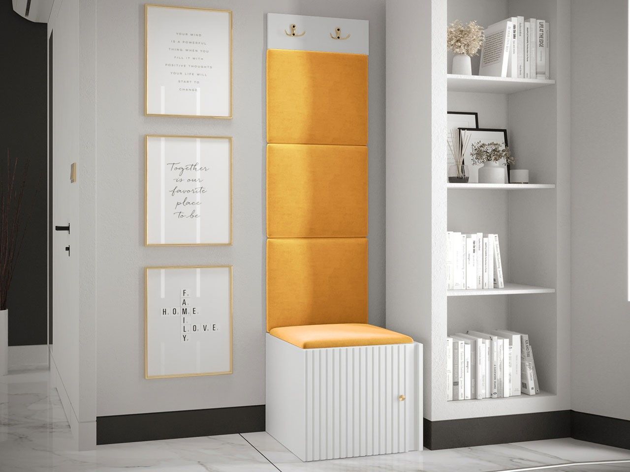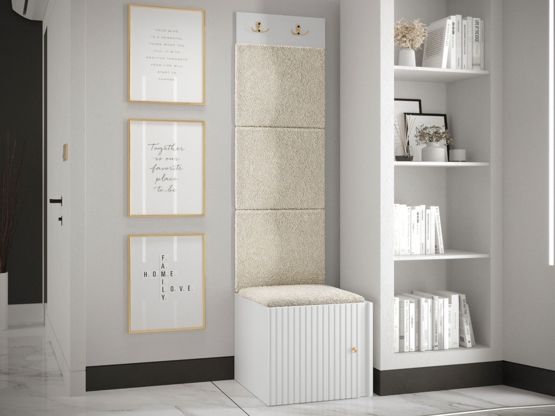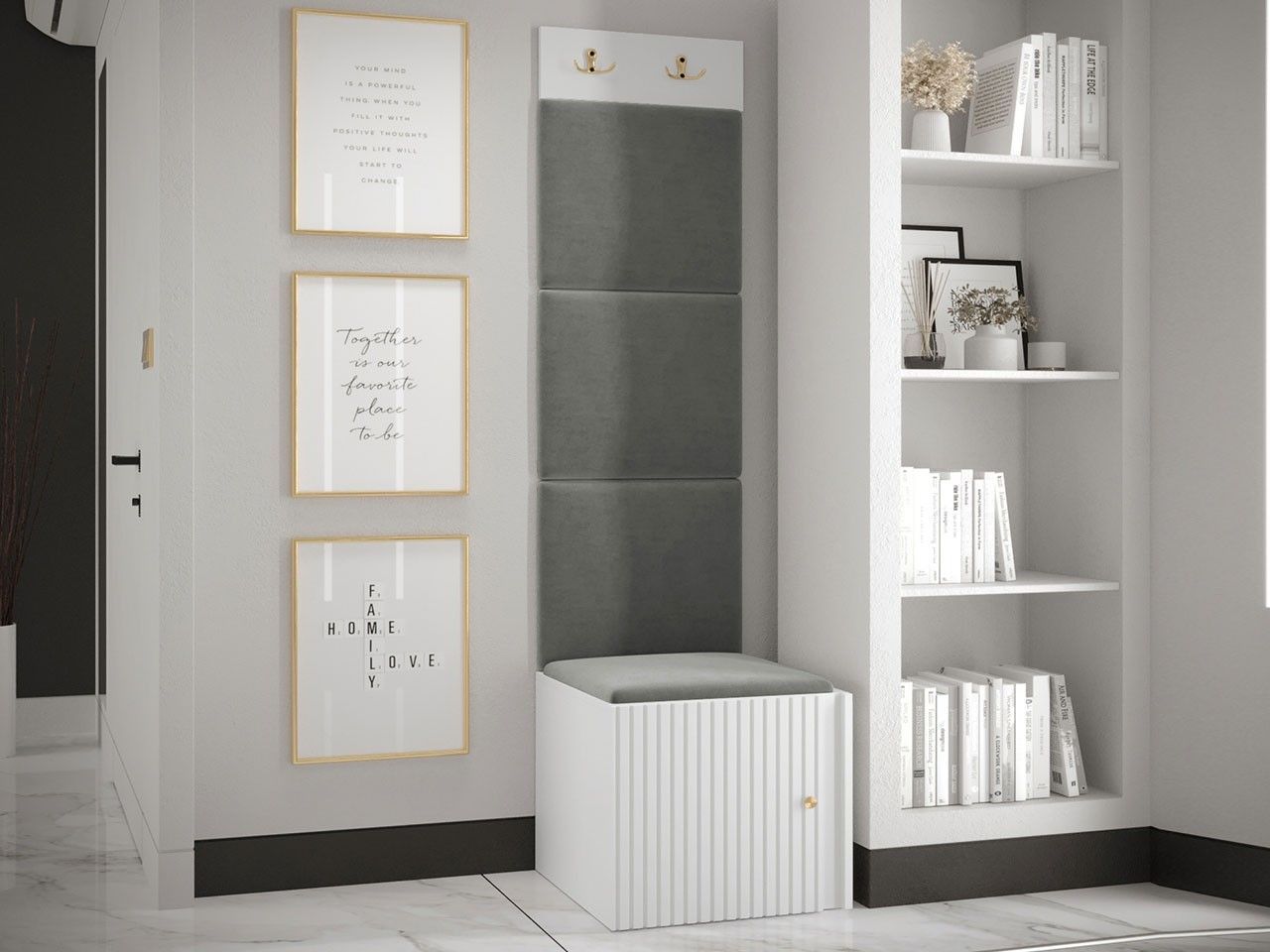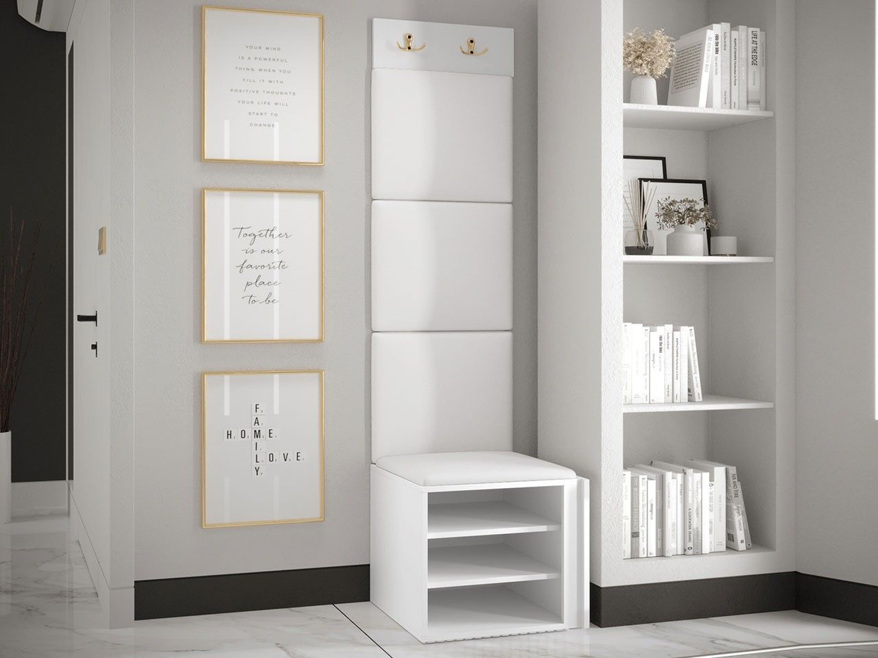 Garderoben-Set Lezuma XXII Polsterpaneel 42x42 Haken Schrank Sitzbank Stilvoll M24