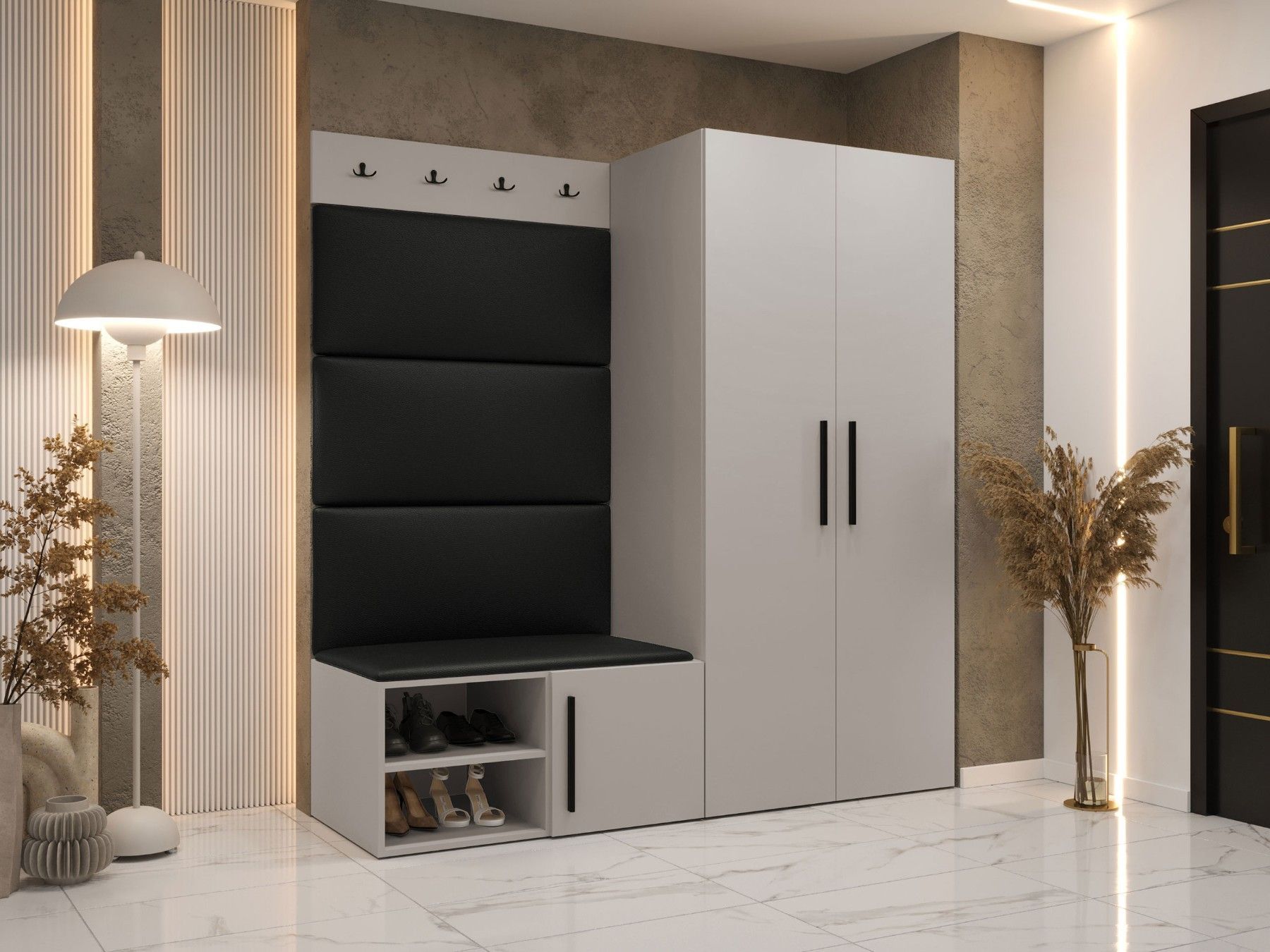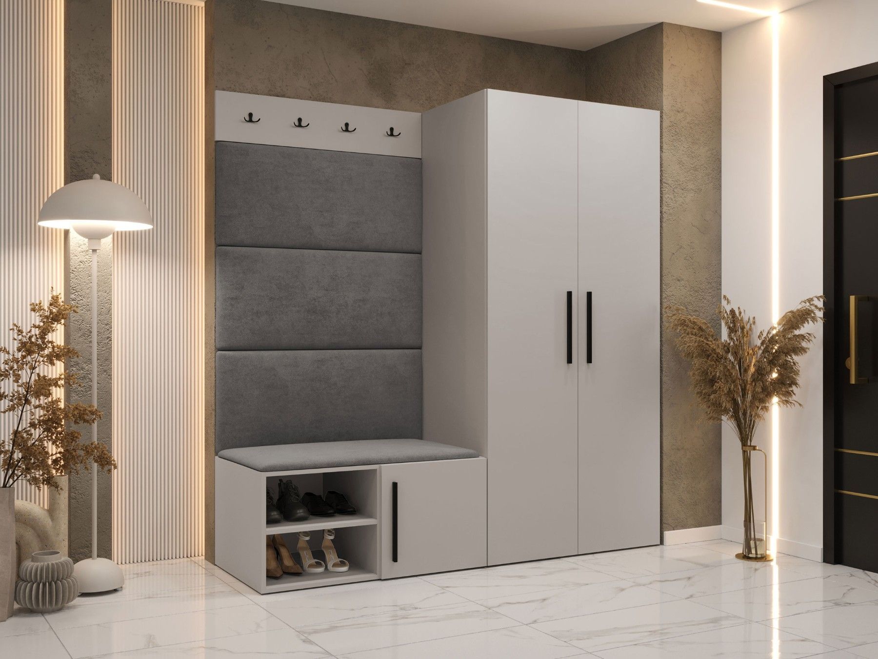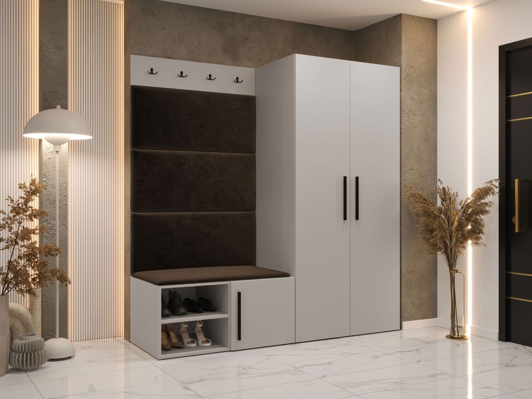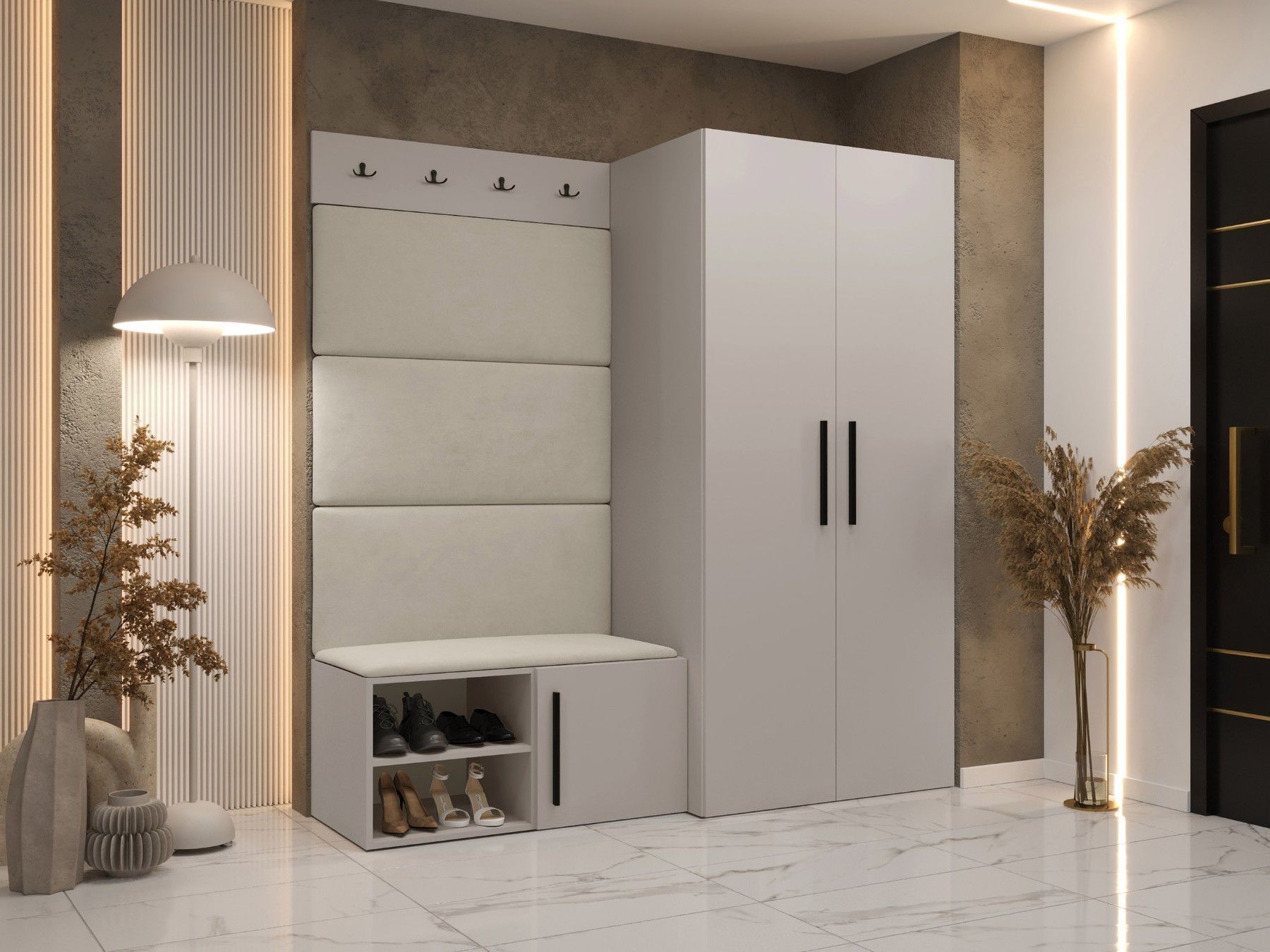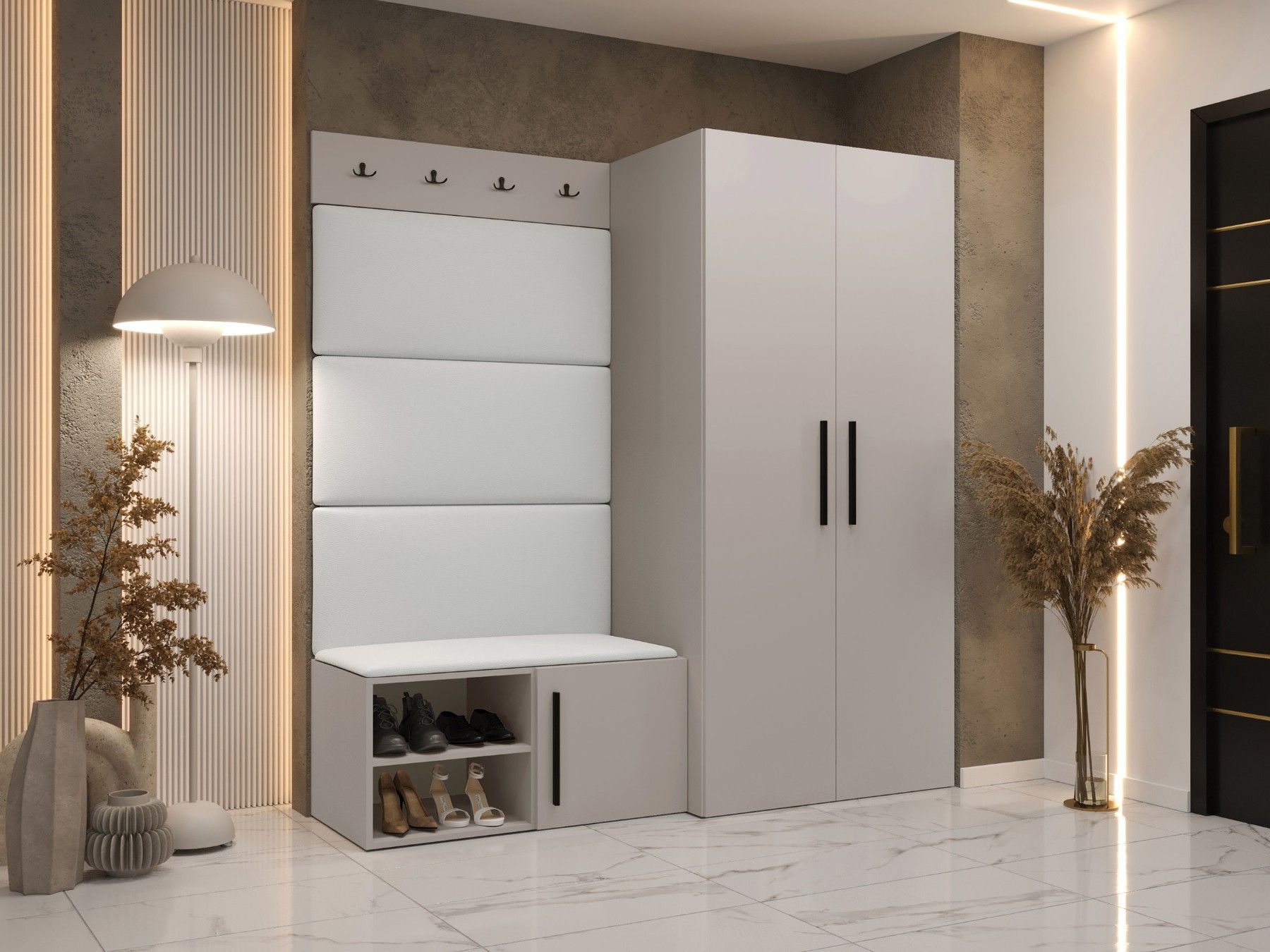 Garderoben-Set Medi I Polsterpaneel 84x42 Haken Schrank mit Sitzbank Stilvoll M24