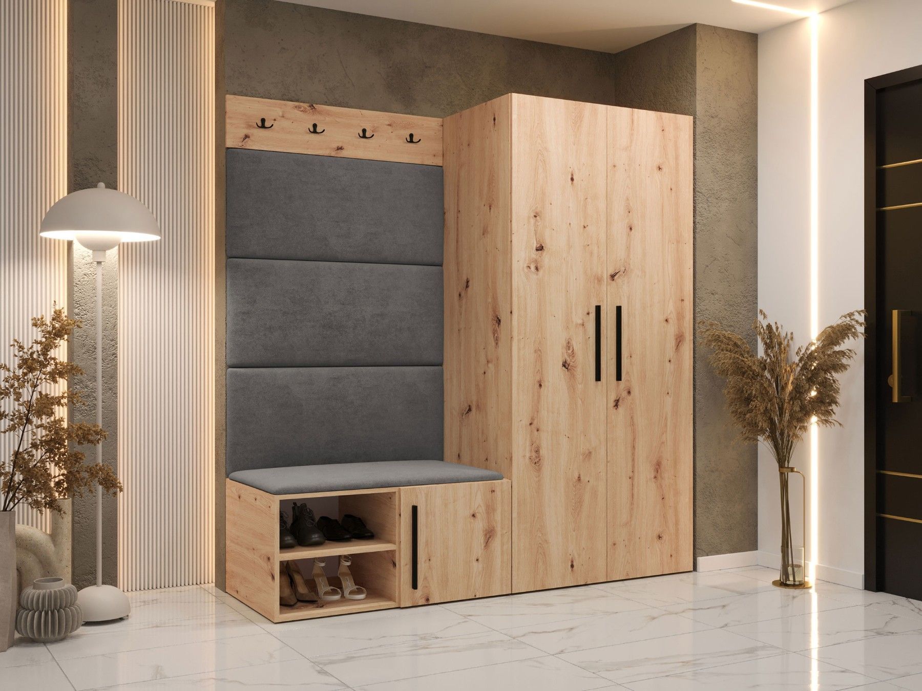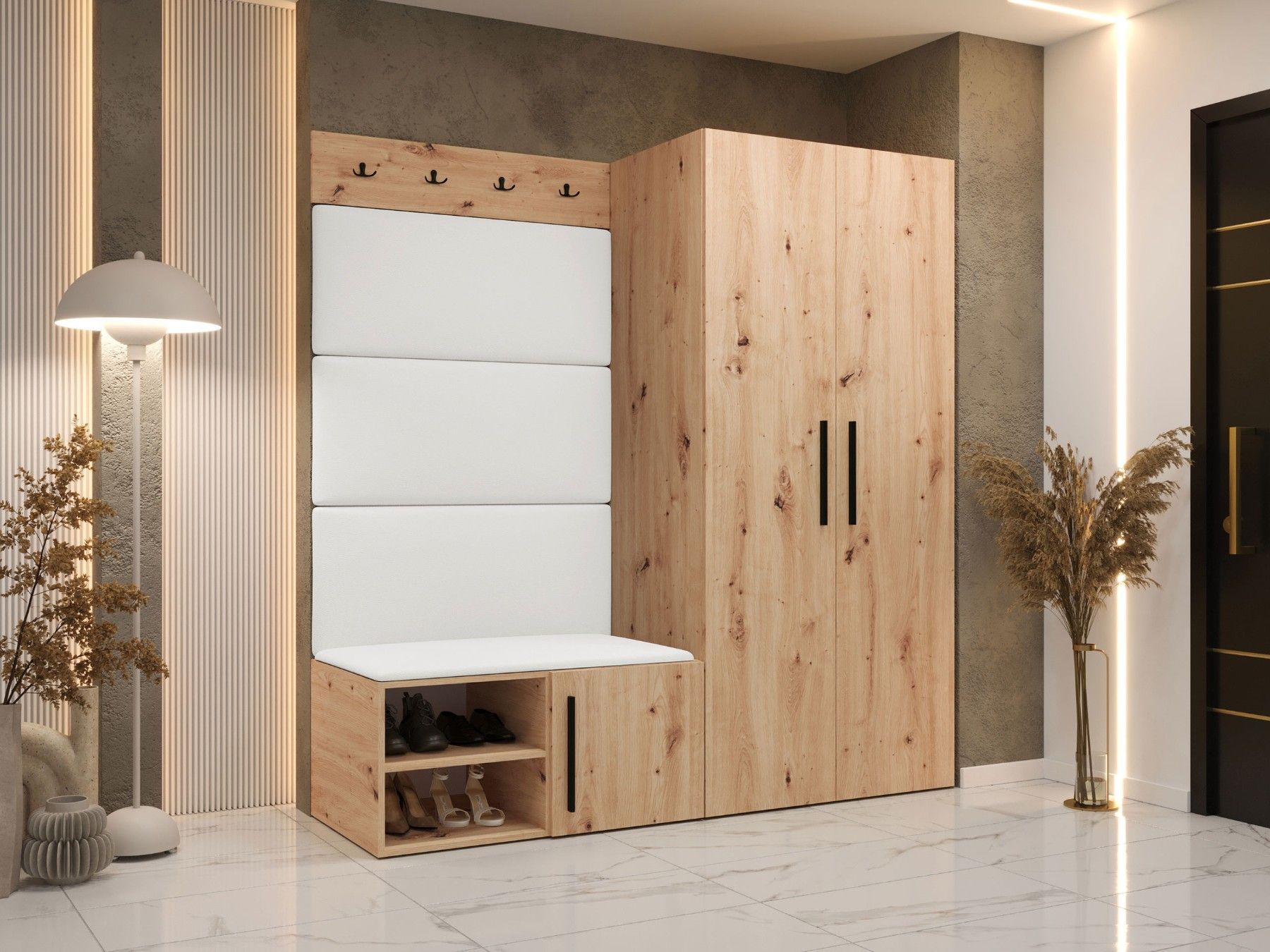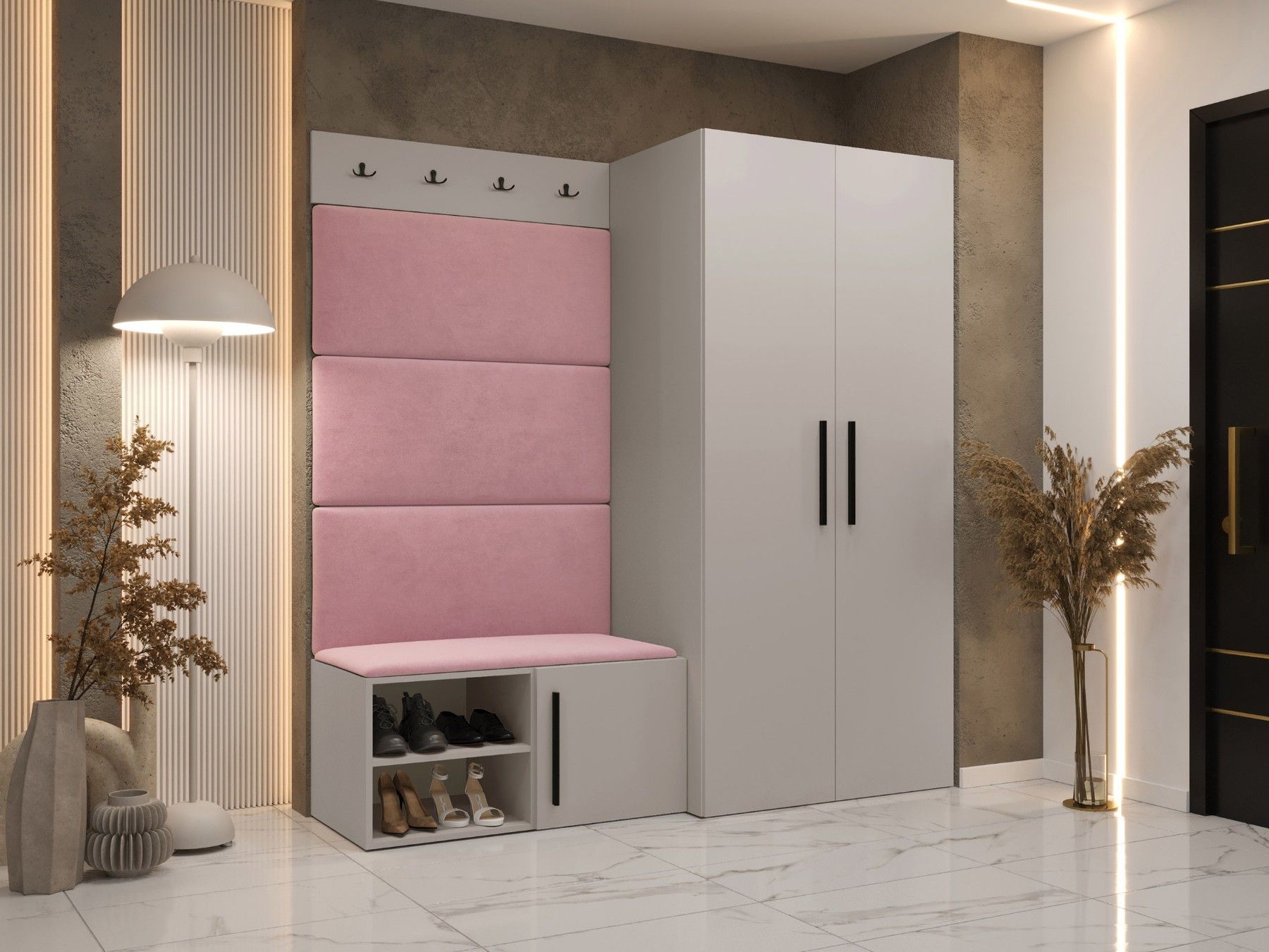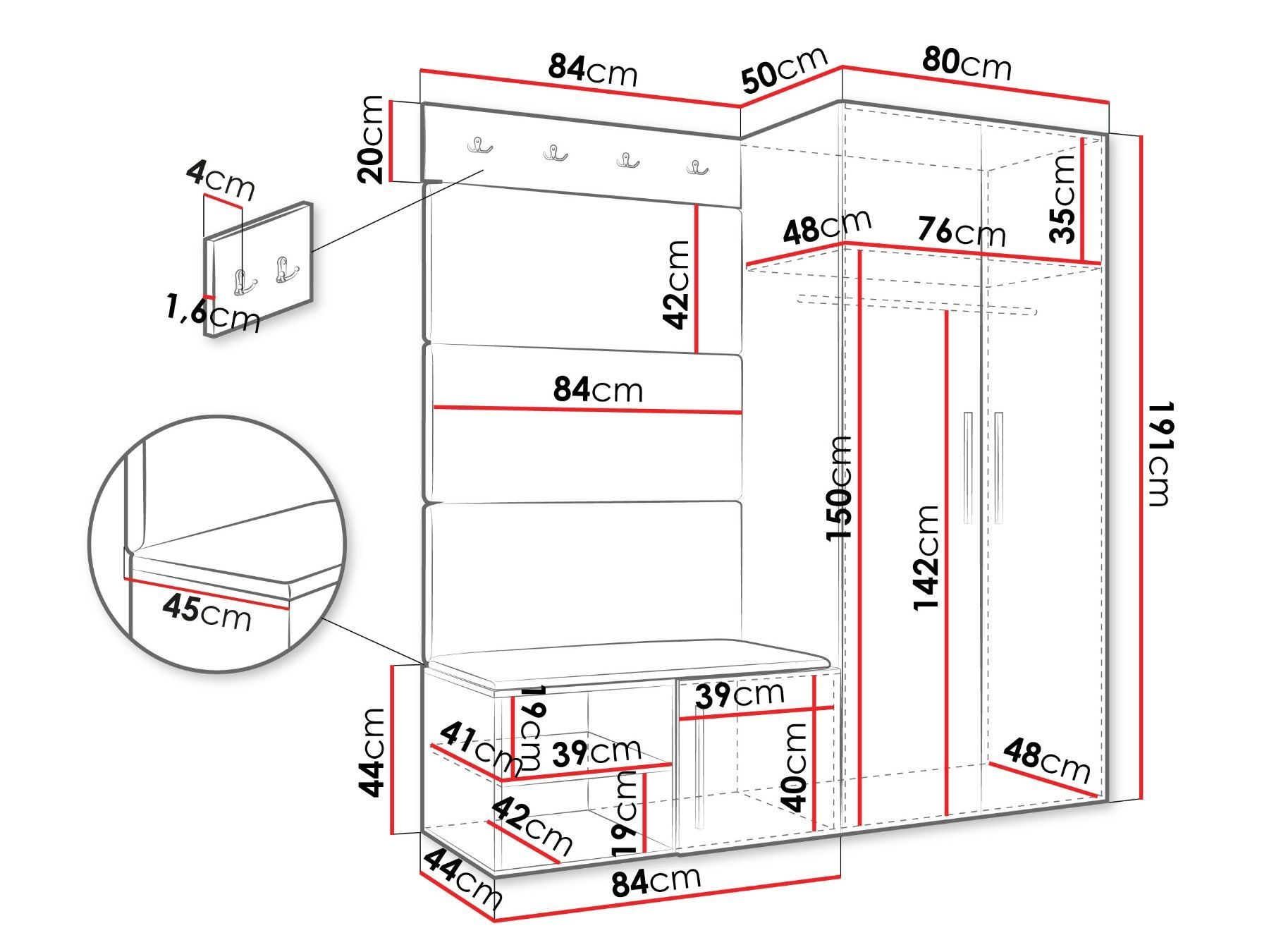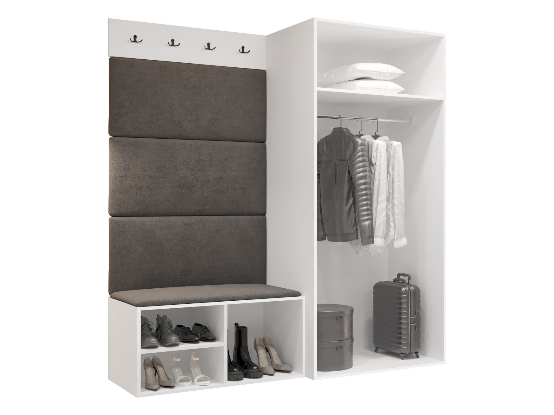 Garderoben-Set Medi I Polsterpaneel 84x42 Haken Schrank mit Sitzbank Stilvoll M24