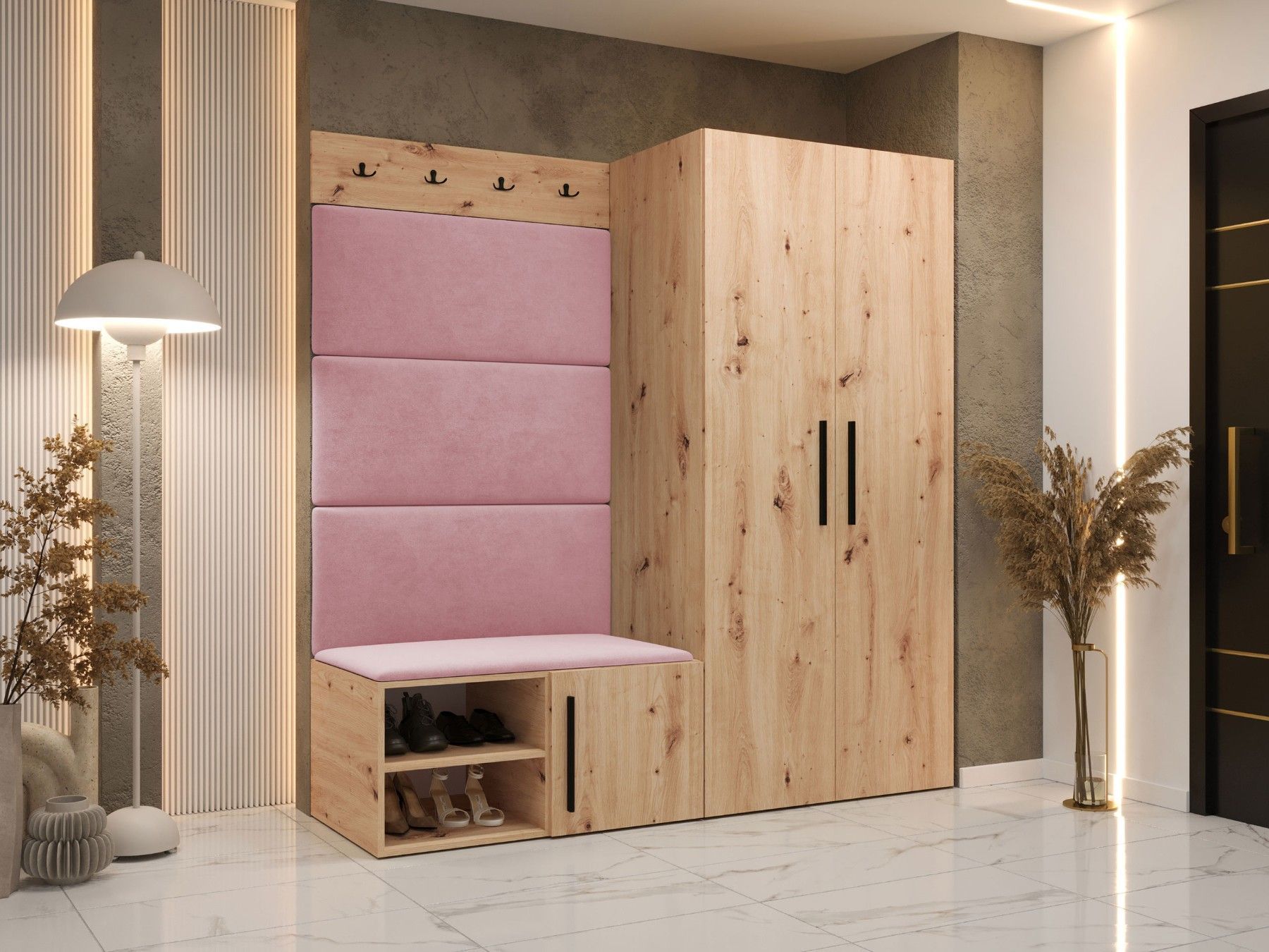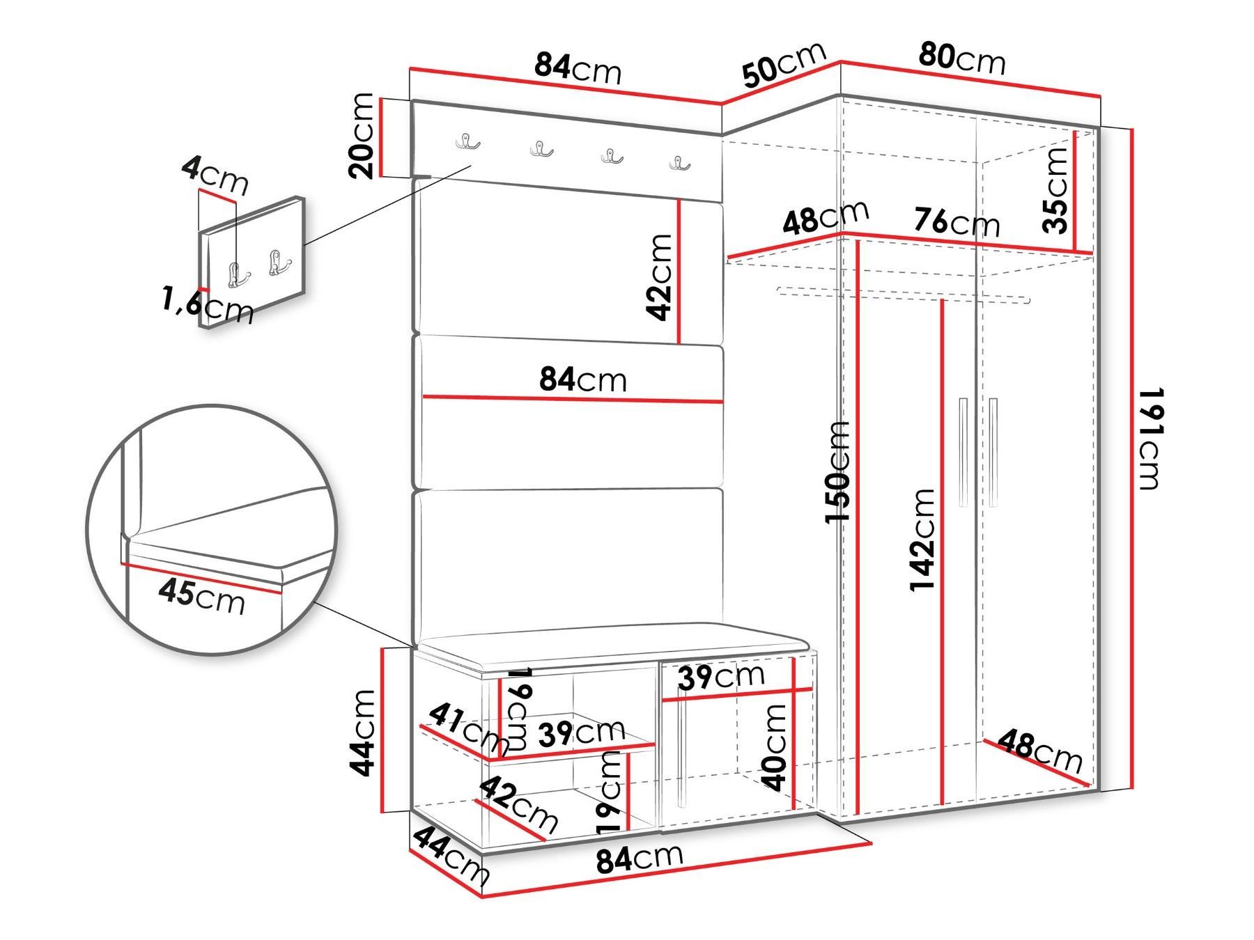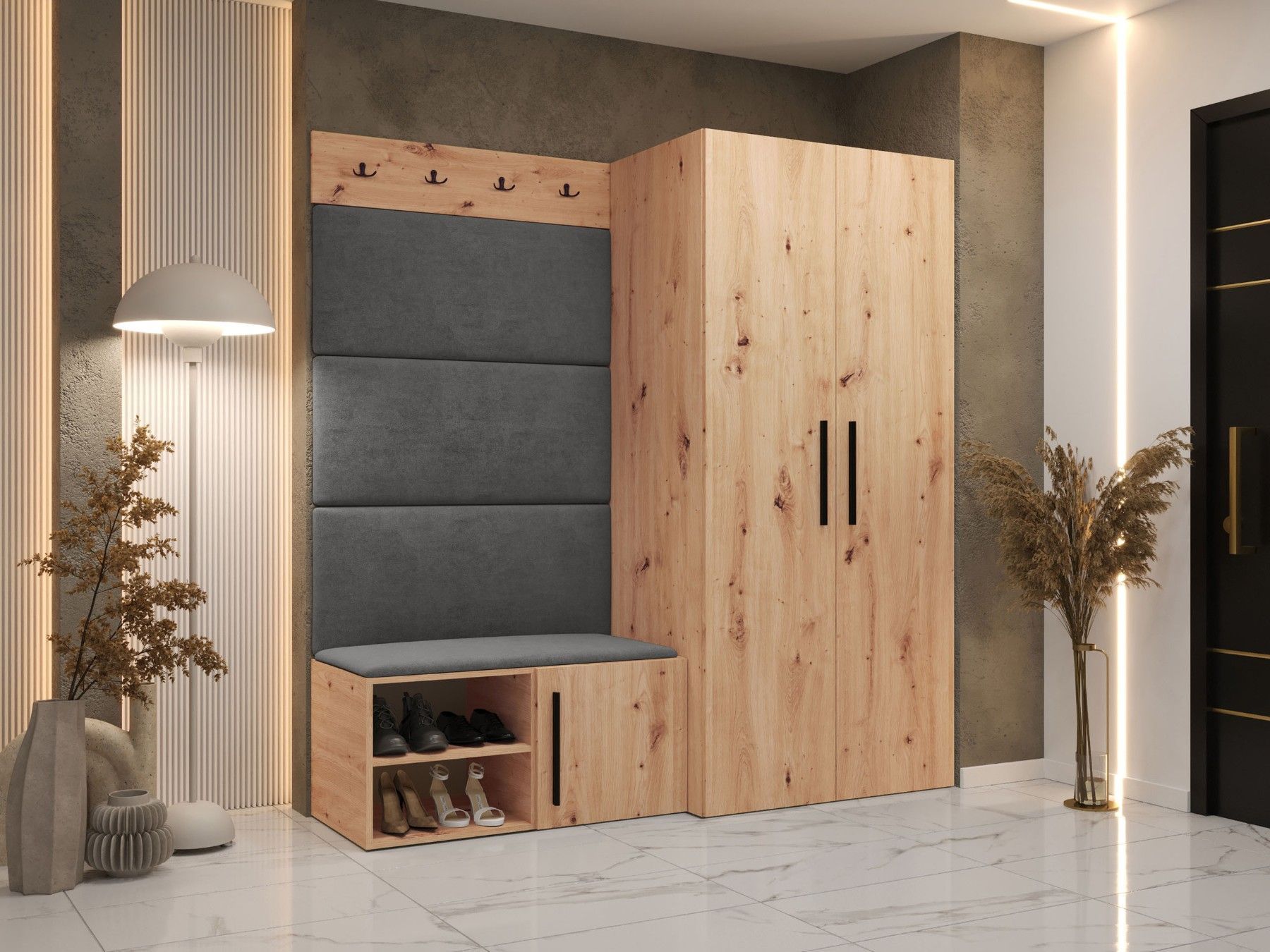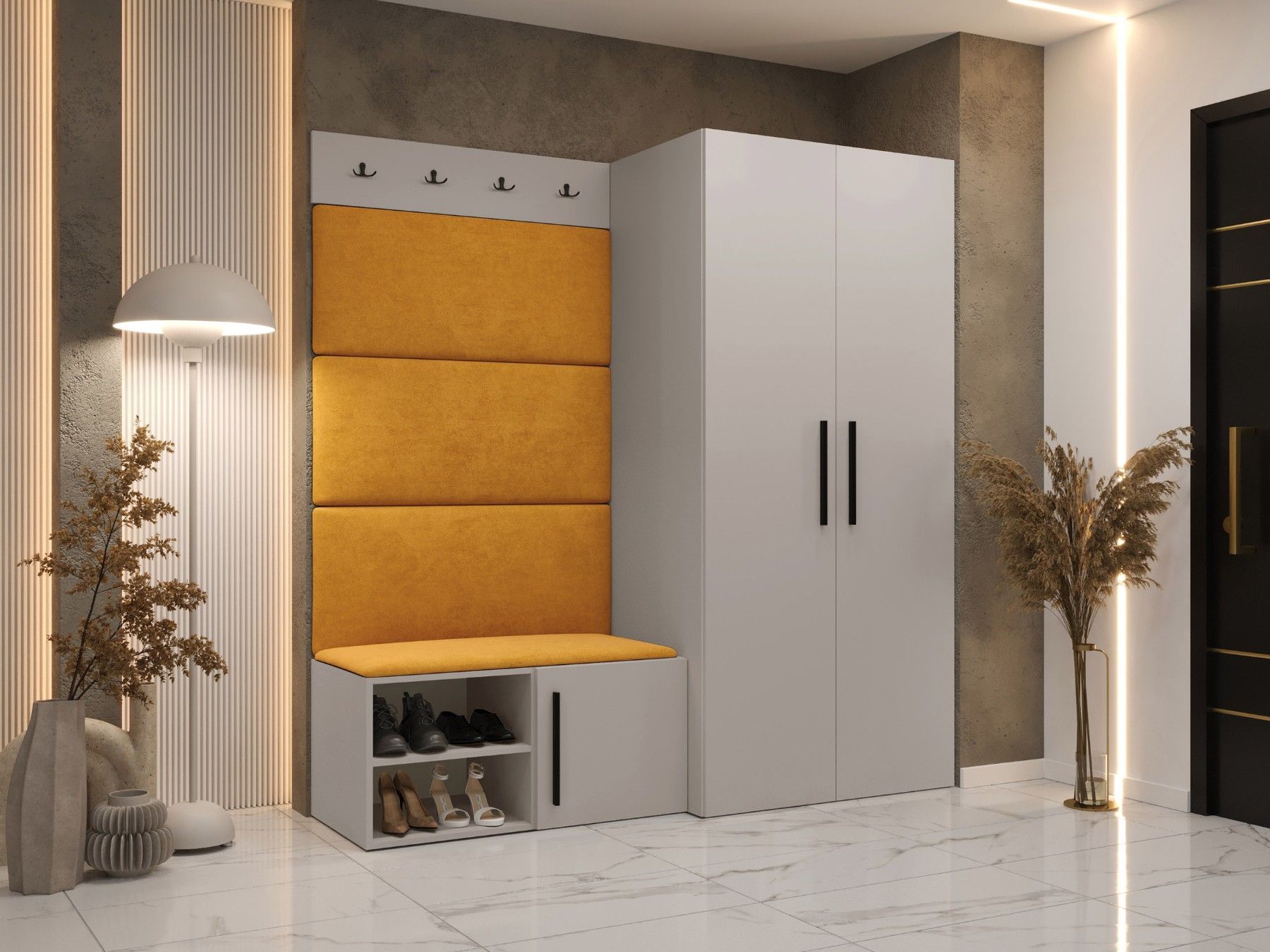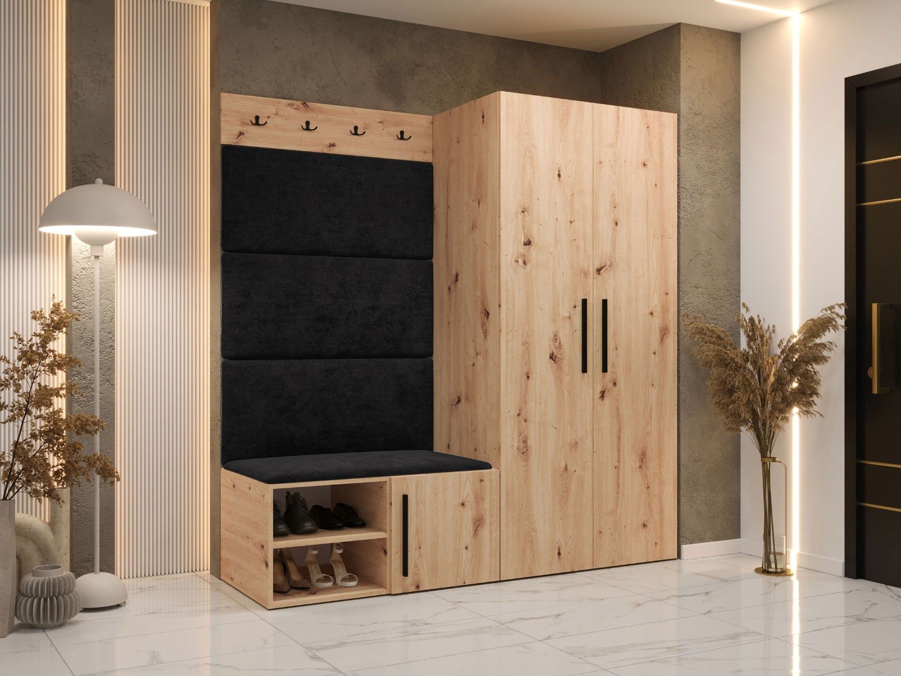 Garderoben-Set Medi I Polsterpaneel 84x42 Haken Schrank mit Sitzbank Stilvoll M24