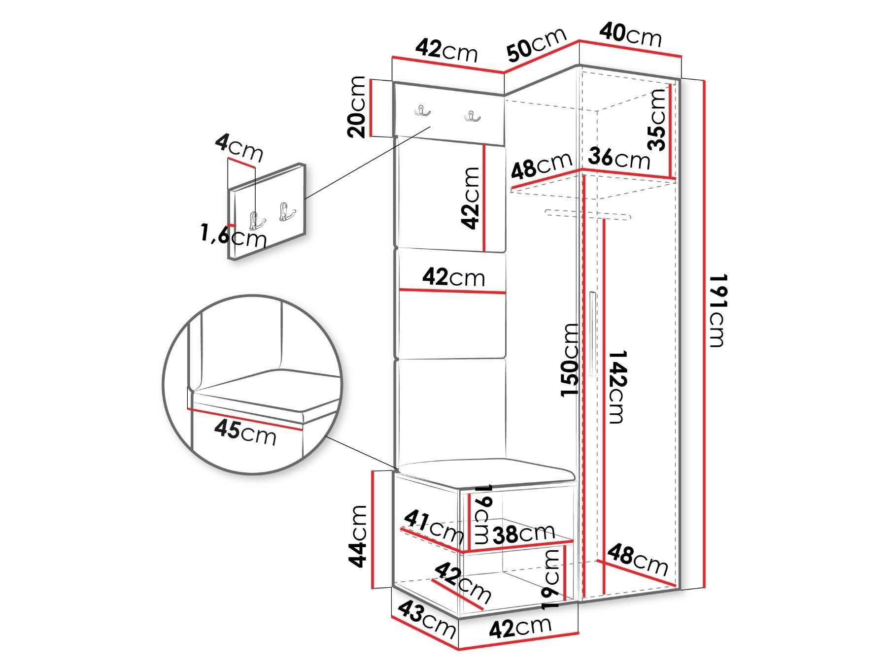 Garderoben-Set Medi III Polsterpaneel 42x42 Haken Schrank mit Sitzbank Stilvoll M24