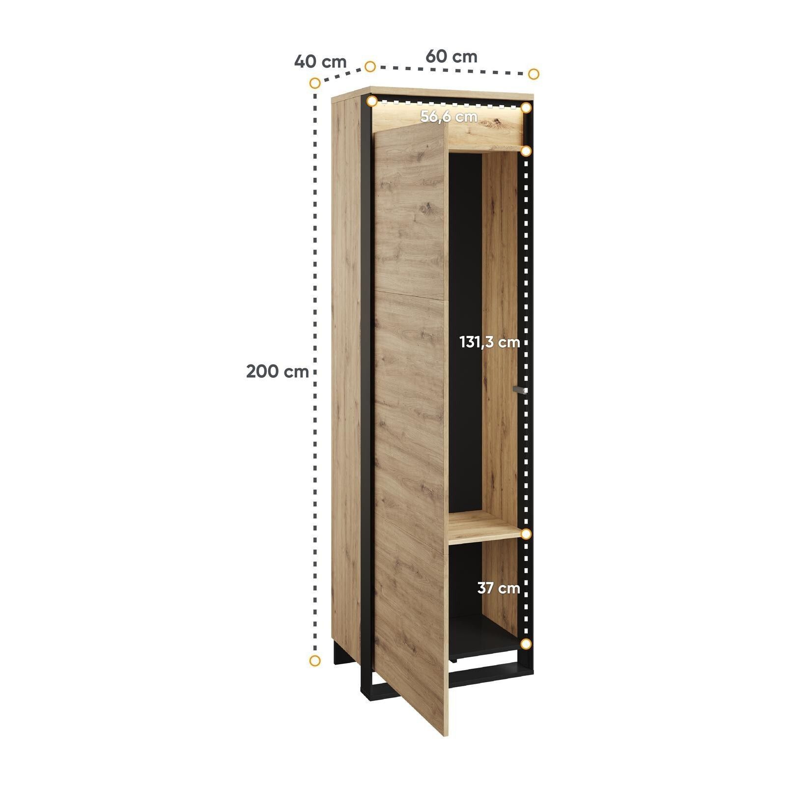 Garderoben-Set QUANT-3 Kleiderschrank Sitzbank Spiegel Wandgarderobe Die QUANT Möbelkollektion ist eine moderne, elegante Serie, die einen interessanten Loft-Stil mit hoher Funktionalität vereint. Mit zeitlosen Farben - Holz und klassischem Schwarz behalten die Möbel ihren einzigartigen Charakter, u