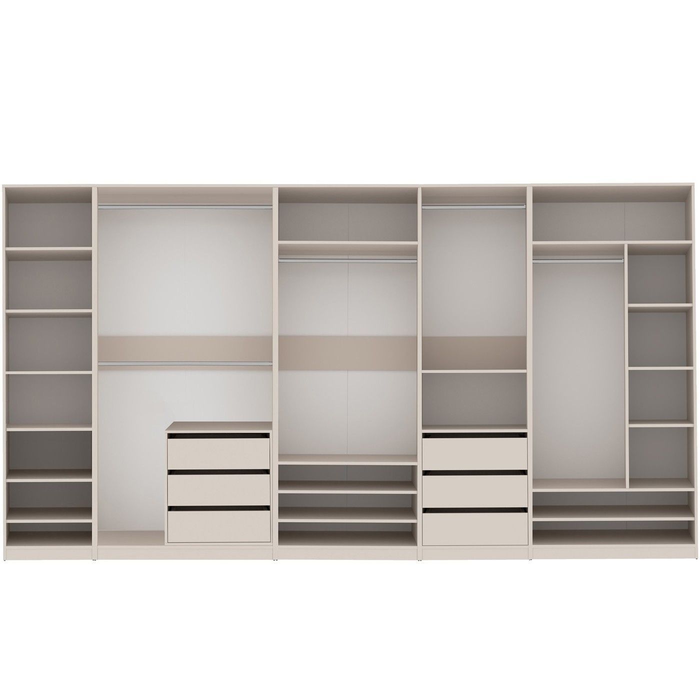 Garderoben-Set TRES R/C offener Kleiderschrank mit 5 Kleiderstangen 6 Schubladen