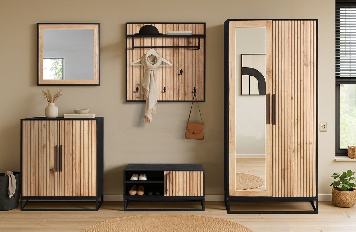 Garderobenbank 88x45cm 'Namibia' Eiche & Mango schwarz