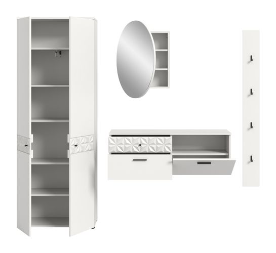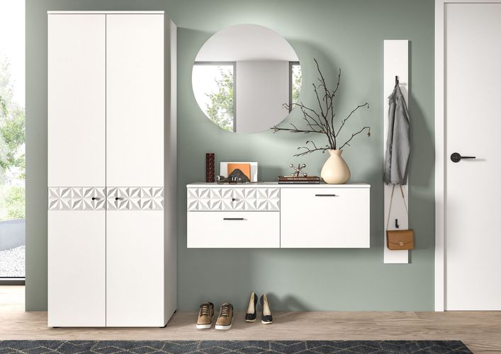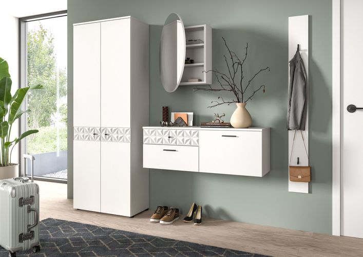 Garderobenkombination (B/H/T 226x192x34 cm) in weiß NB und Hochglanz absetzungen
