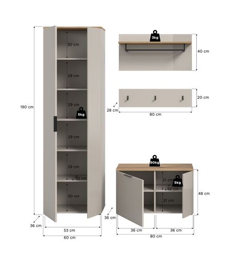 Garderobenkombination in Kaschmir Nachbildung und Kaschmir Nachbildung