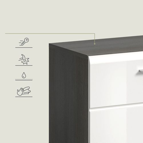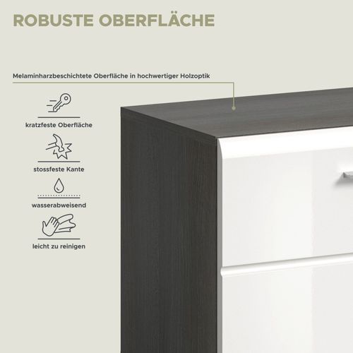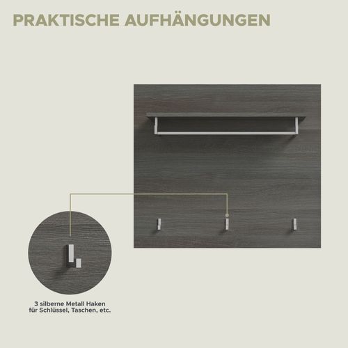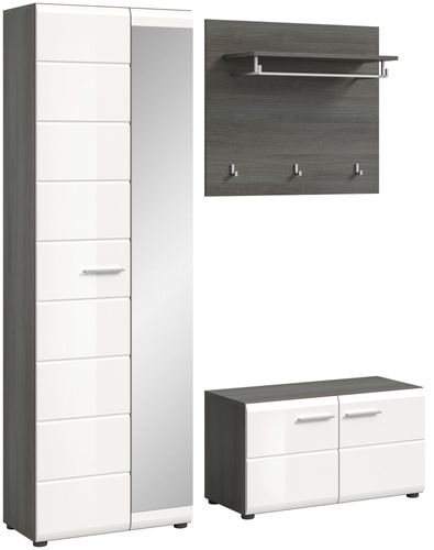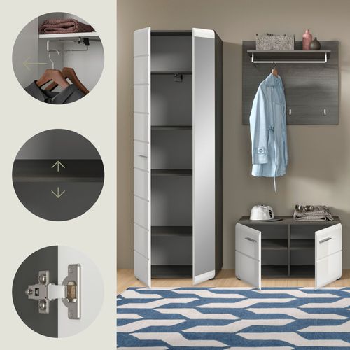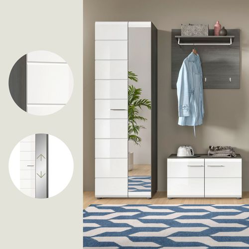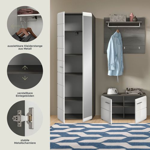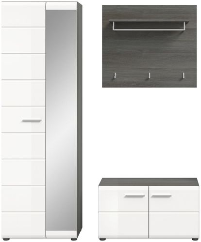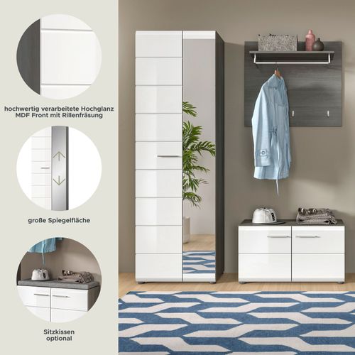 Garderobenkombination in Rauchsilber Nachbildung und weiß Hochglanz tiefzieh