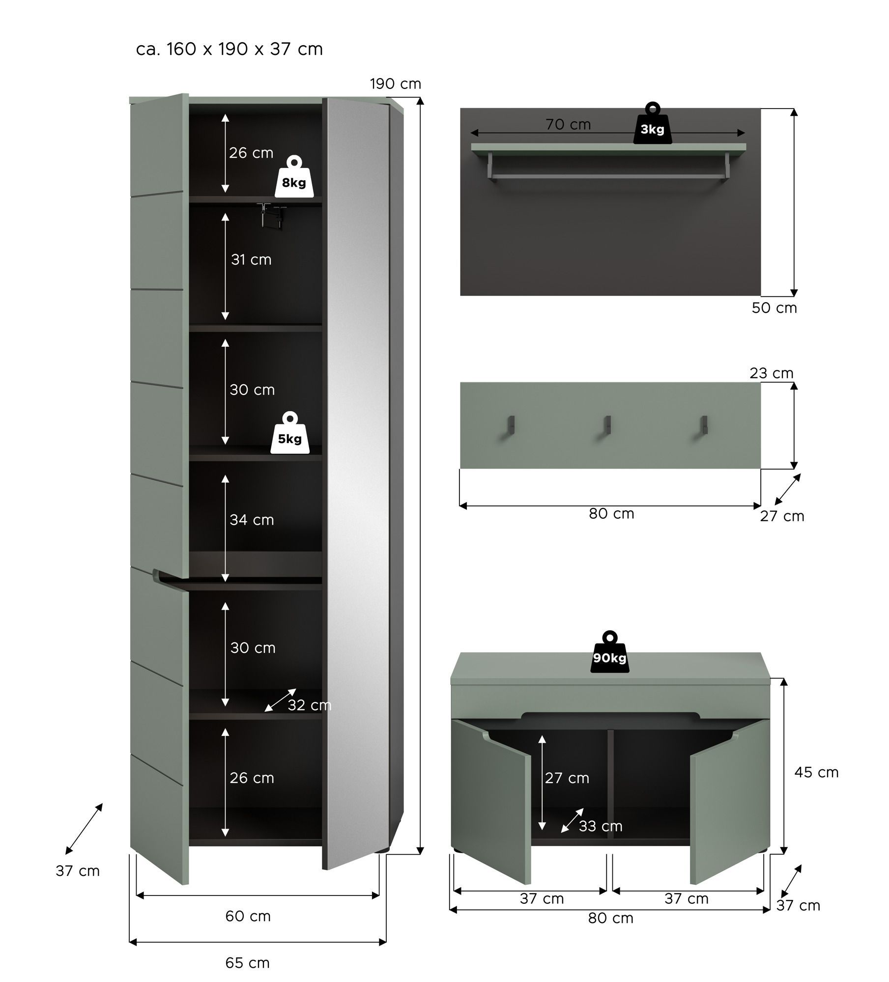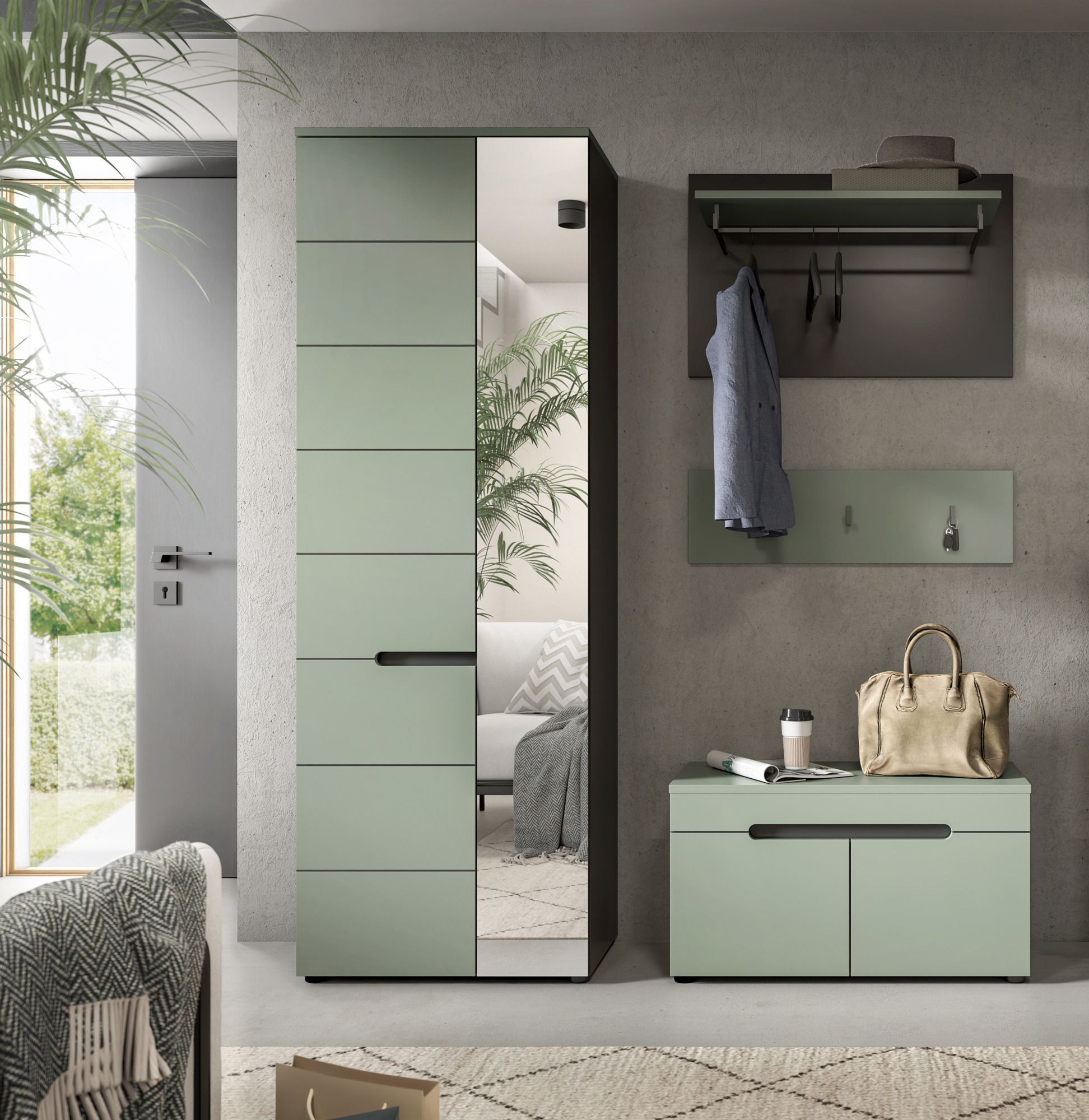 Garderobenkombination in Smoke Green Nachbildung