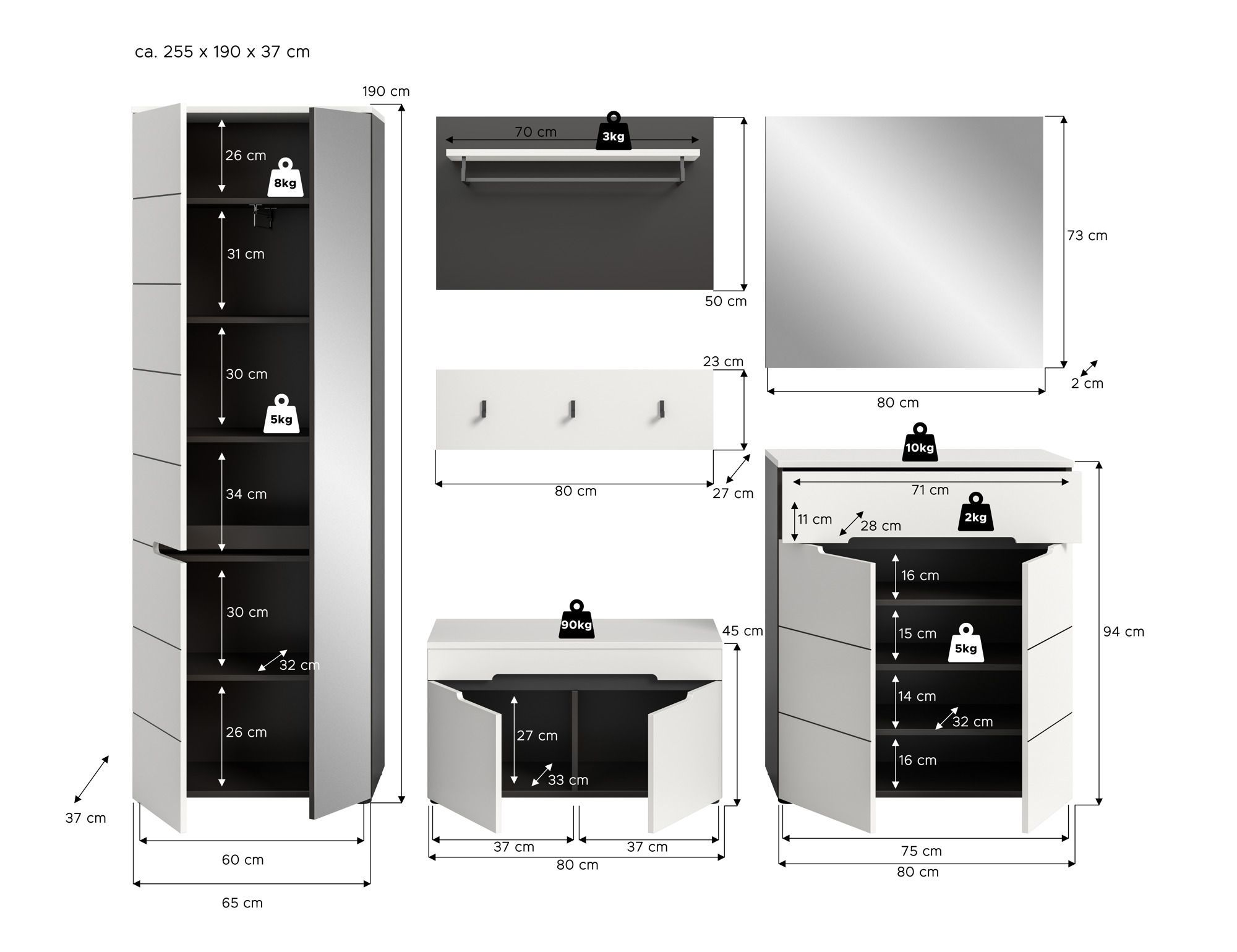 Garderobenkombination in weiß Nachbildung