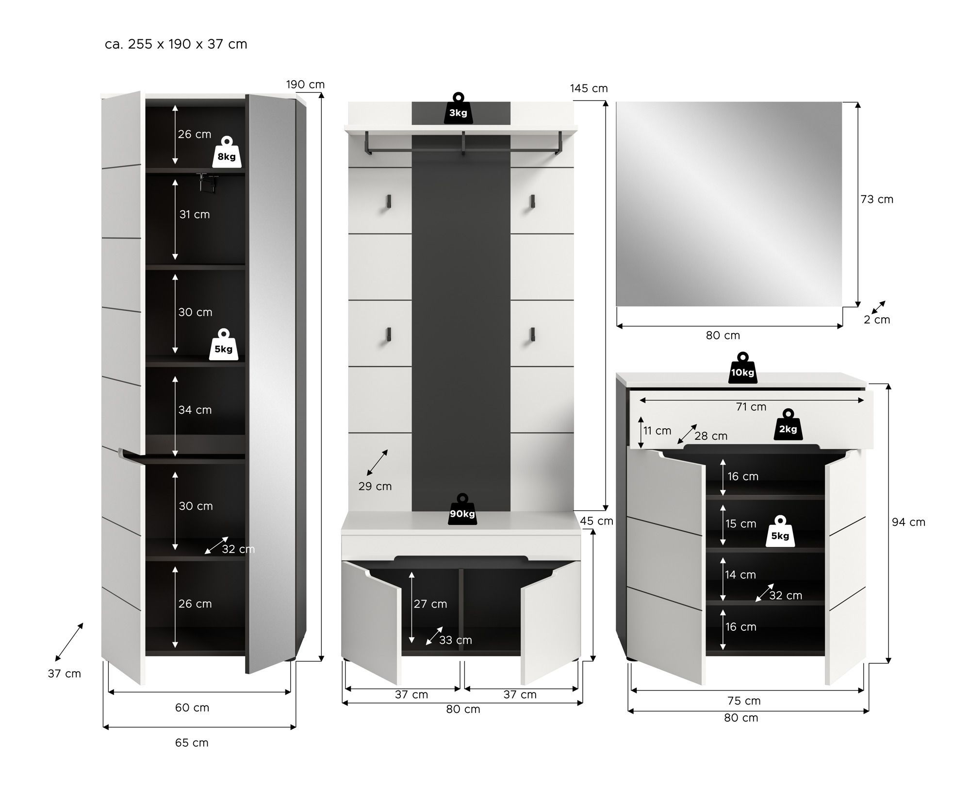 Garderobenkombination in weiß Nachbildung