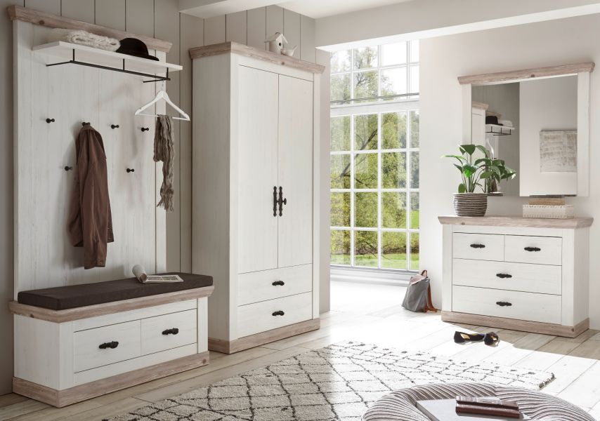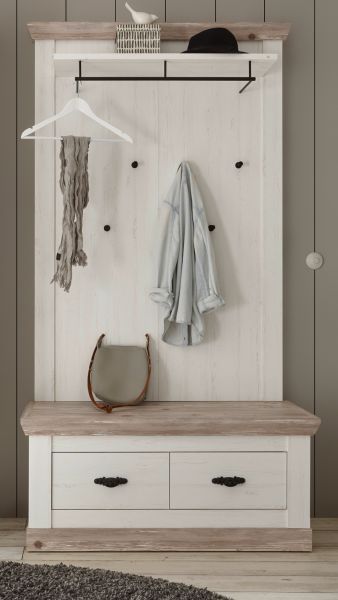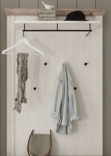 Garderobenpaneel Wandgarderobe weiß Pinie Landhaus Flur Garderobe Paneel Rovola